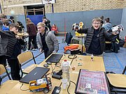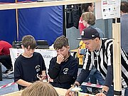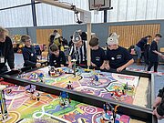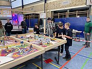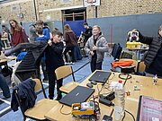 Angekommen am Berufliches Schulzentrum 7 geht es auch gleich zur Sache: die Trainingstische sind bereit und der erste Testdurchläufe an den Wettkampftischen stehen an.