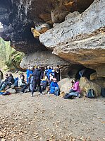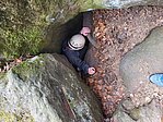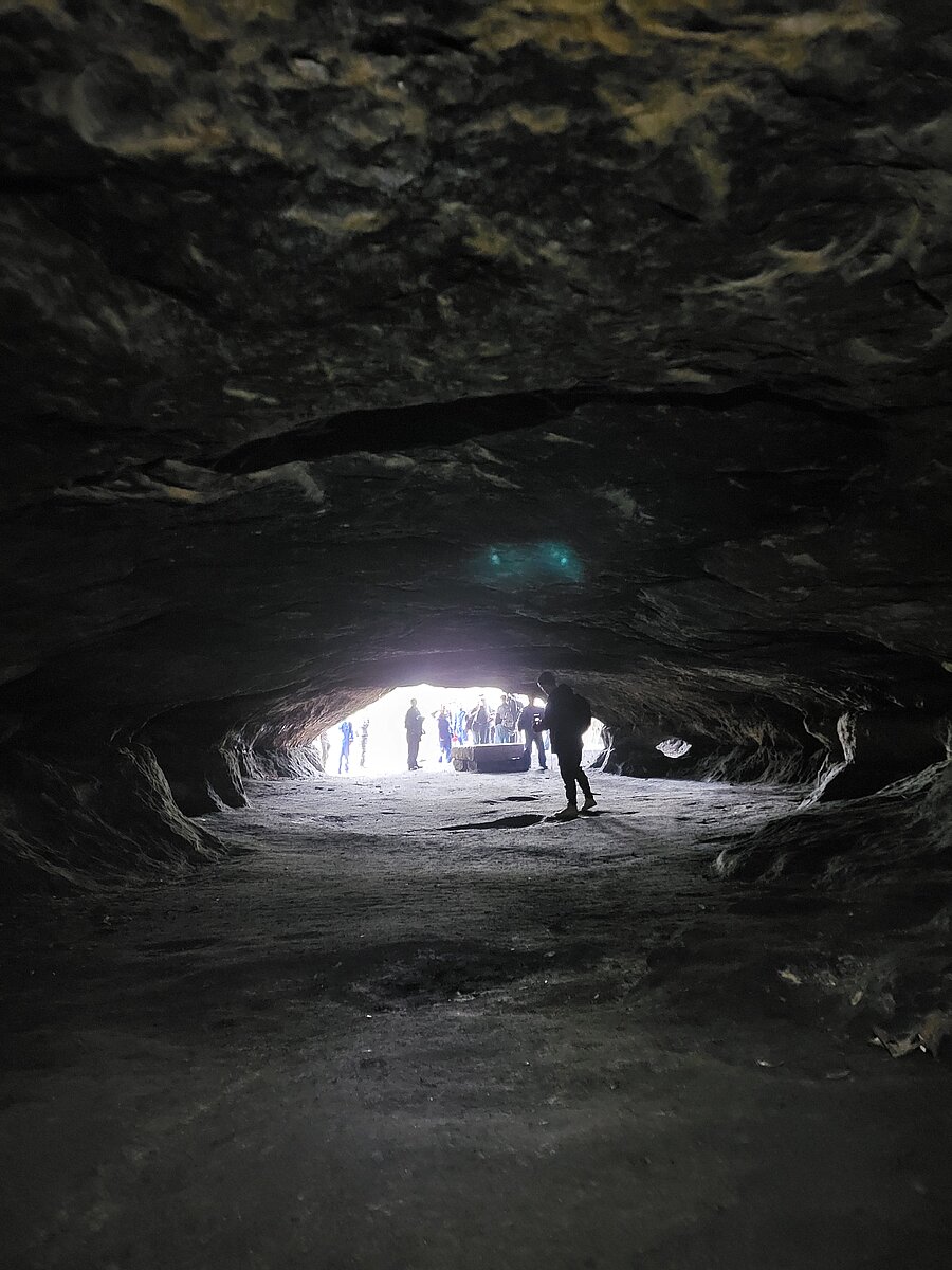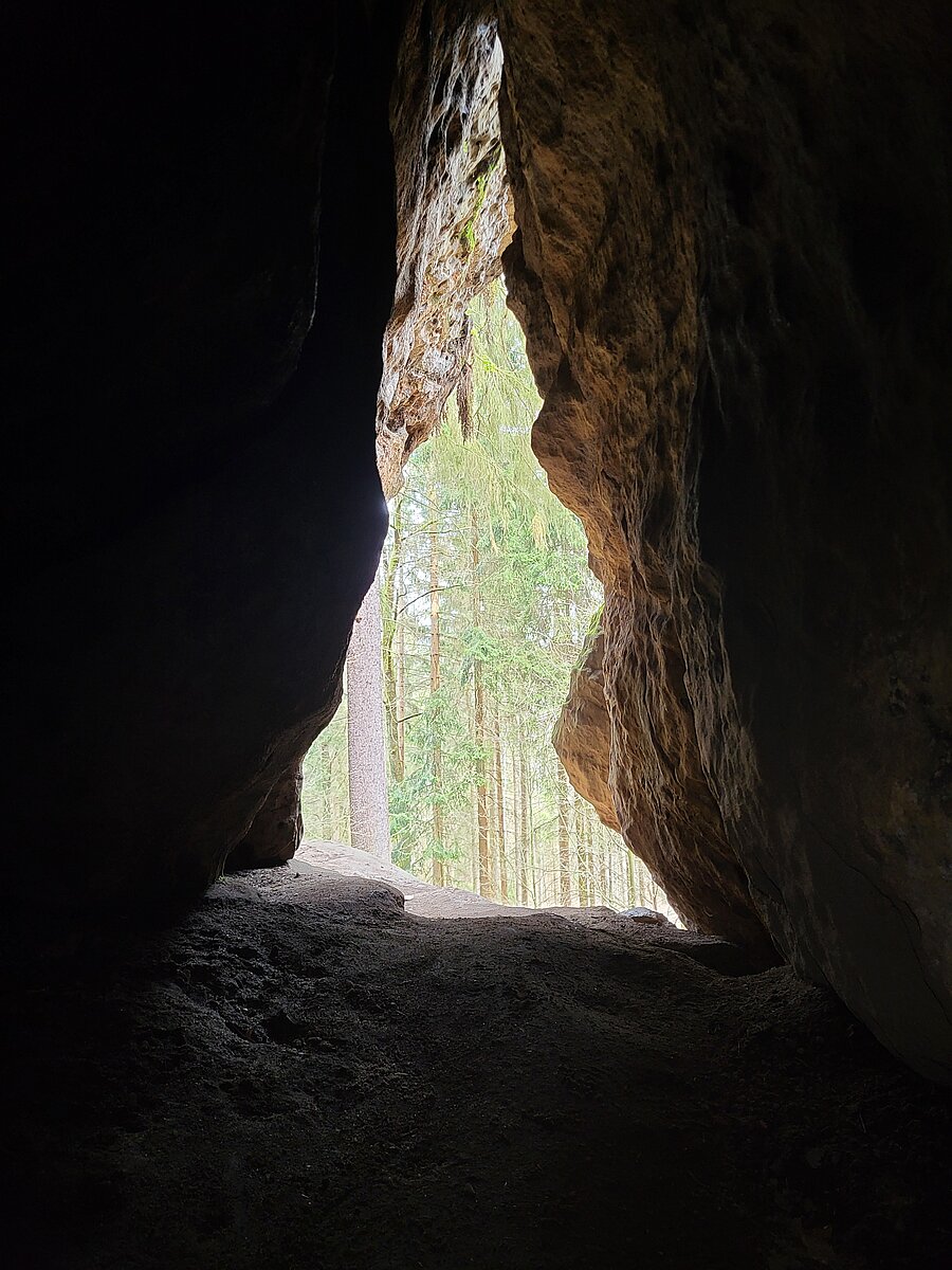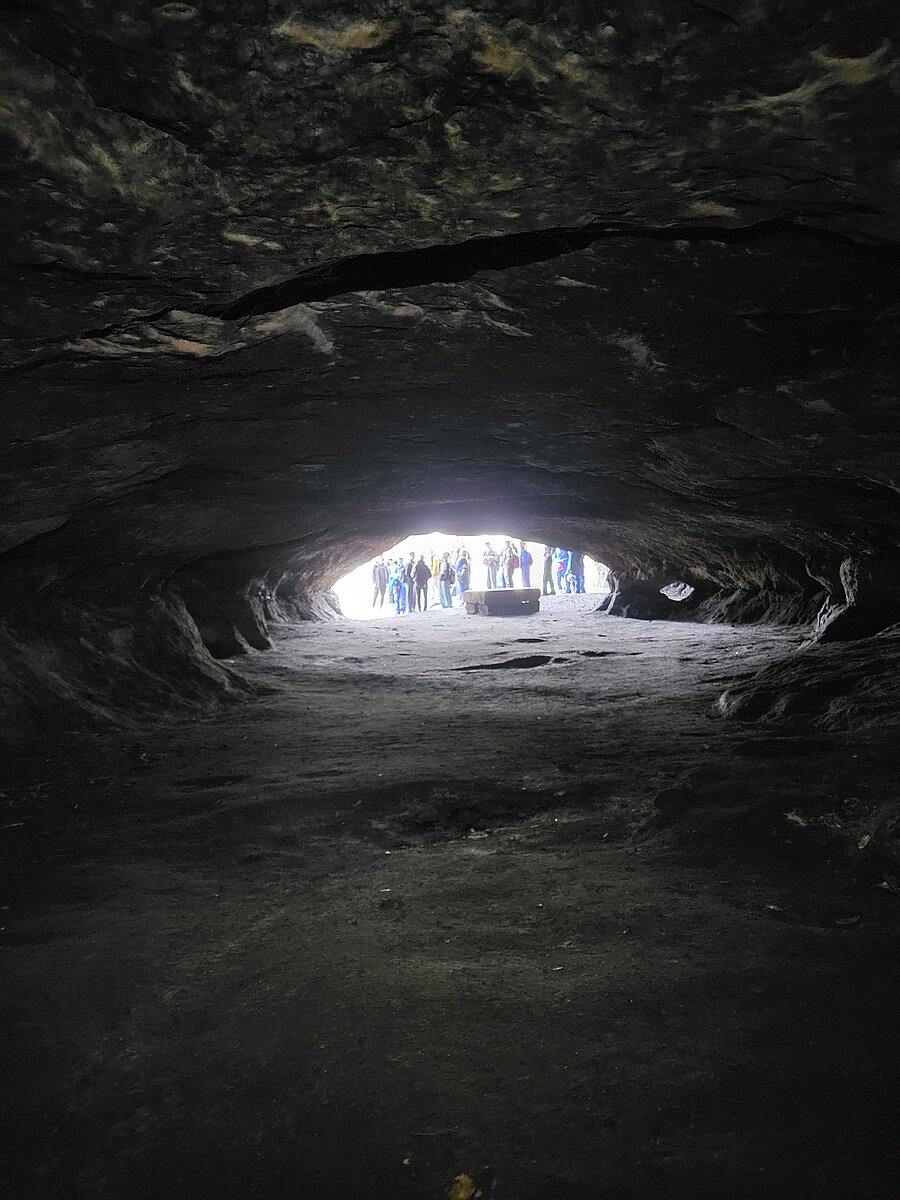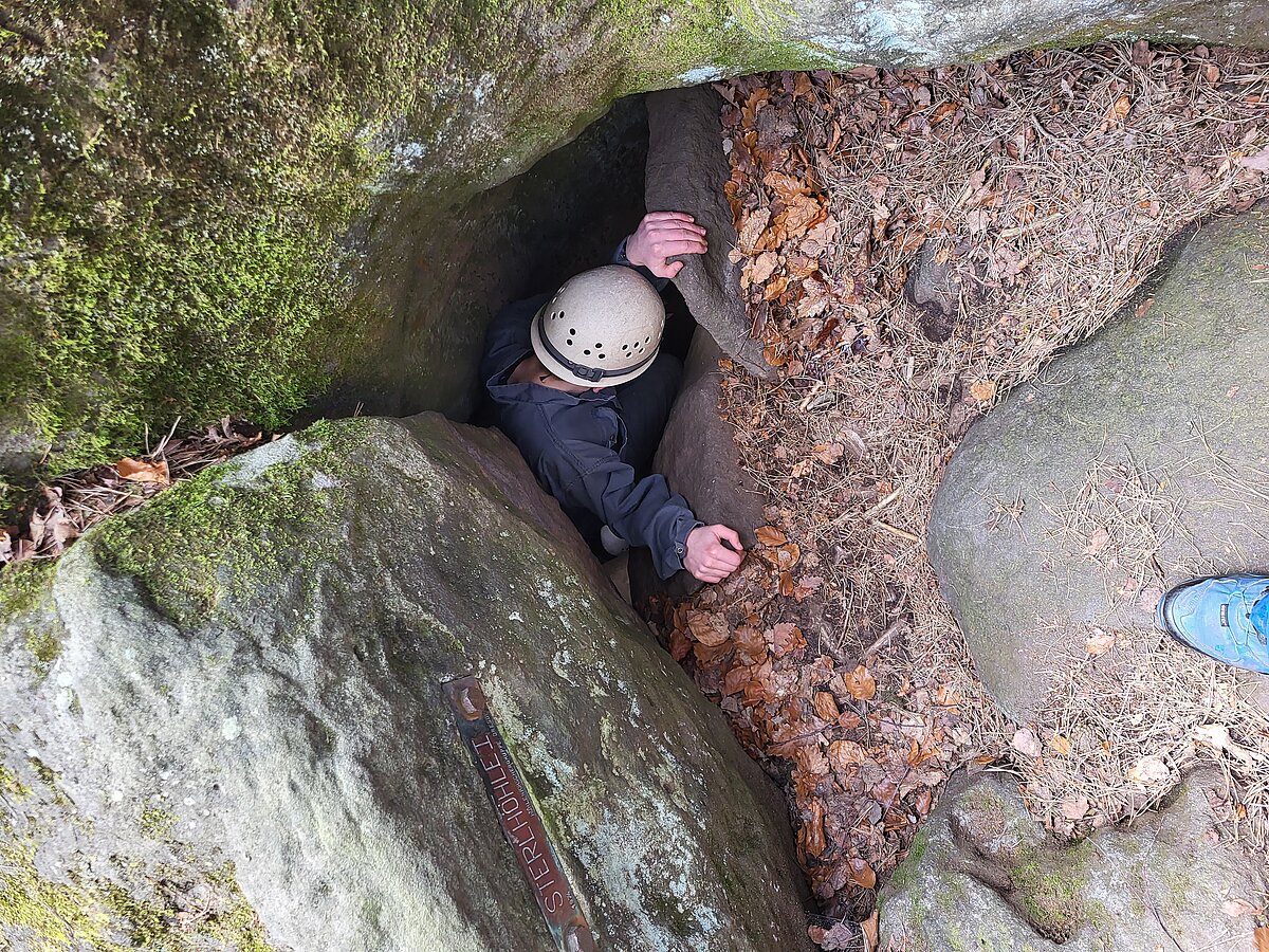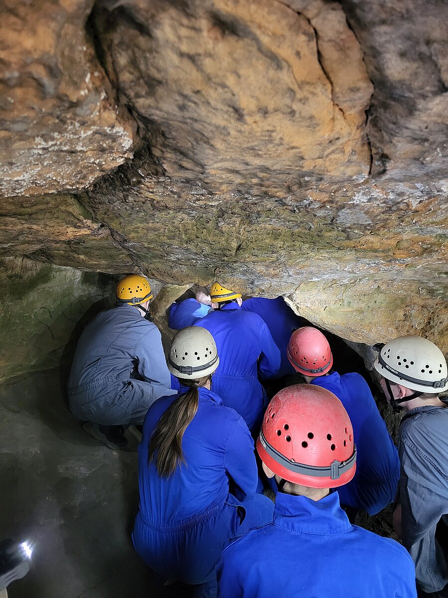 In Königstein wartete schon unsere Führerin auf uns. Gemeinsam stiegen wir durch kleine Gassen voller historischer Fachwerkhäuser zu den Höhlen hinauf, in die wir nun hinabsteigen sollten. Vor Ort legten wir Schutzkleidung und Helme an, dann ging es auch schon los: nacheinander, gebeugt, gebückt, rauf und runter ging es mit Geschick durch die engen, dunklen Gänge. Diese Tour hat vielen Schülerinnen und Schülern am besten gefallen.