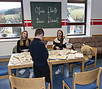 Wer alle Stationen besucht hatte, konnte sich zum Schluss im Schülercafé mit Kaffee, Tee und Kuchen belohnen und für den Nachhauseweg stärken. Inzwischen hatte auch der Regen nachgelassen und der Mond strahlte freundlich über eine gelungene Schulveranstaltung. Wir freuen uns schon auf nächstes Jahr.