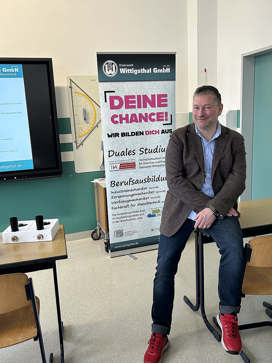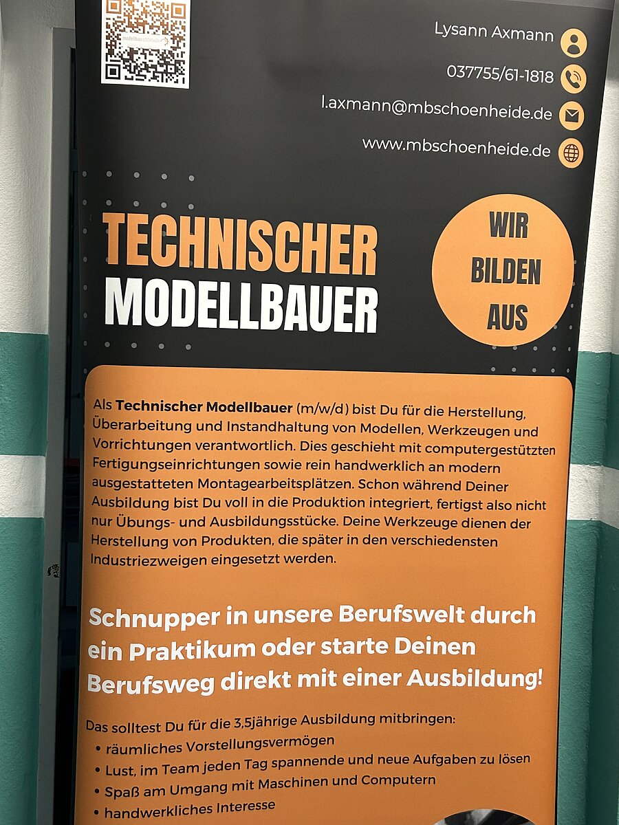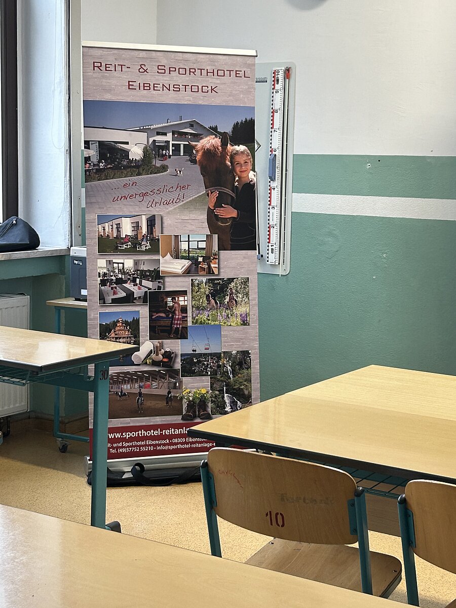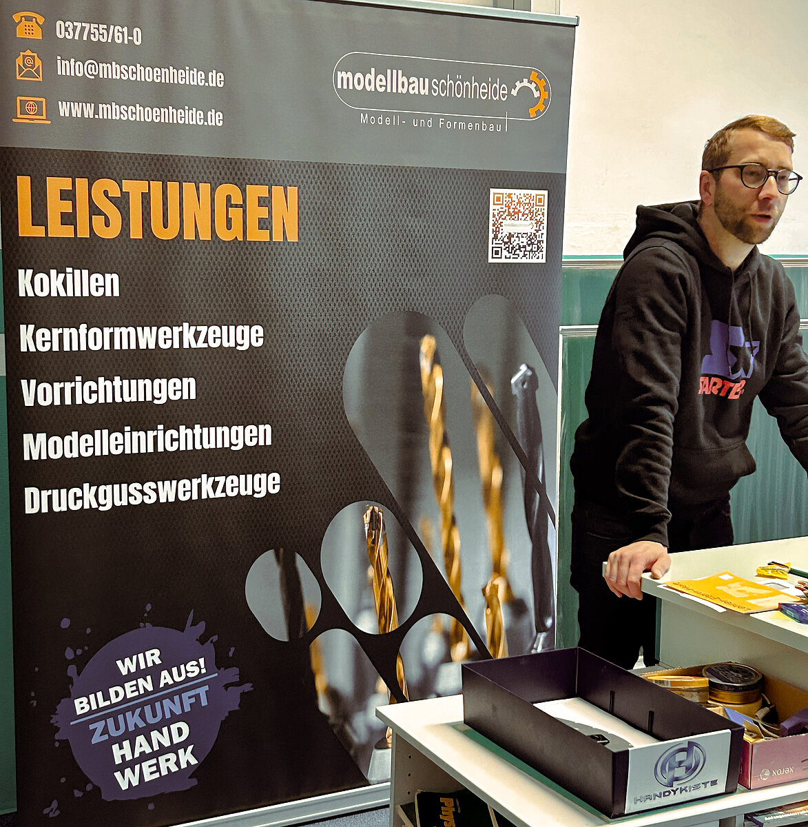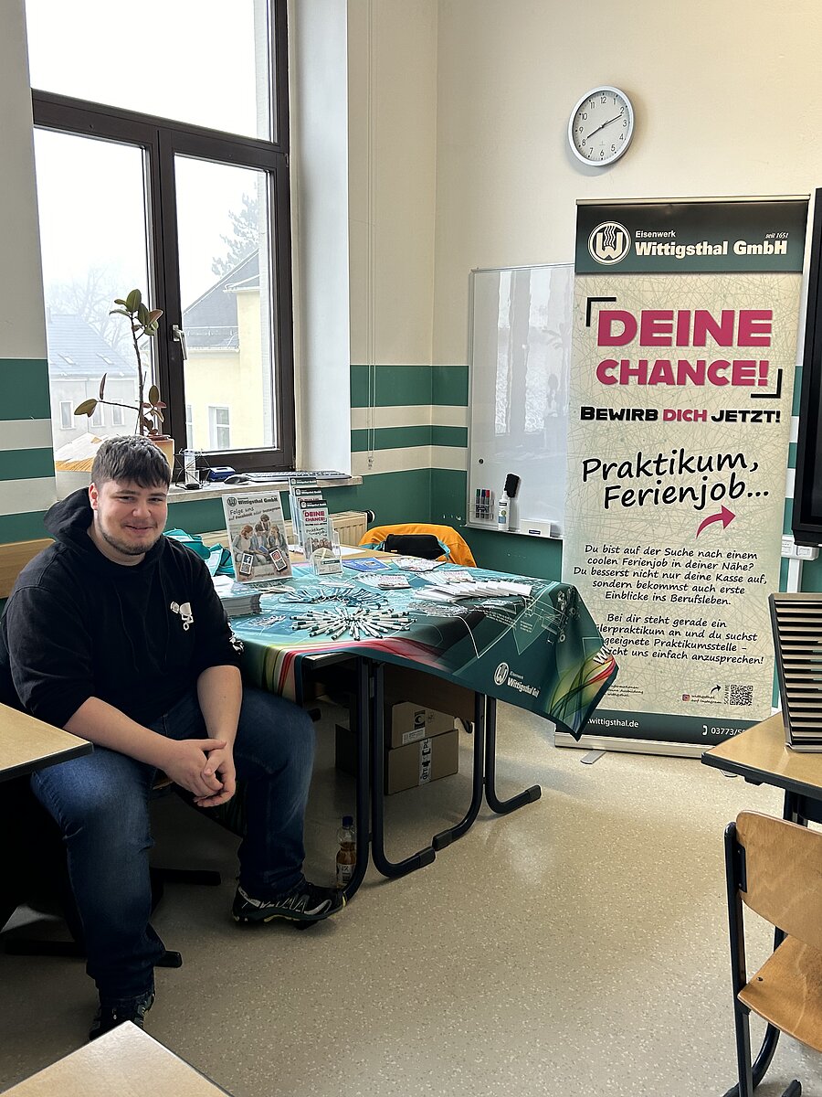 Neun regionale Firmen (Firma Funke Stickerei GmbH & Reit- und Sporthotel Eibenstock, Diakoniestation der Kirchgemeinden Eibenstock und Umgebung e.V., Firma PTSE GmbH, Firma Elektrowerkzeuge GmbH Eibenstock, Dietel Haustechnik GmbH & Co KG, Eisenwerk Wittigsthal GmbH, Modellbau Schönheide GmbH, Helios Klinikum Aue) sowie die Fachschule für Sozialwesen sind der Einladung unserer Schule gefolgt und haben sich am 22.04.2024 in mehreren Durchgängen à 45 Minuten den interessierten Schülerinnen und Schülern der beiden Klassenstufen präsentiert.