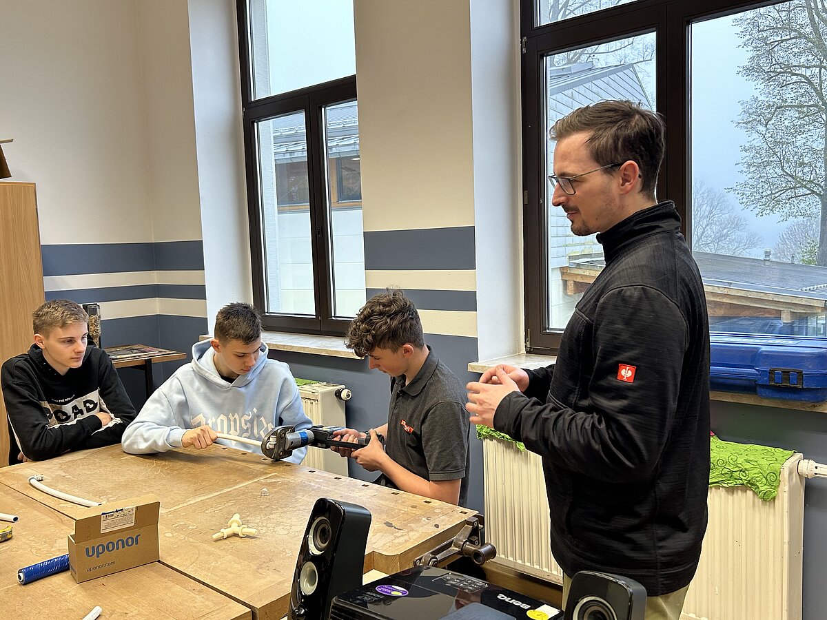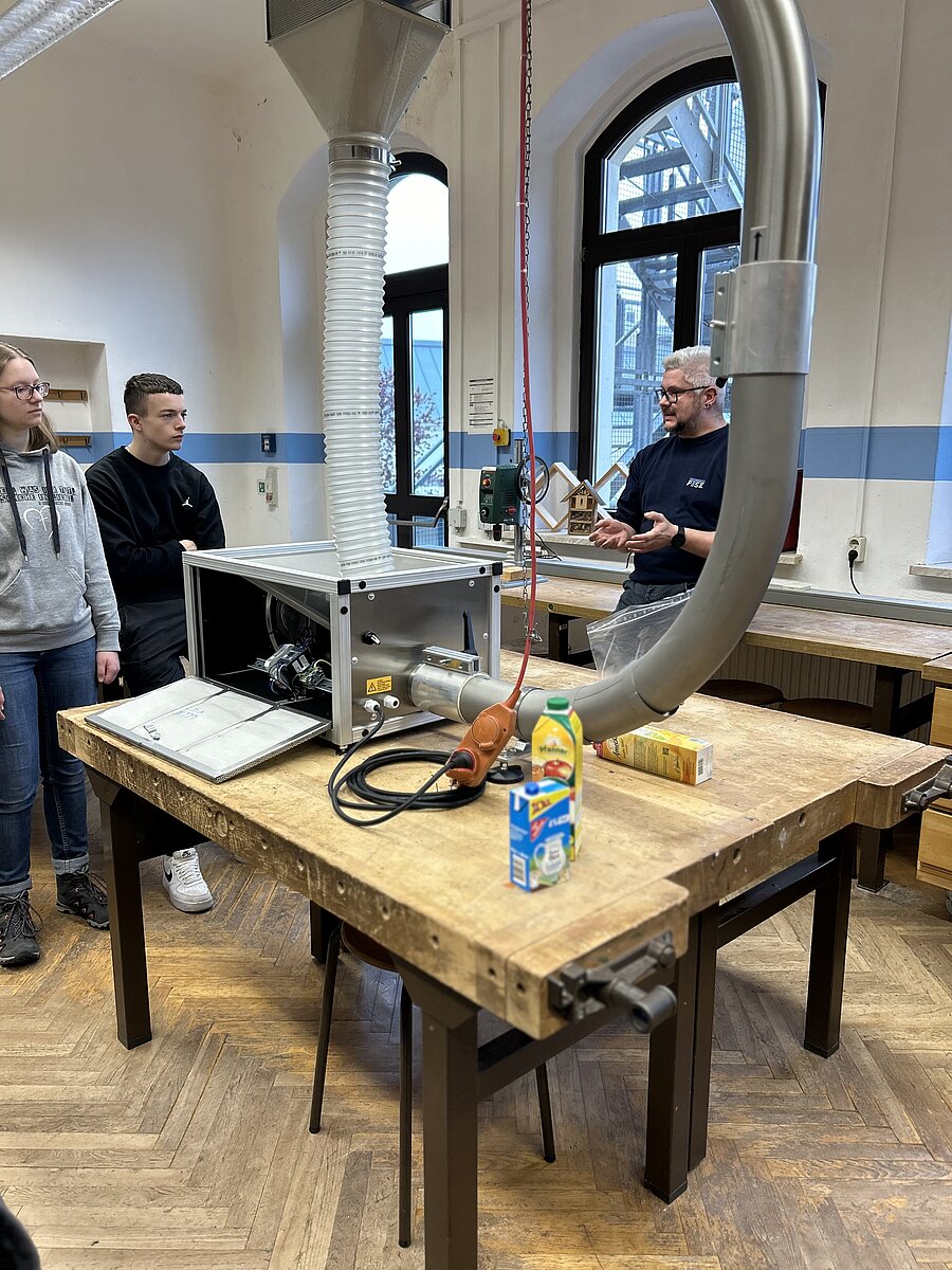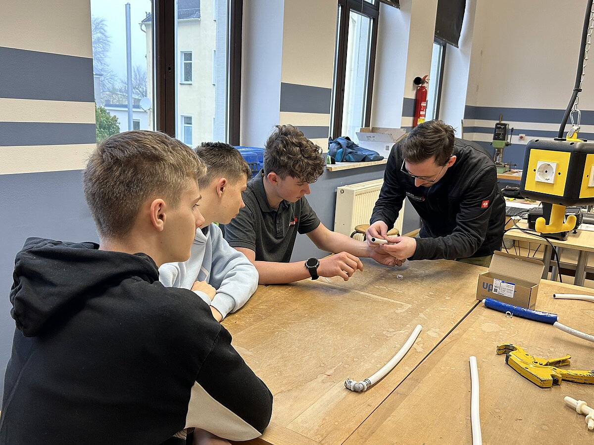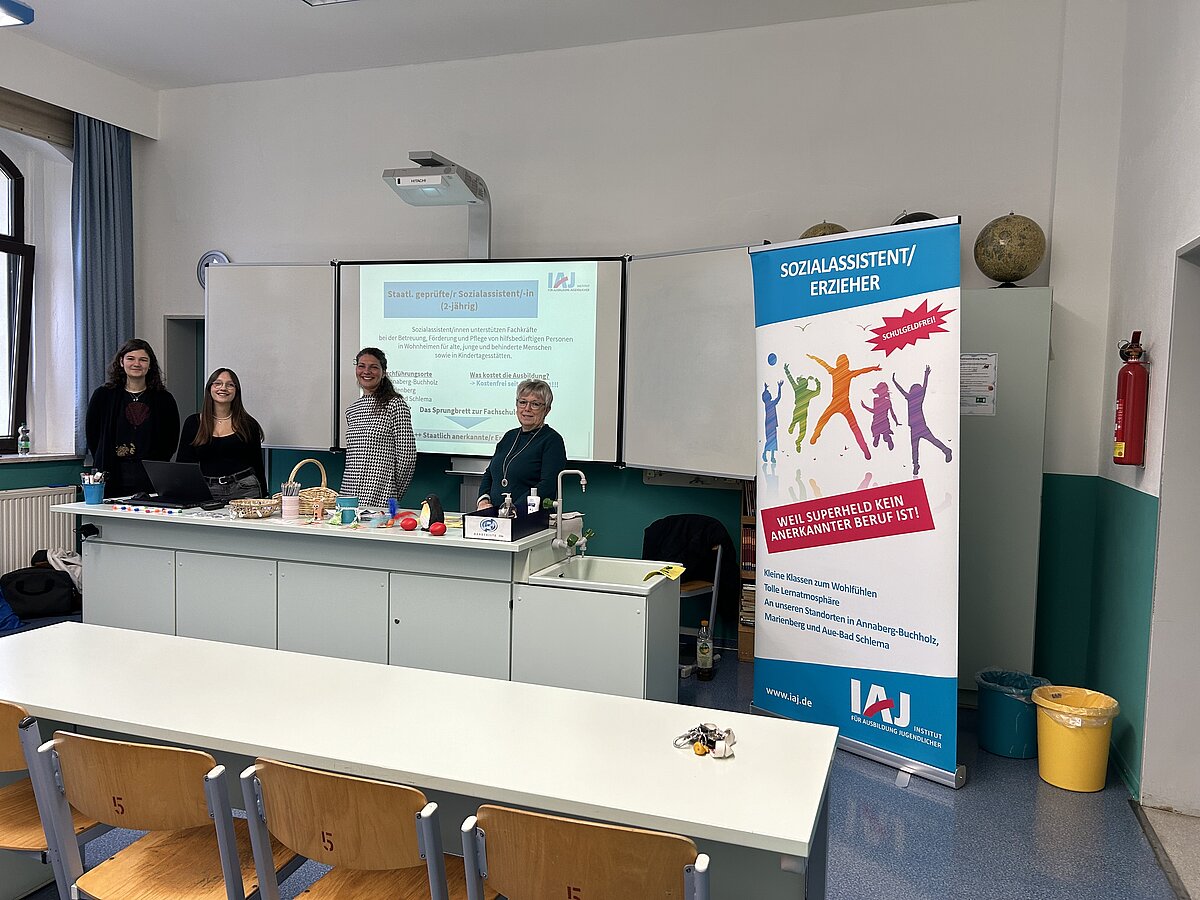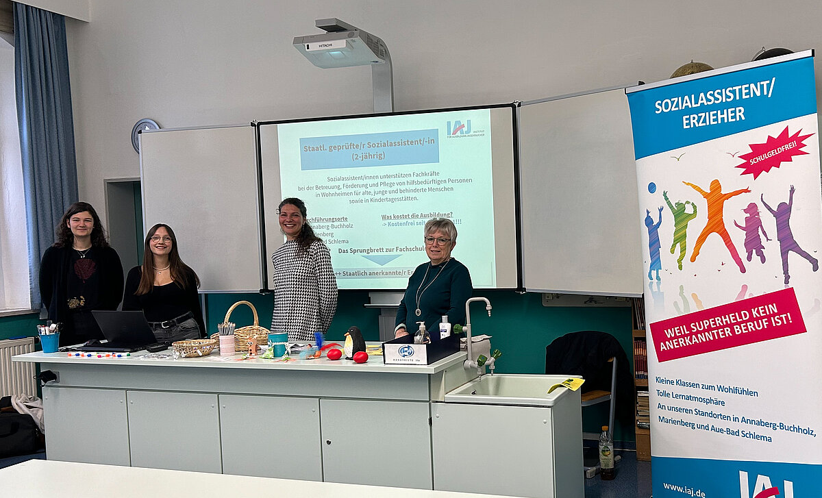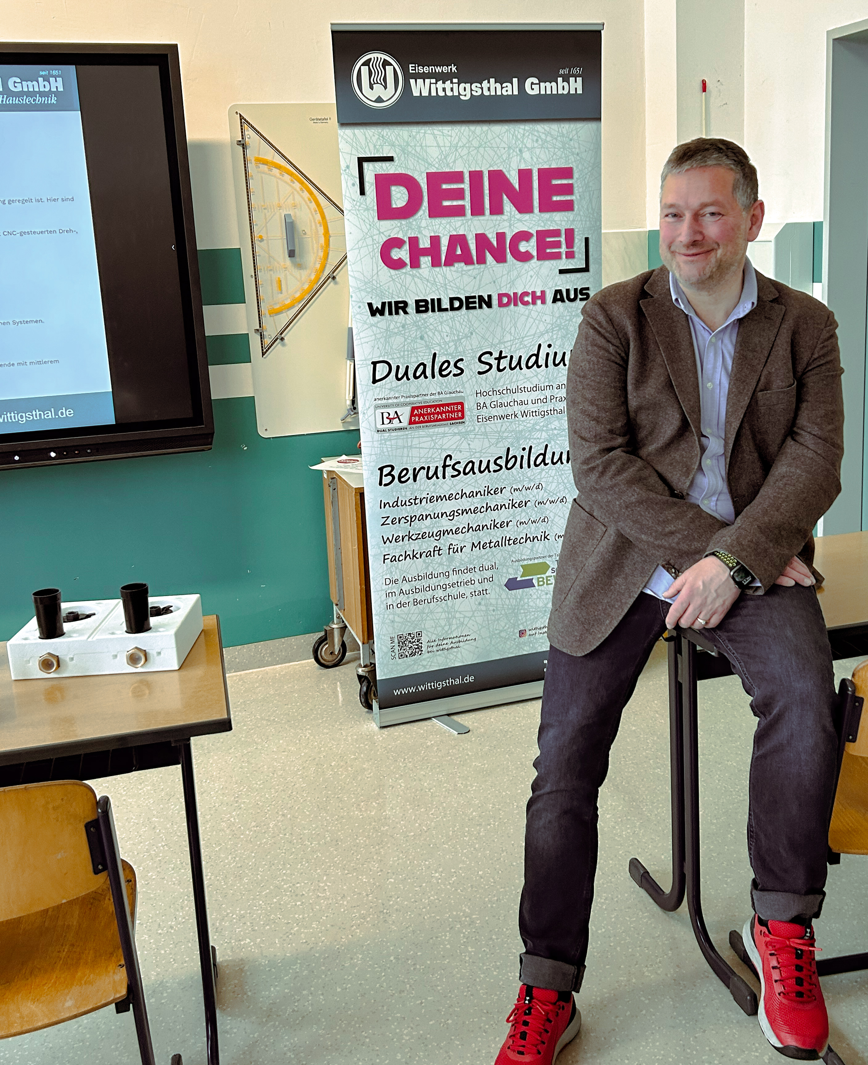 Neun regionale Firmen (Firma Funke Stickerei GmbH & Reit- und Sporthotel Eibenstock, Diakoniestation der Kirchgemeinden Eibenstock und Umgebung e.V., Firma PTSE GmbH, Firma Elektrowerkzeuge GmbH Eibenstock, Dietel Haustechnik GmbH & Co KG, Eisenwerk Wittigsthal GmbH, Modellbau Schönheide GmbH, Helios Klinikum Aue) sowie die Fachschule für Sozialwesen sind der Einladung unserer Schule gefolgt und haben sich am 22.04.2024 in mehreren Durchgängen à 45 Minuten den interessierten Schülerinnen und Schülern der beiden Klassenstufen präsentiert.