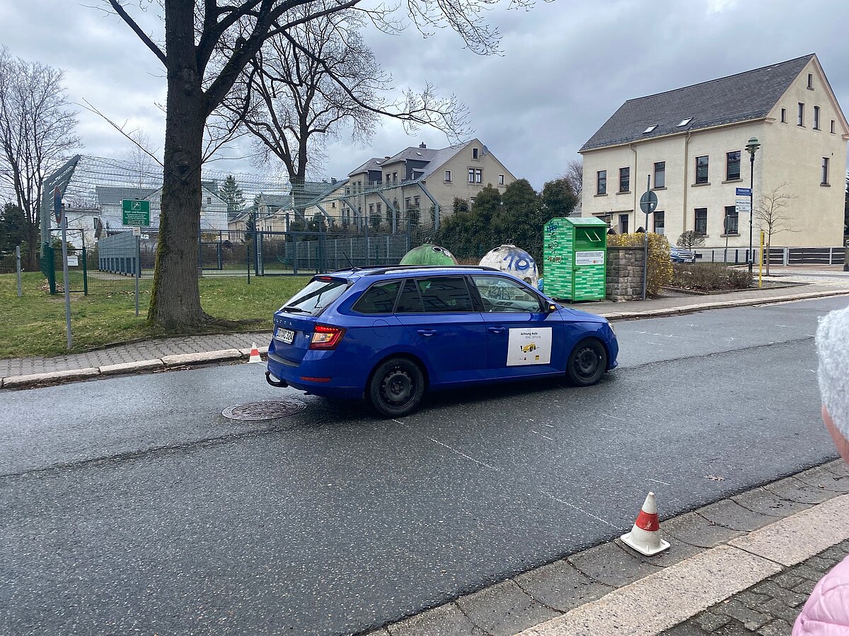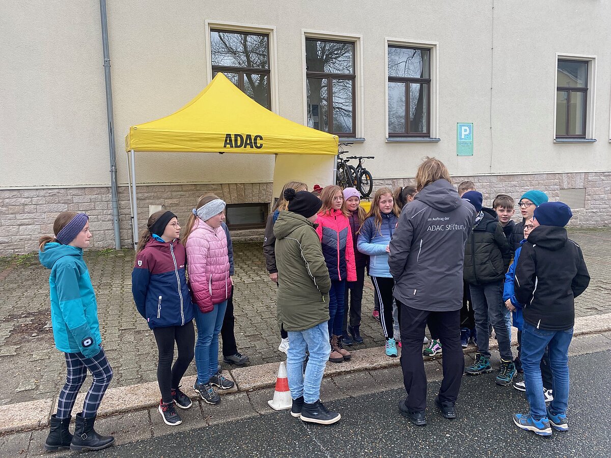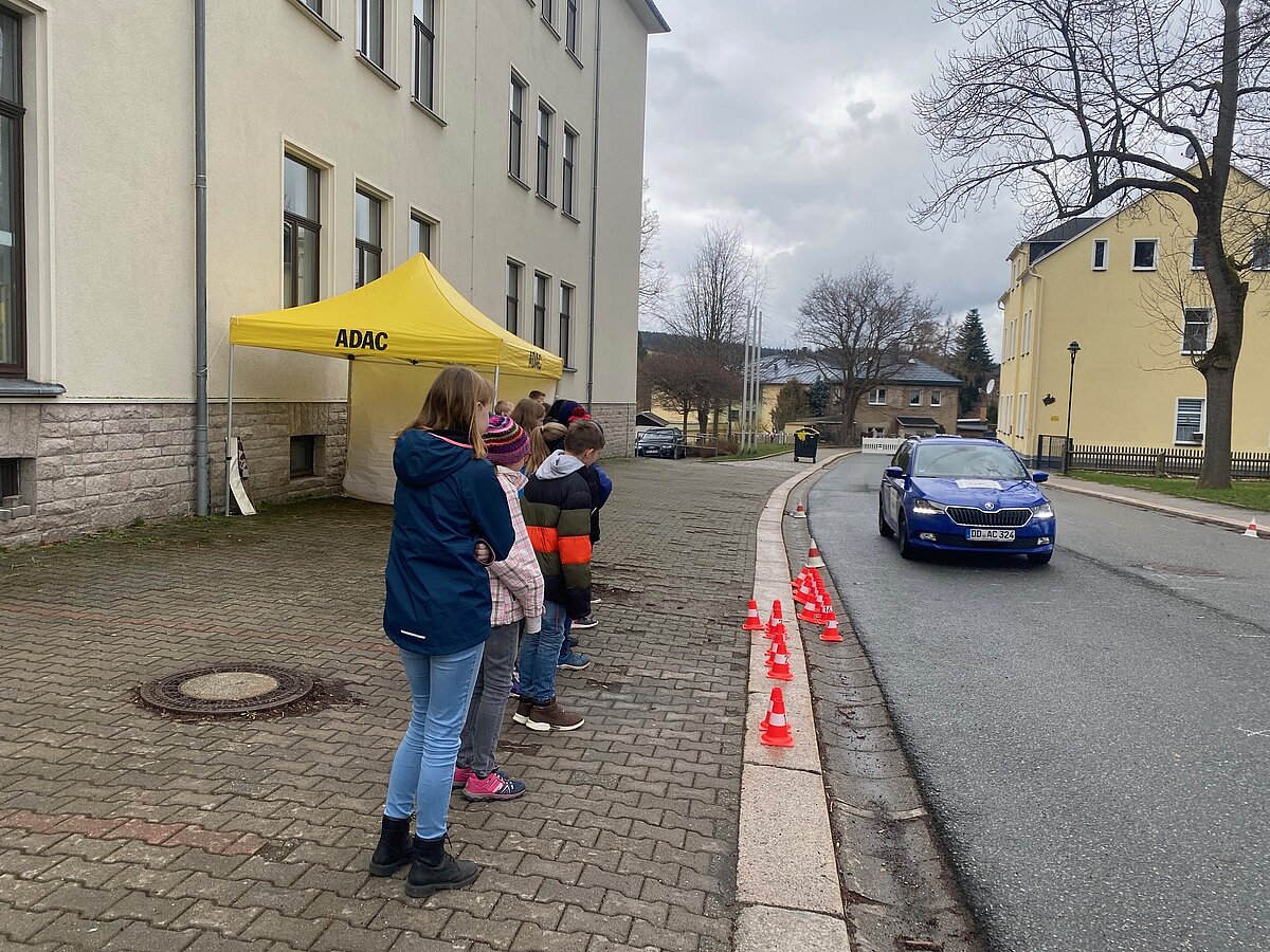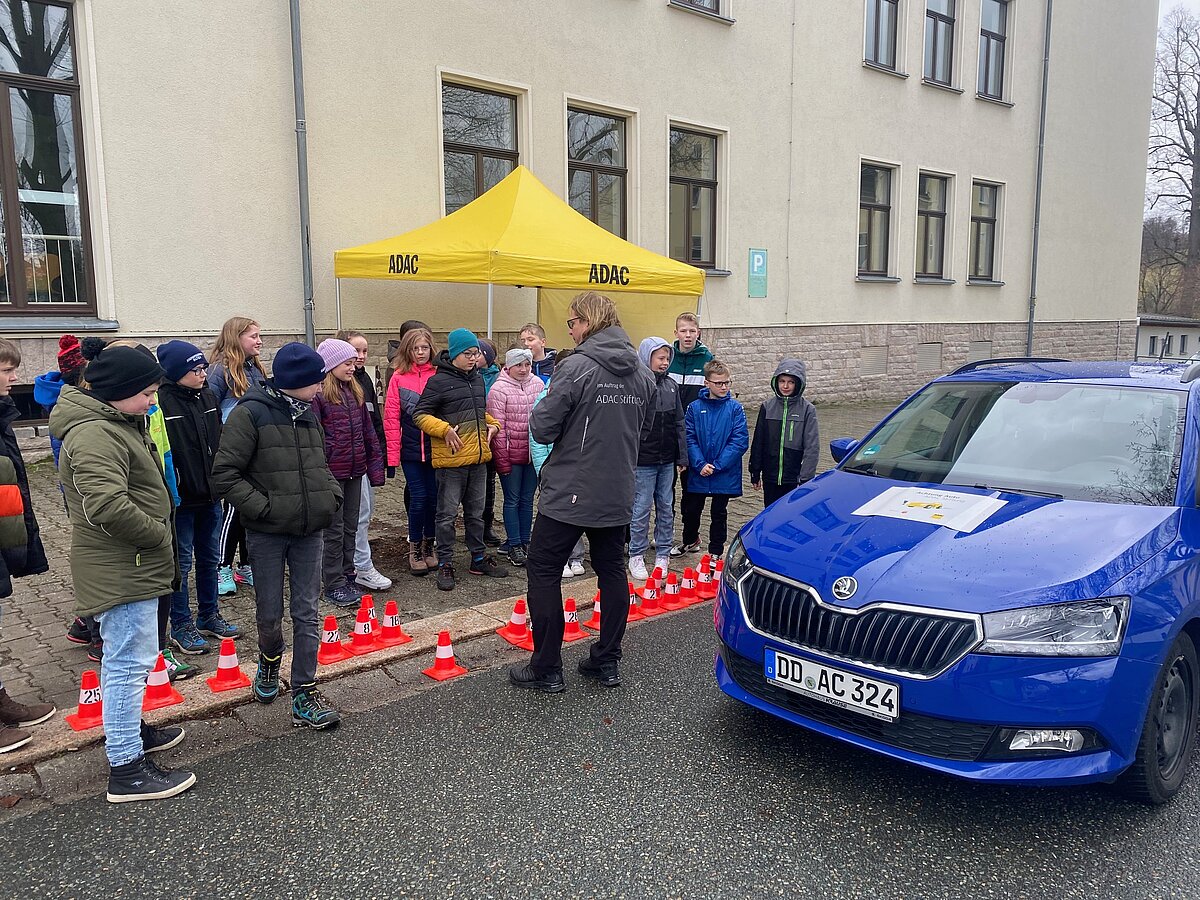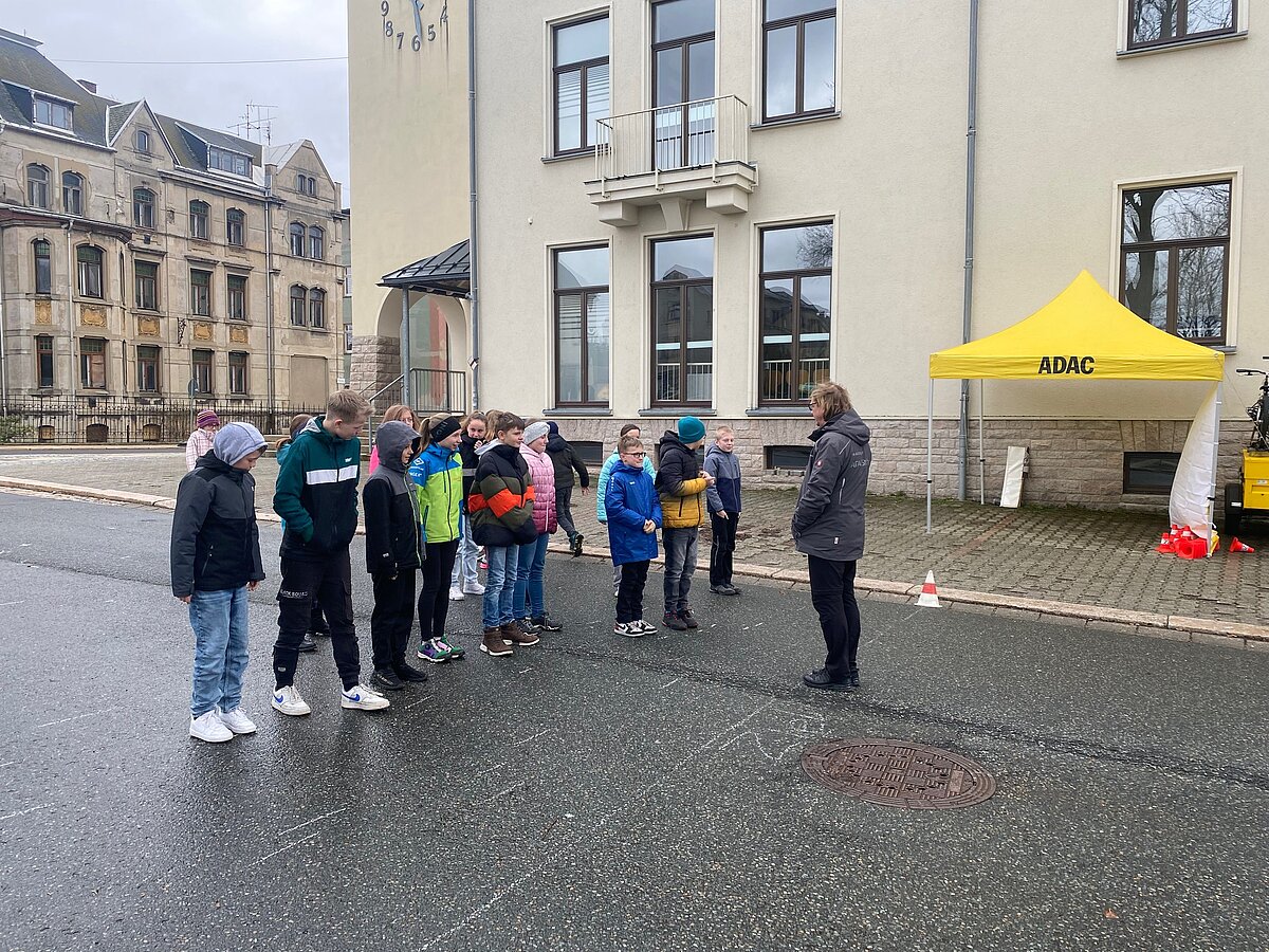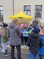 Eibenstock - Einfach mal schnell anhalten – das ist gar nicht so leicht! Die Schüler der Klassen 5 erlebten am Montag den 25.03. in praktischen Übungen, was die Formel Reaktionsweg + Bremsweg = Anhalteweg in der Praxis bedeutet. Herr Weiß von der ADAC Stiftung besuchte uns an der „Glück auf!“ - Oberschule Eibenstock und führte trotz des grauslichen Wetters mit viel Spaß und Spannung an dieses wichtige Thema heran.
