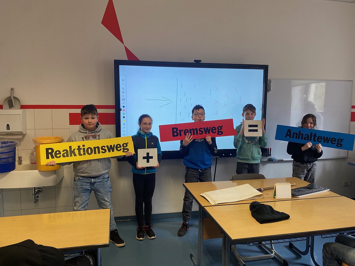 Durch die Beobachtung und Vermessung des Anhaltewegs eines Fahrzeugs bei 30 km/h und 50 km/h und nasser Fahrbahn, konnten sie das zuvor selbst Erlebte auf das Auto übertragen und besser verinnerlichen.