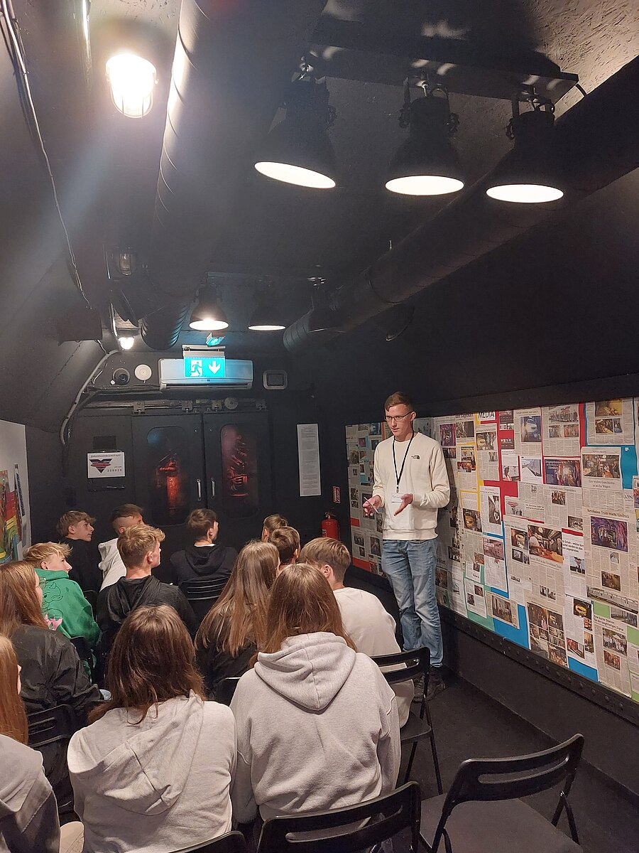 Zunächst bekamen die Schülerinnen und Schüler im Unterricht durch Herrn Voigt und Herrn Fritsch die Möglichkeit, entstandene Fragen zum Revolution Train anzusprechen.