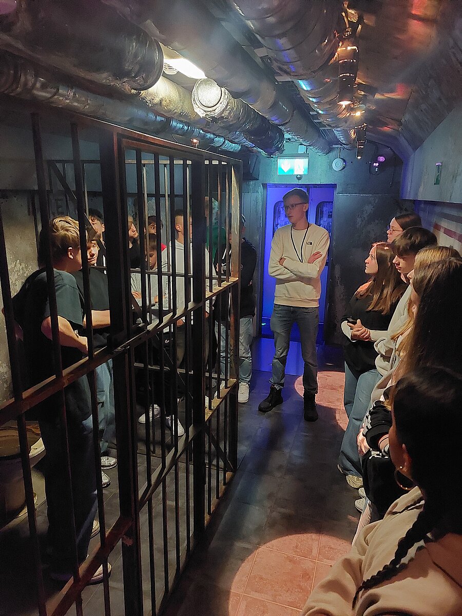 Es waren im Zug auch einzelne realistische Situationen dargestellt – eine Gefängniszelle, der Verhörraum, die letzte „Unterkunft“, … .