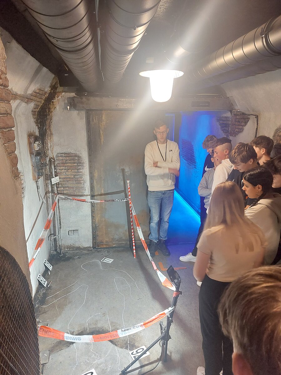 Am Freitag, dem 27.10.2023 war es dann soweit: In Kleingruppen von maximal 17 Schülern wurden die einzelnen Stationen eines jungen Mannes beobachtet, der vor über 20 Jahren den Drogen verfallen war und letztlich durch sie umgekommen ist.