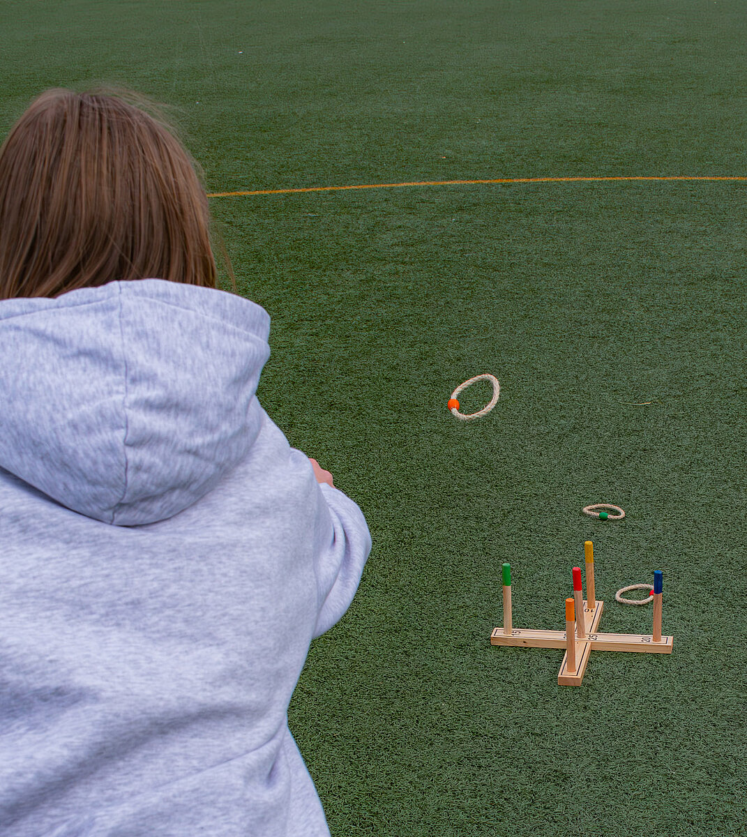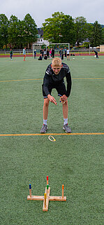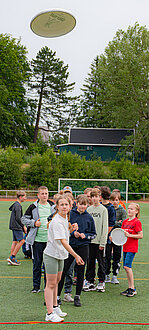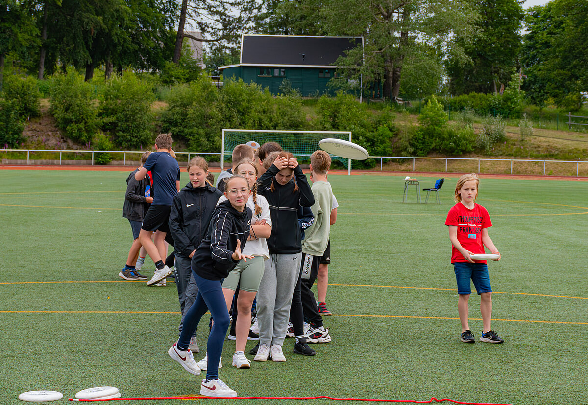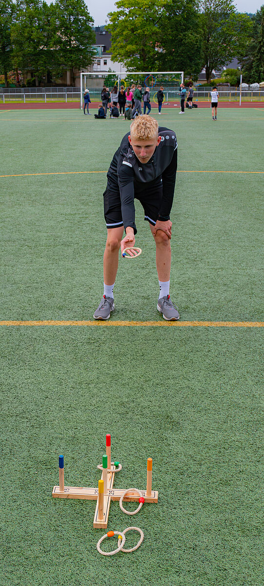 Die Schülerinnen und Schüler der Klassen 5 bis 8 kämpften nach der Eröffnung der Veranstaltung durch unseren Sportlehrer Herrn Gramsch ehrgeizig unter anderem in nicht so ernsten Disziplinen wie Ringzielwurf, Sackhüpfen, Büchsen werfen, Würfeln, Federballweitwurf, Frisbeezielwerfen oder Tennisballjonglieren um wertvolle Punkte für den Gesamtsieg. Nach spannenden Duellen und intensiver Auswertung der erbrachten Leistungen standen letztendlich die Einzelsieger in den verschiedenen „Sportarten“, fest.