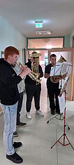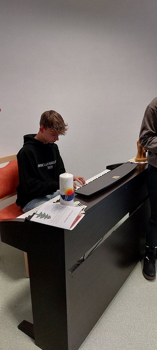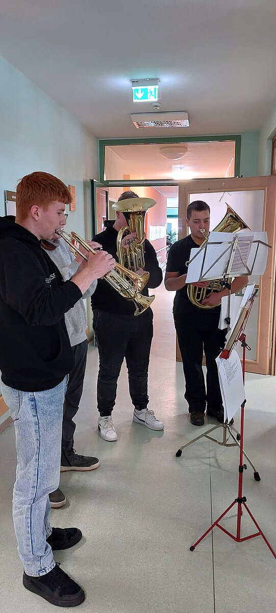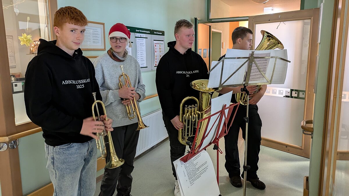 Eibenstock - Nicht von „Drauß vom Walde…“ sondern aus unserer Schule kamen die Schüler des Musikkurses der Klasse 10, die auch in diesem Jahr wieder die Bewohner des Pflegeheimes „Herbstsonne“ mit Liedern, Gedichten und Instrumentalstücken erfreuten. Dabei sorgte auch unsere kleine Bläsergruppe für eine festliche Stimmung. Viele Lieder animierten zum Mitsingen und besonders beim abschließenden Steigerlied waren alle, ob klatschend oder singend dabei. Alles in allem ein gelungener Vormittag.