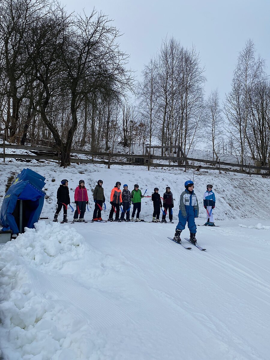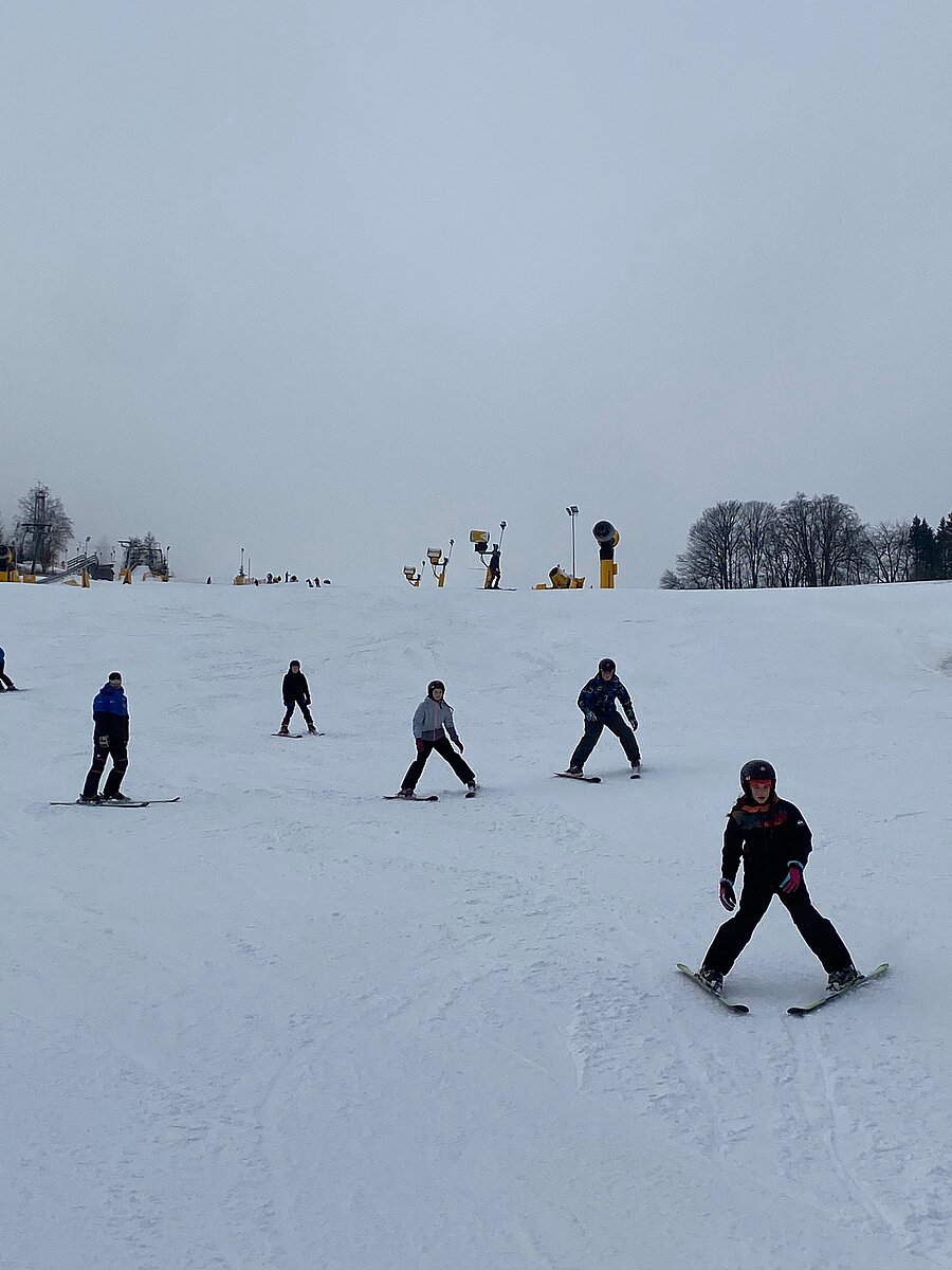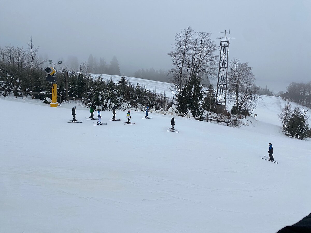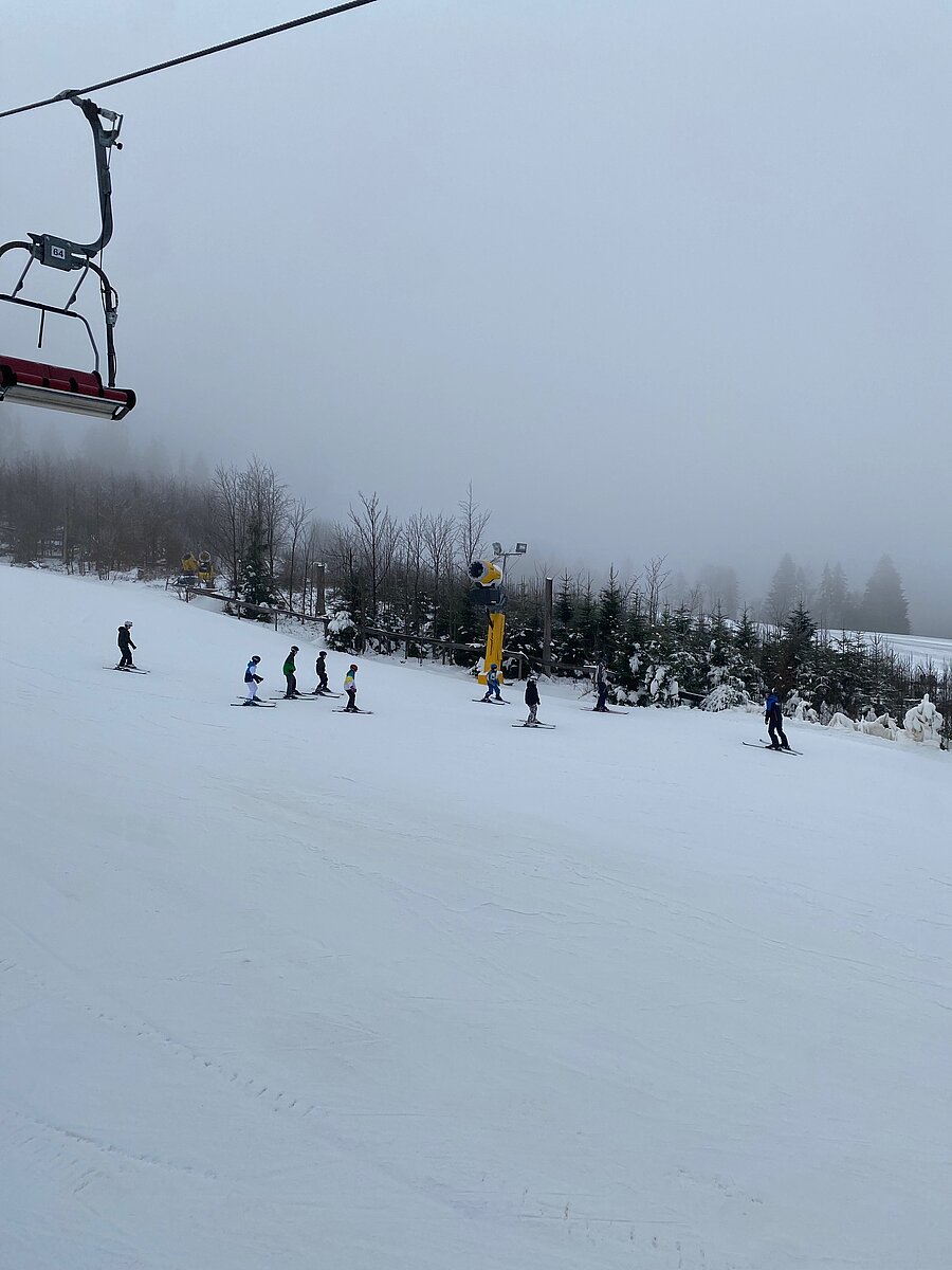 Bei etwas „luftfeuchten“ Bedingungen starteten an die 50 Schülerinnen und Schüler der Klassen 6a und 6b in ihr persönliches Skiabenteuer.