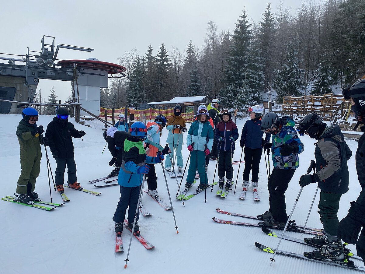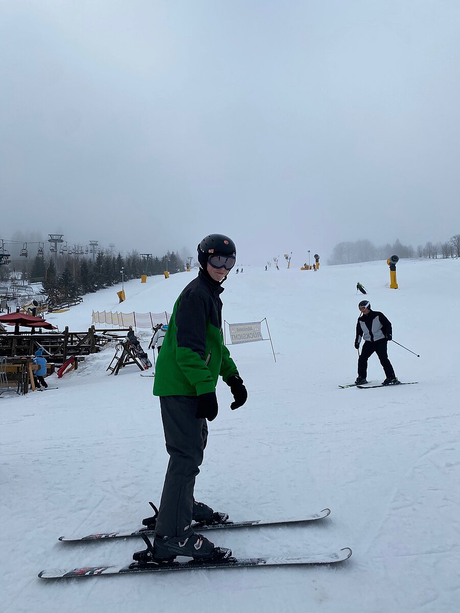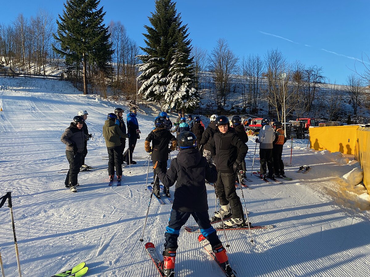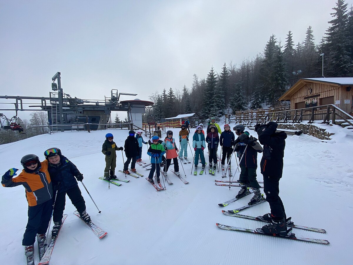 Bei etwas „luftfeuchten“ Bedingungen starteten an die 50 Schülerinnen und Schüler der Klassen 6a und 6b in ihr persönliches Skiabenteuer.