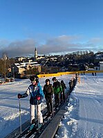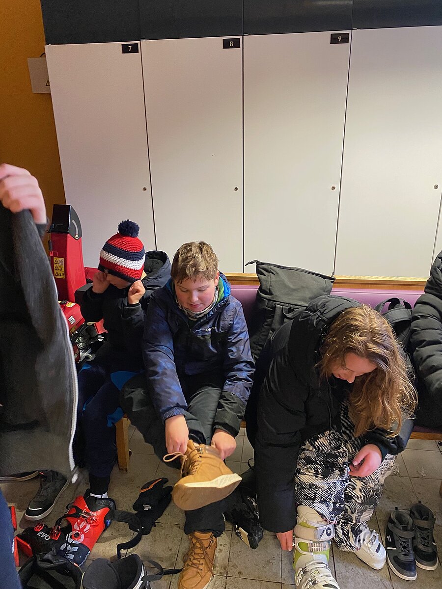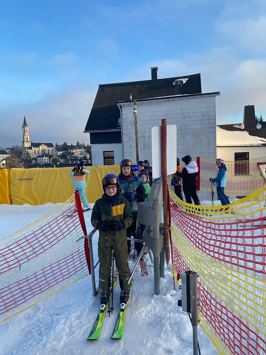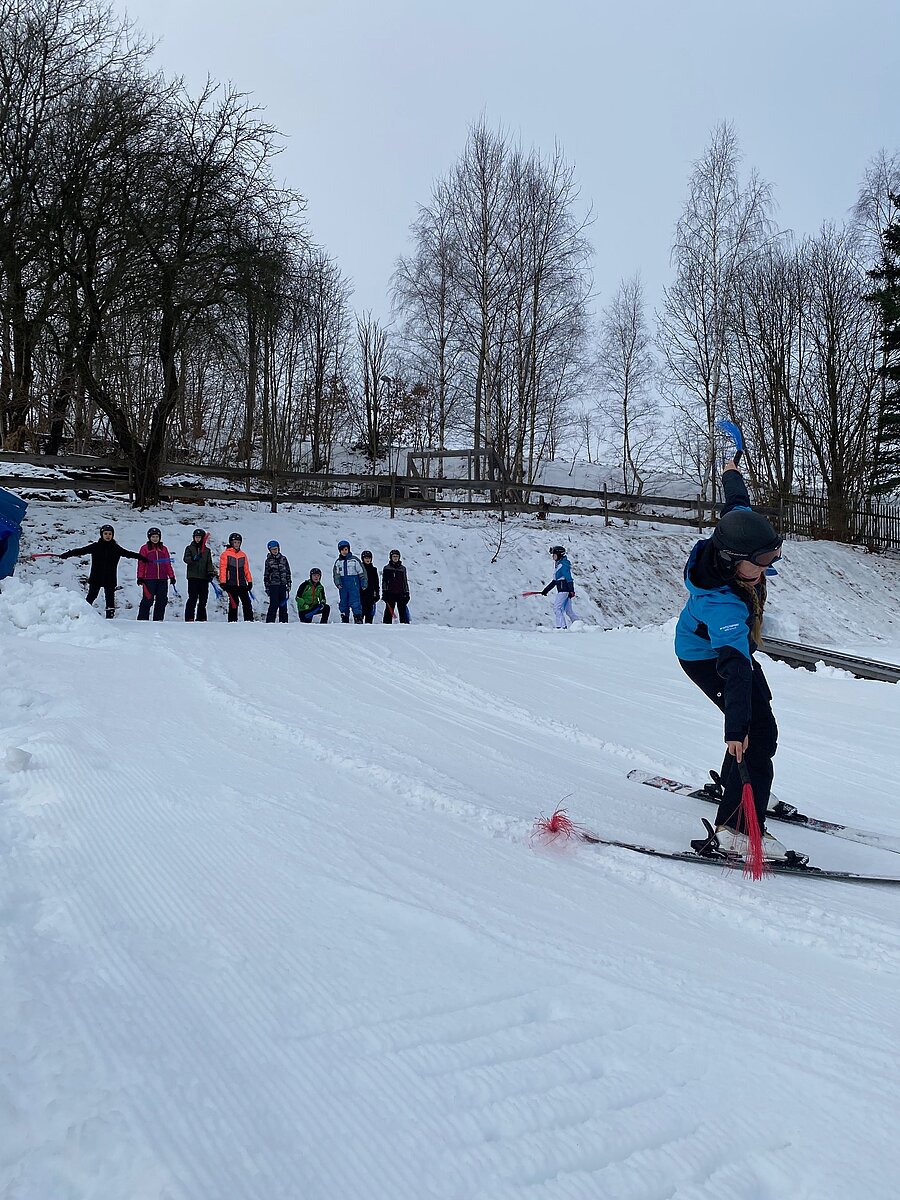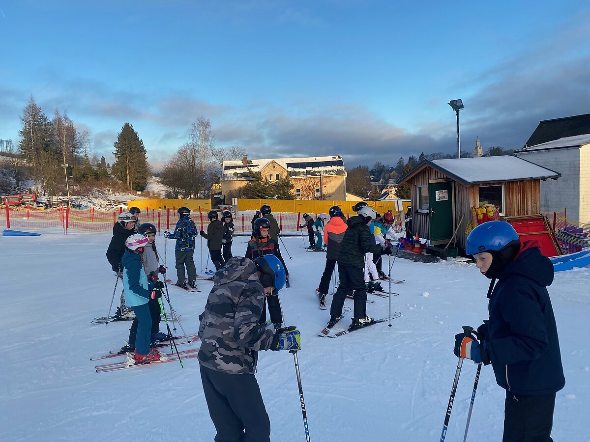 Bei etwas „luftfeuchten“ Bedingungen starteten an die 50 Schülerinnen und Schüler der Klassen 6a und 6b in ihr persönliches Skiabenteuer.