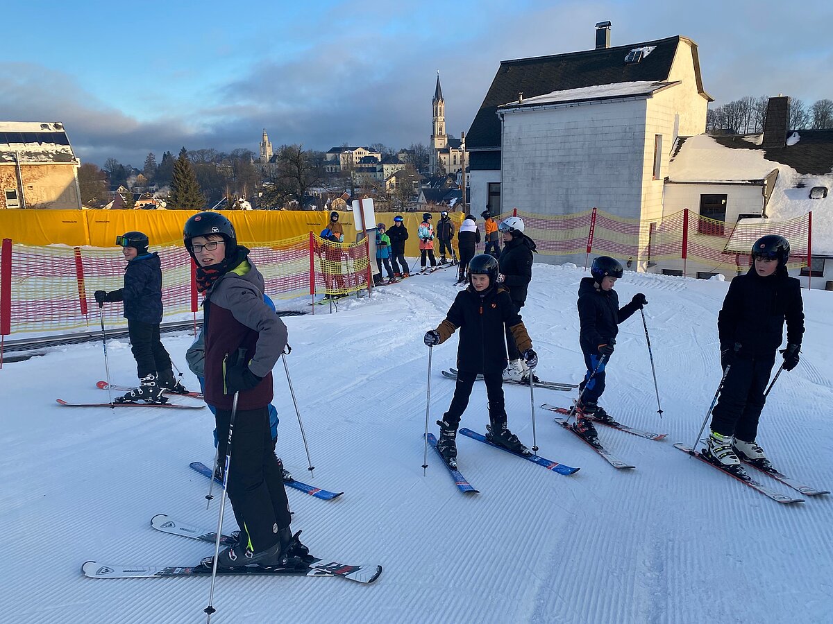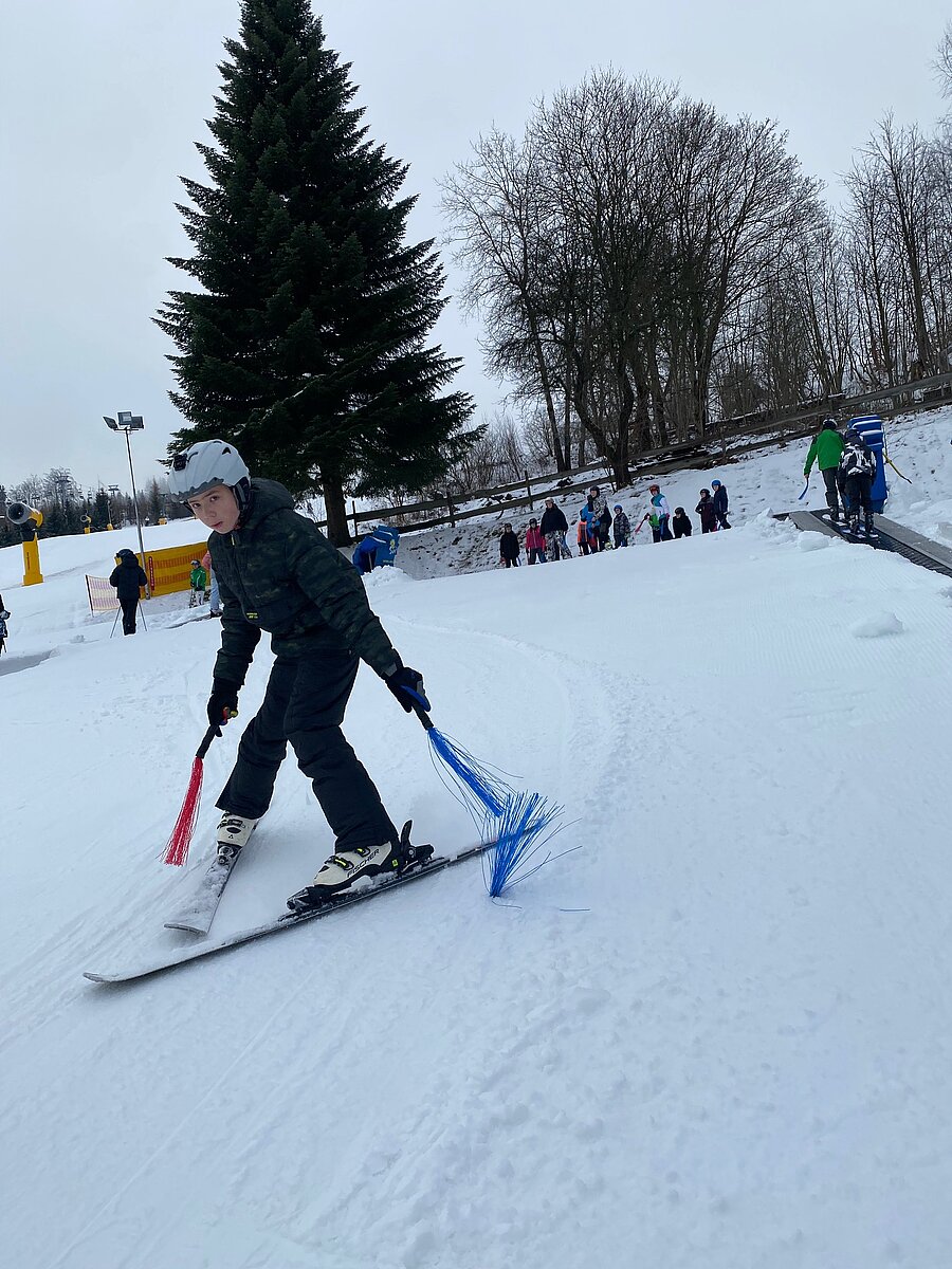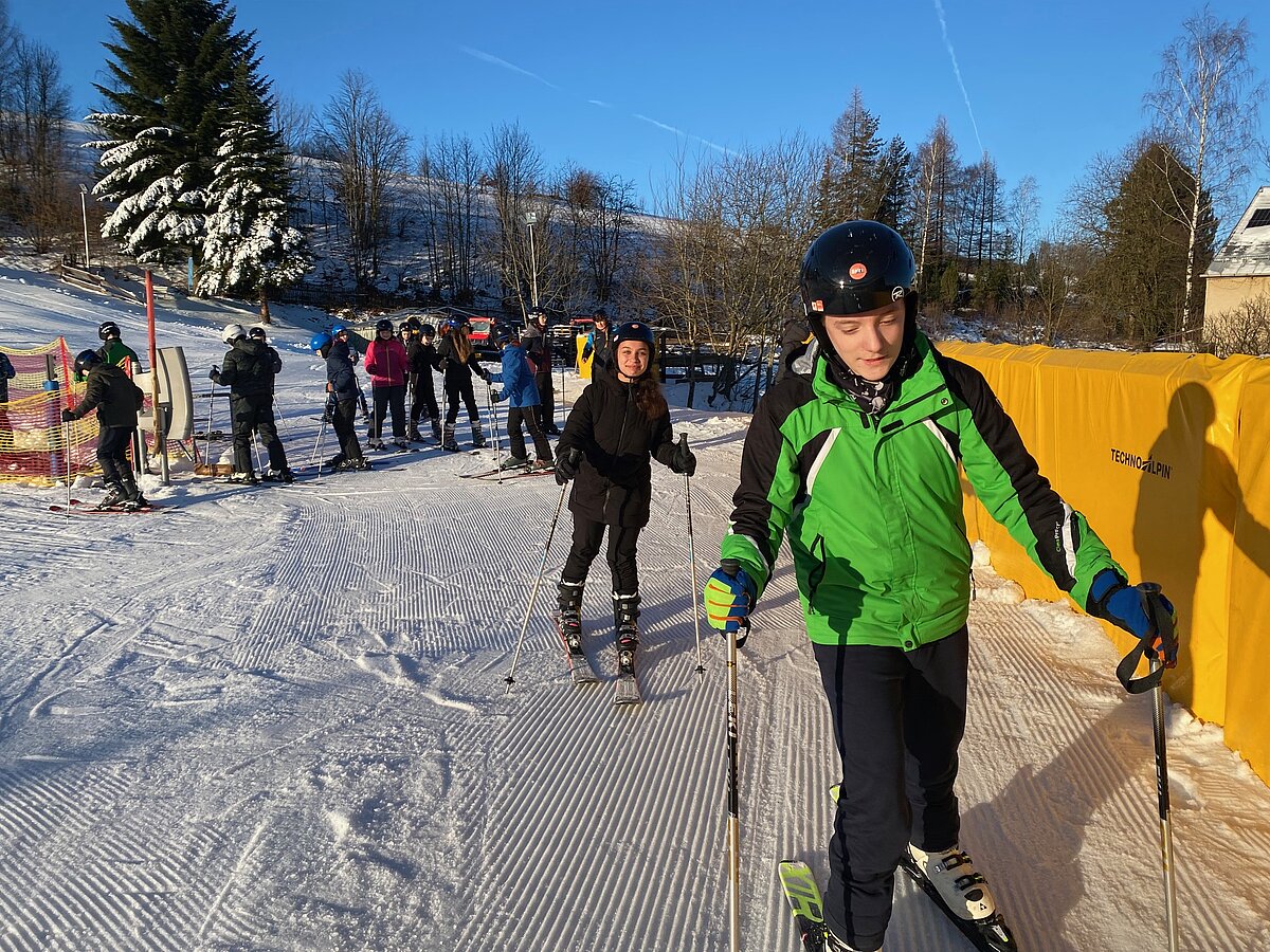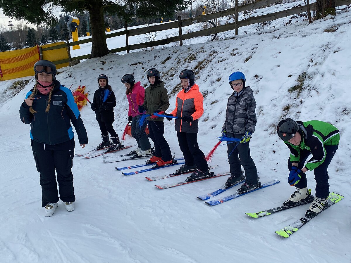 Unter professioneller Anleitung der Skilehrer der SkiArena Eibenstock unterstützt durch Herrn Lang, Frau Ernst und Herrn Gruschinky sowieso Frau Krehfeld und Herrn Gramsch erlernten die Anfänger in 2 Tagen die Grundlagen des alpinen Skilaufens und die Fortgeschrittenen perfektionieren ihre Skitechnik.