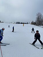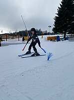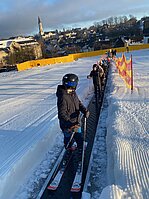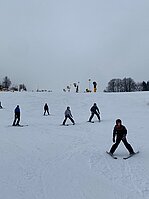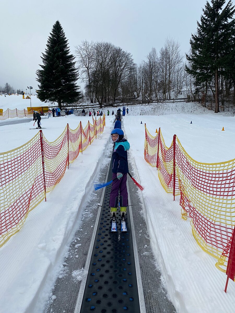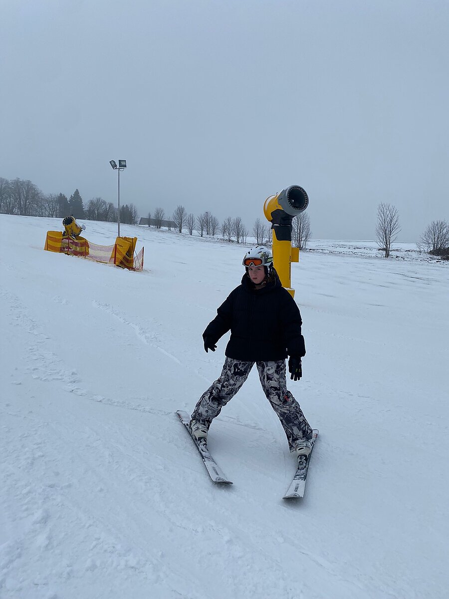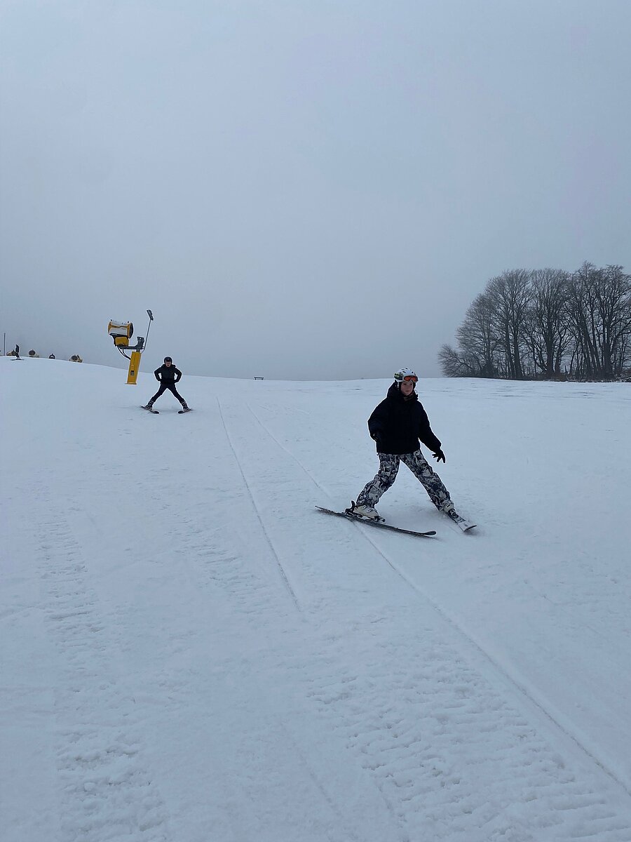 Bei griffigem Kunstschnee, leerer Piste und am 2. Tag endlich auch sonnigem Wetter düsten Anfänger wie Fortgeschrittene ein ums andere Mal den Hang hinunter und die lachenden Gesichter und stolzen Blicke zeigten unmissverständlich: Skifahren macht Spaß!