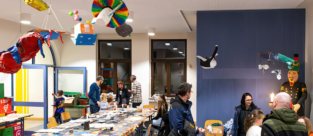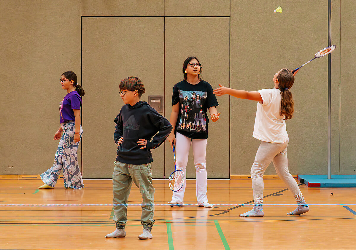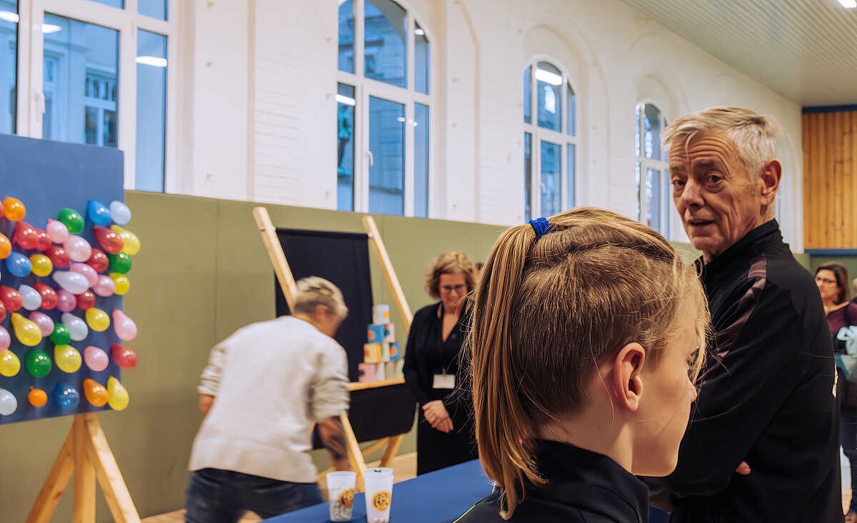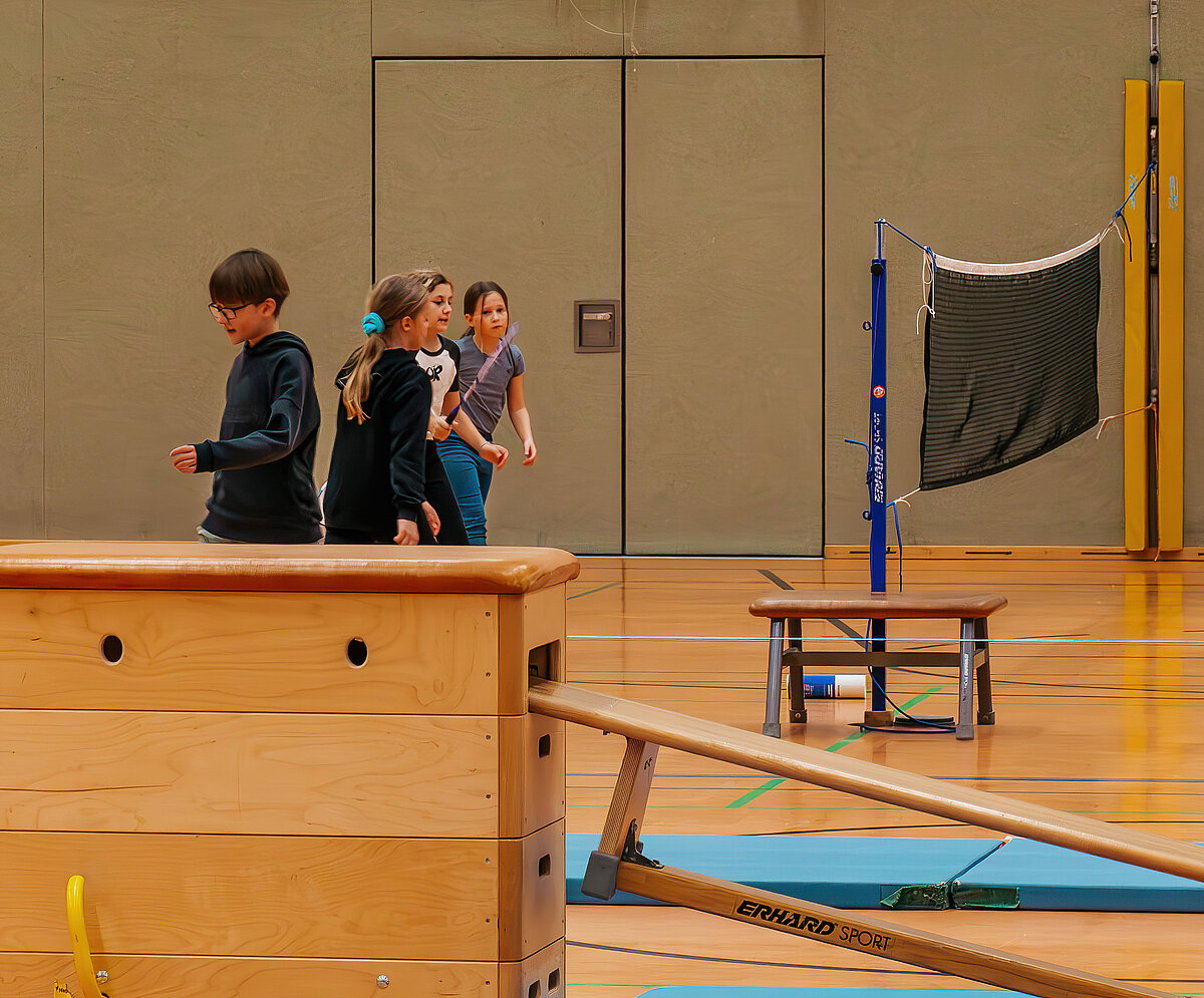 Nach der anstrengenden Suche nach den Lösungswörtern bei der Schulrallye konnten sich die kleinen und großen Gäste in der Auersberghalle bei Sportspielen so richtig austoben.
