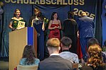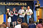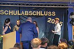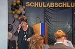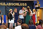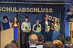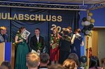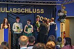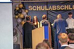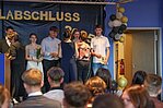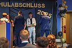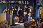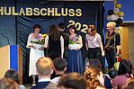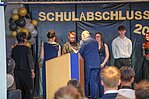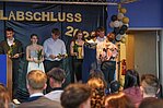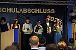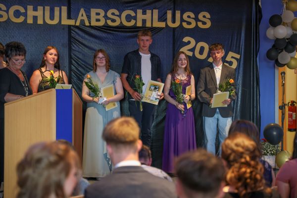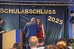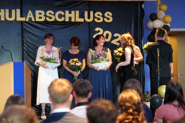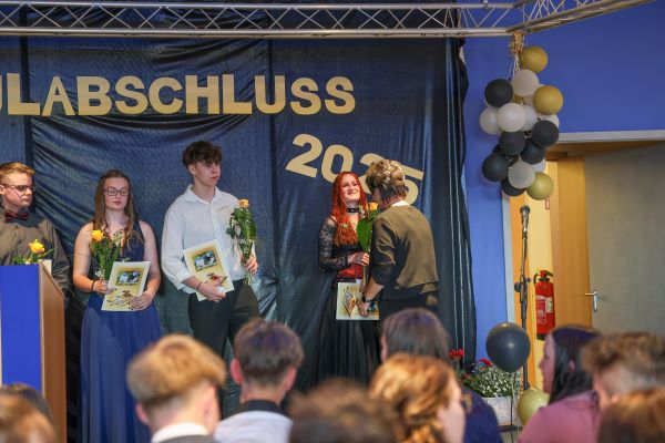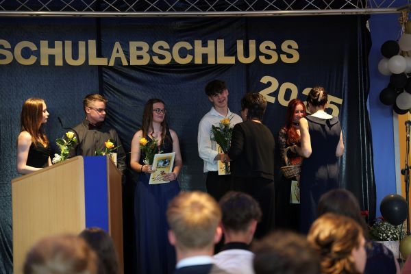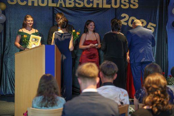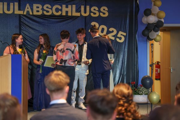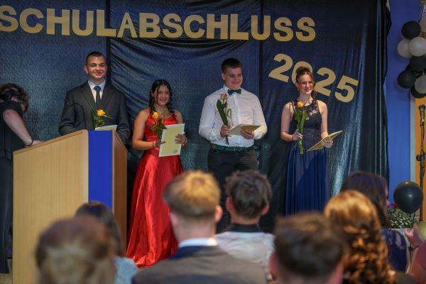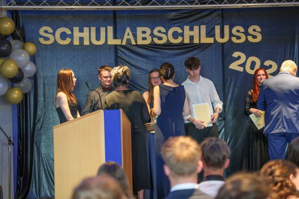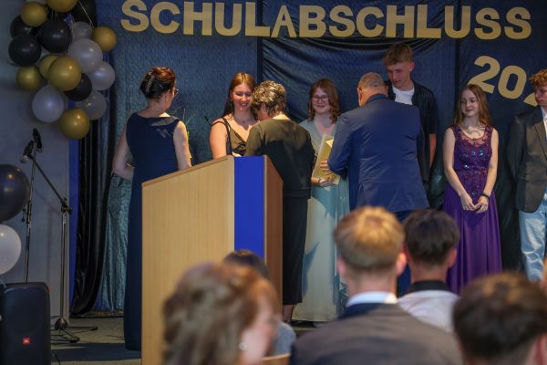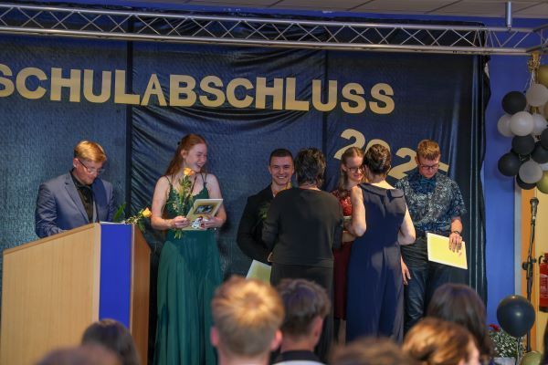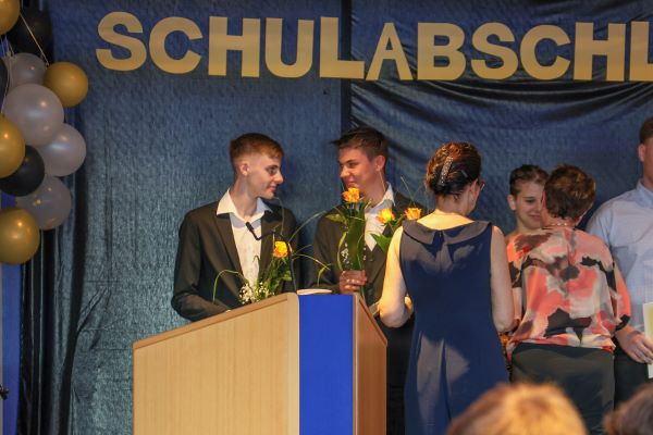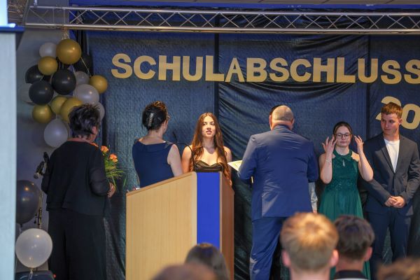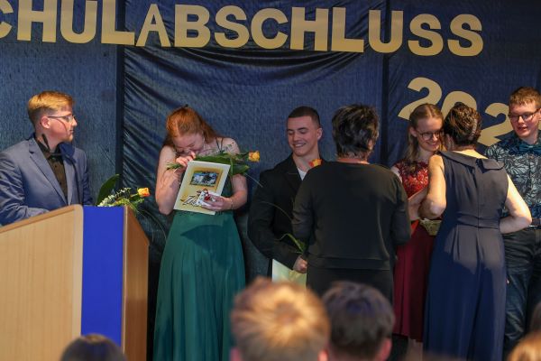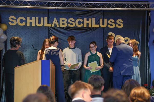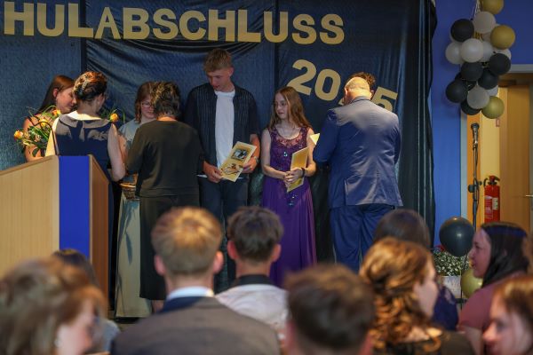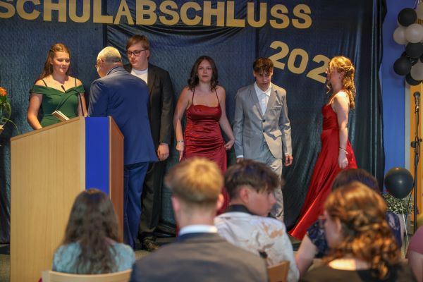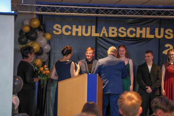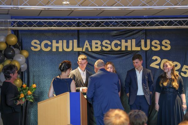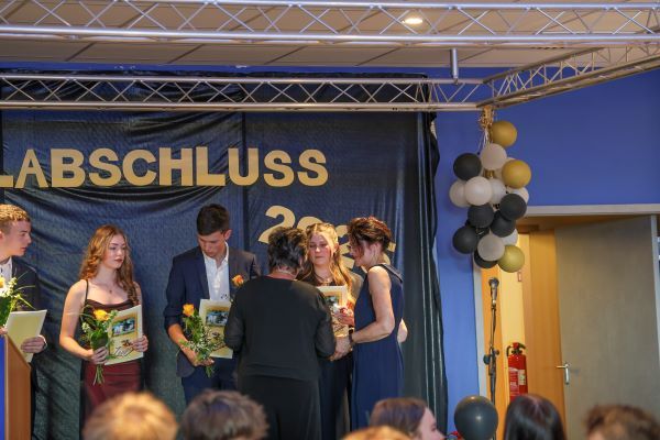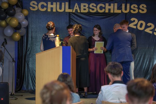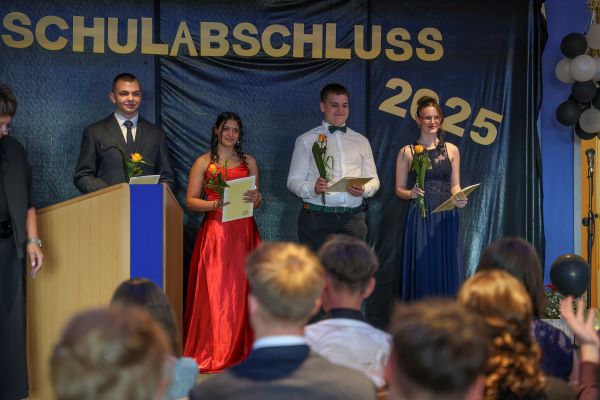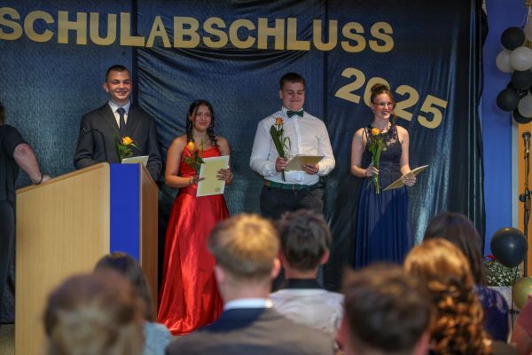 Der Höhepunkt war die feierliche Zeugnisausgabe. Die Schülerinnen und Schüler traten in Gruppen nacheinander auf die Bühne, um ihre Zeugnisse entgegenzunehmen. Die Klassenleiter und der Schulleiter überreichten die Dokumente, oft begleitet von einer herzlichen Umarmung und ein paar persönlichen Worten. Dieser Moment markierte offiziell den Abschluss ihrer Zeit an der “Glück auf!” - Oberschule Eibenstock und wurde von den stolzen Eltern und Verwandten und dem Applaus der Mitschüler begleitet.