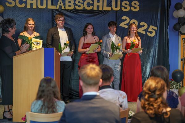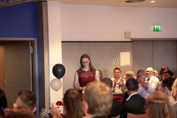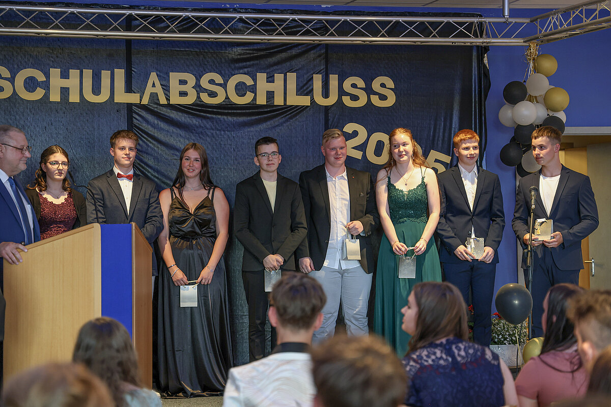 Im Anschluss wurden die besten Schülerinnen und Schüler des Jahrgangs für ihre herausragenden Leistungen geehrt. 10 Schülern ist es gelungen, einen Notendurchschnitt unter 1,5 zu erlangen, einer Schülerin – Elisabeth Klötzer – sogar einen Durchschnitt von 1,0. Diese Ehrung war ein emotionaler Moment, der den Einsatz und die Mühen der Lernenden würdigte.