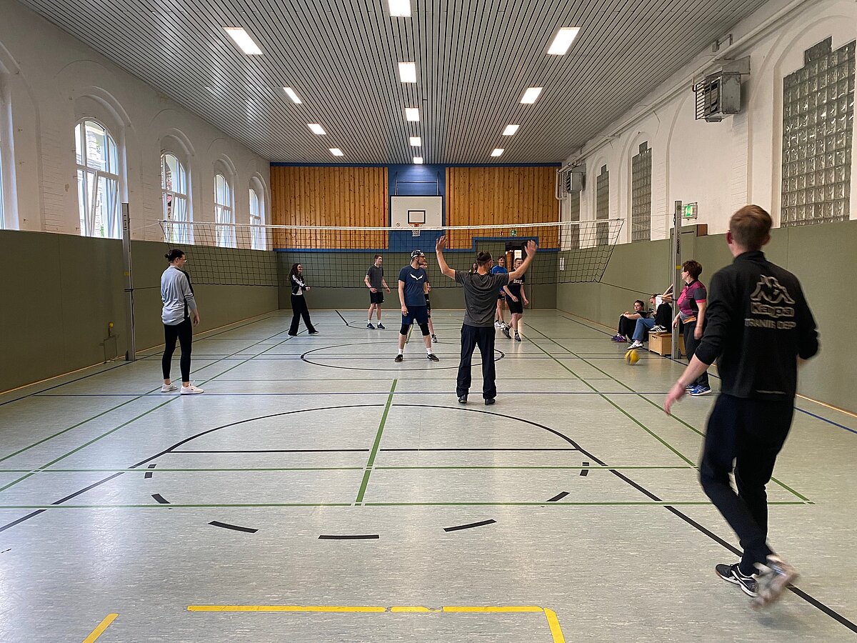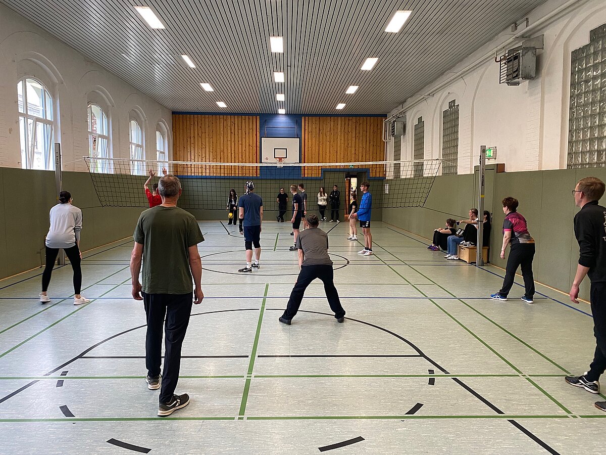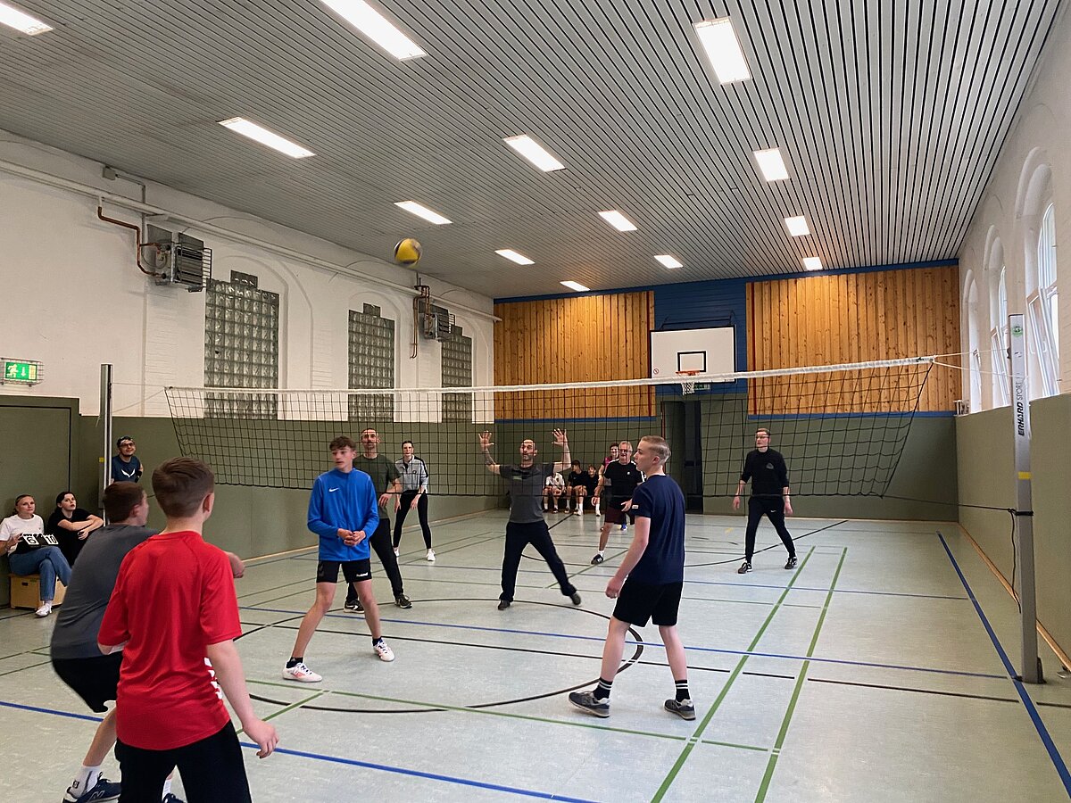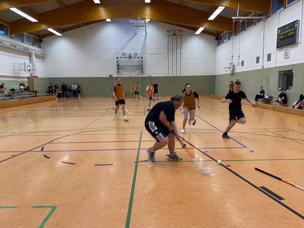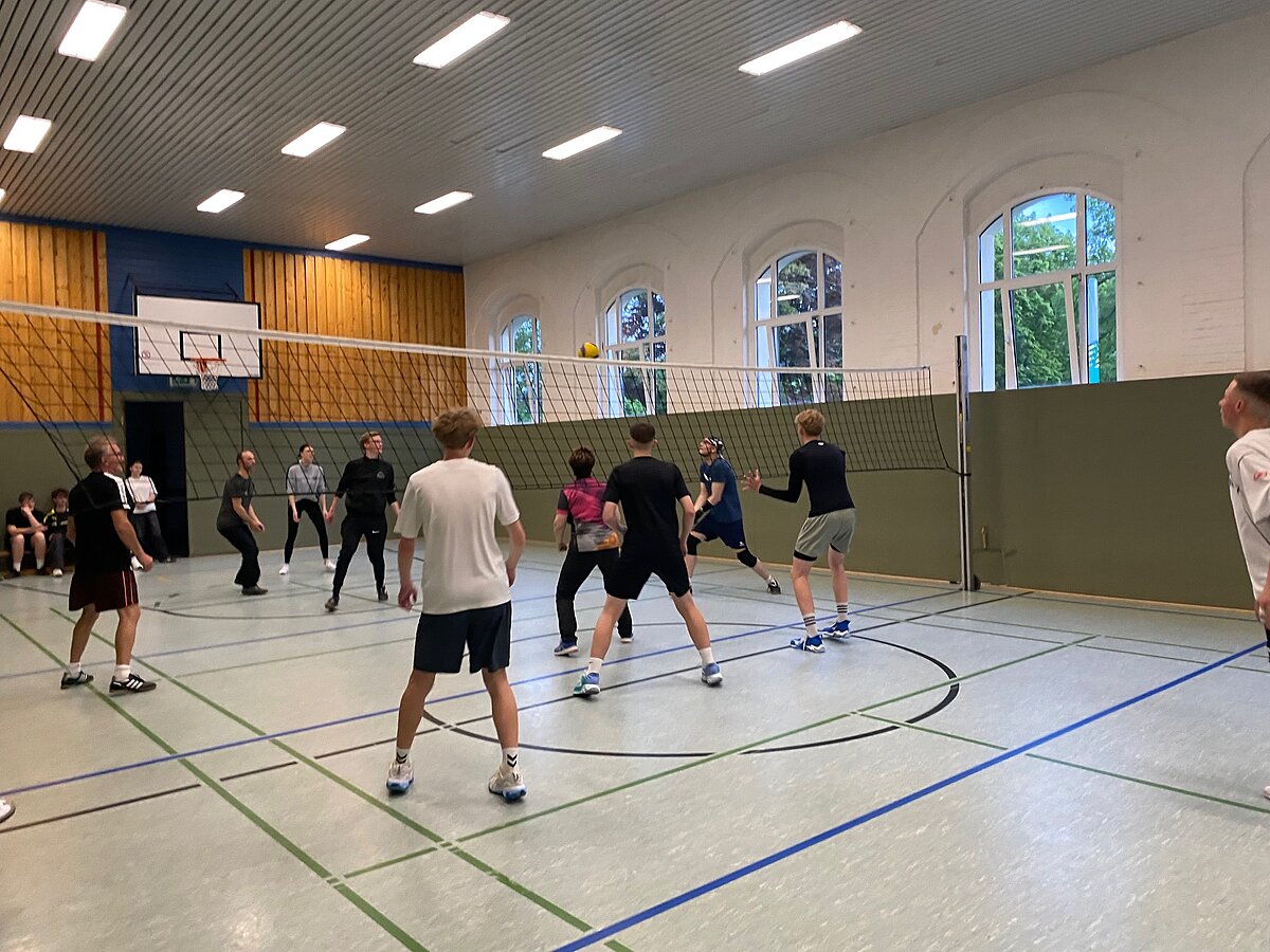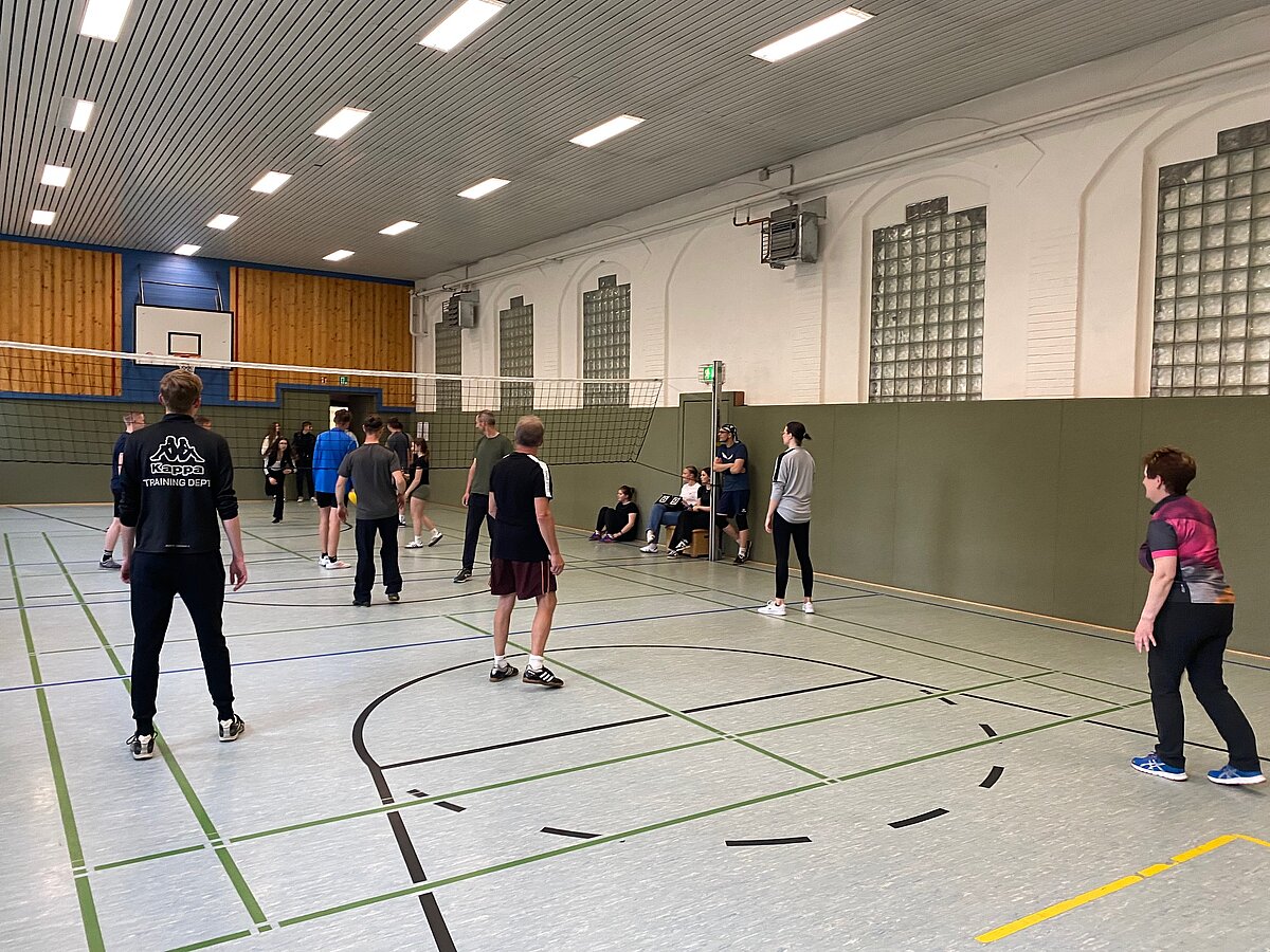 Um 17 Uhr starteten dann in beiden Hallen die mit Spannung erwarteten Turniere im Volleyball und Floorball.