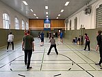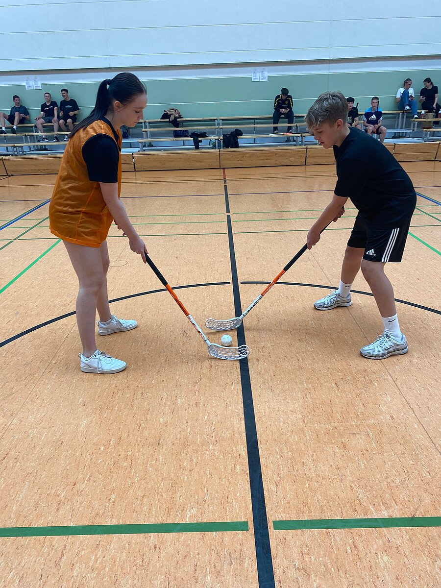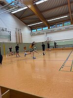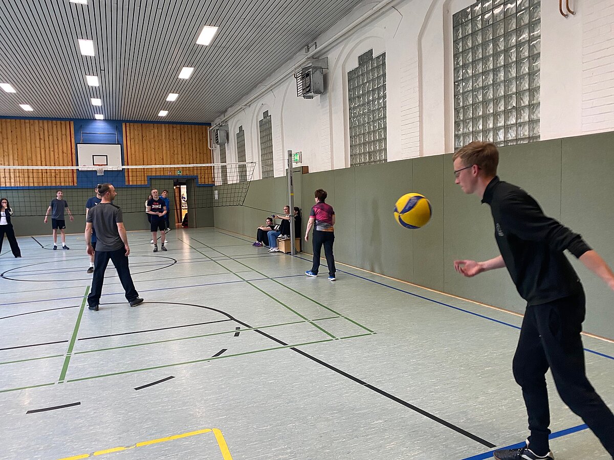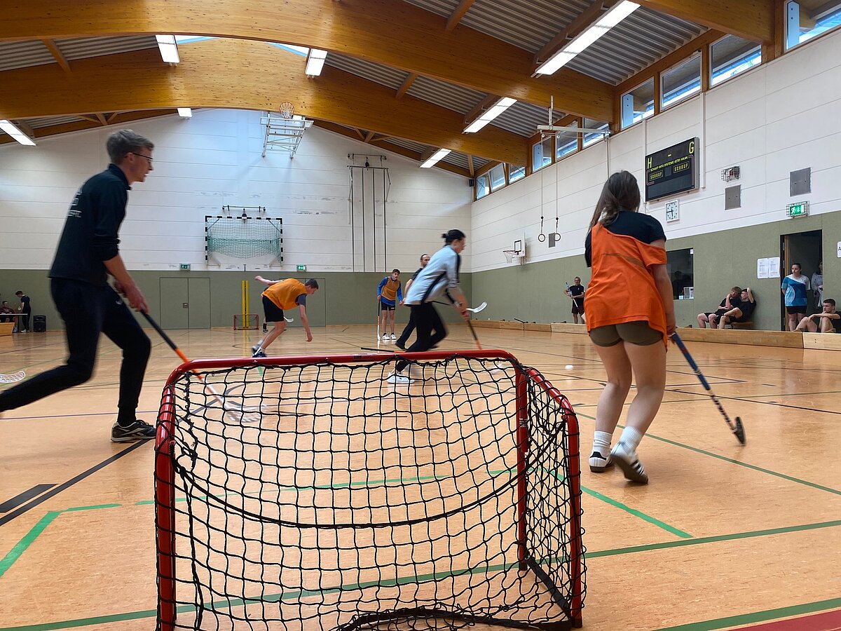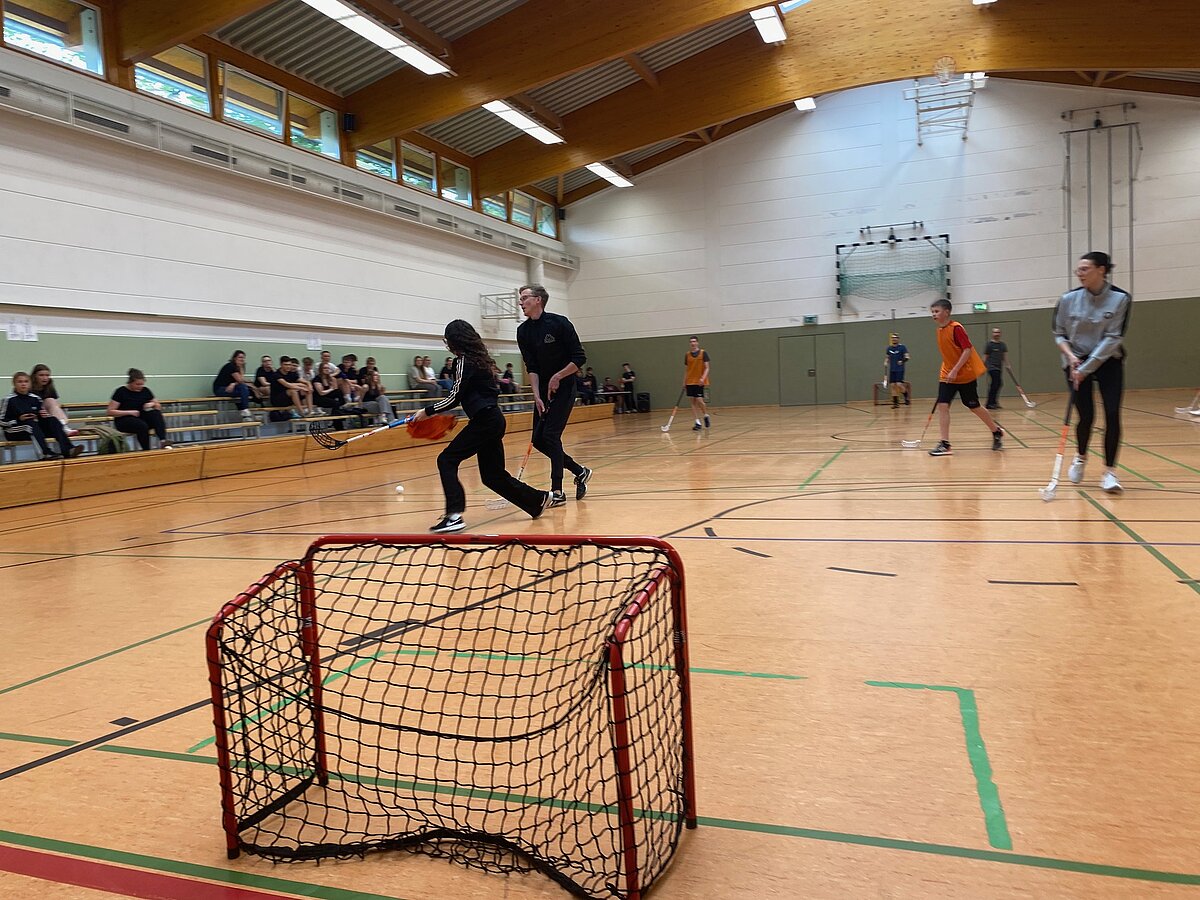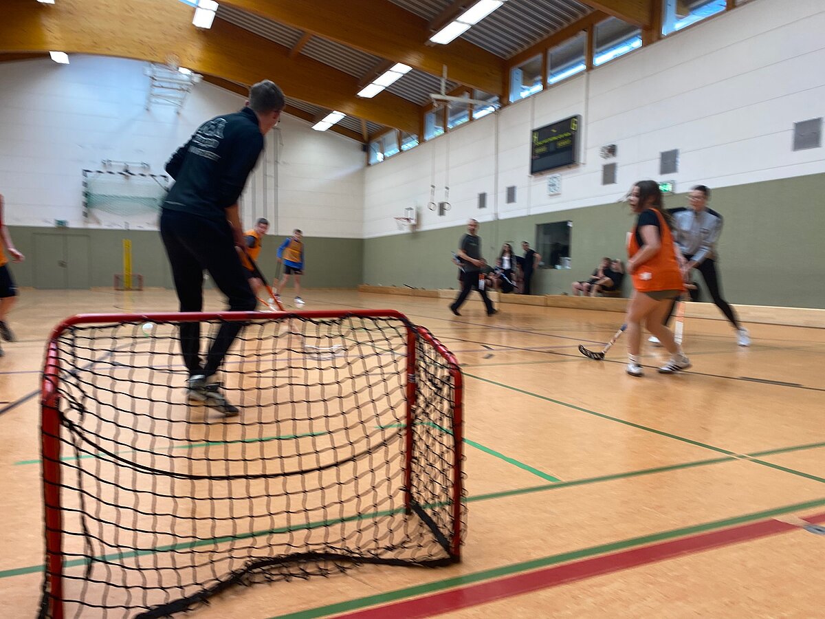 Um 17 Uhr starteten dann in beiden Hallen die mit Spannung erwarteten Turniere im Volleyball und Floorball.