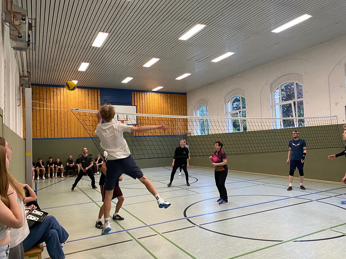 Das Highlight dabei war wie jedes Jahr das Spiel gegen die durch Neuzugänge verstärkte Lehrermannschaft. Frau Rostig, Frau Krehfeld, Herr Goldhahn, Herr Vogel, Herr Bennewitz, Herr Voigt und unsere Geheimwaffe Herr Helm waren wie gewohnt harte Brocken, die allerdings durchaus in einzelnen Begegnungen geschlagen werden konnten.