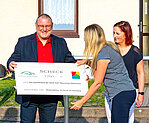 Nach einer kurzen Ansprache des Schulleiters, Herr Schieronsky, war es uns eine besondere Freude, den Spendenscheck in der beeindruckenden Höhe von 7.700 EUR überreichen zu können! Als Stiftung haben wir vorab mit einer zusätzlichen Spende von knapp 300 Euro die Spendensumme zu dieser runden Zahl aufgefüllt. Wir sind begeistert von der Spendenbereitschaft, aber auch von den Sammelaktionen, die durch die Eltern, Schüler und die Schule auf die Beine gestellt wurden und freuen uns schon auf die ersten Berichte der Klassen, für welche Unternehmungen sie das gespendete und erlaufene Geld verwendet haben.