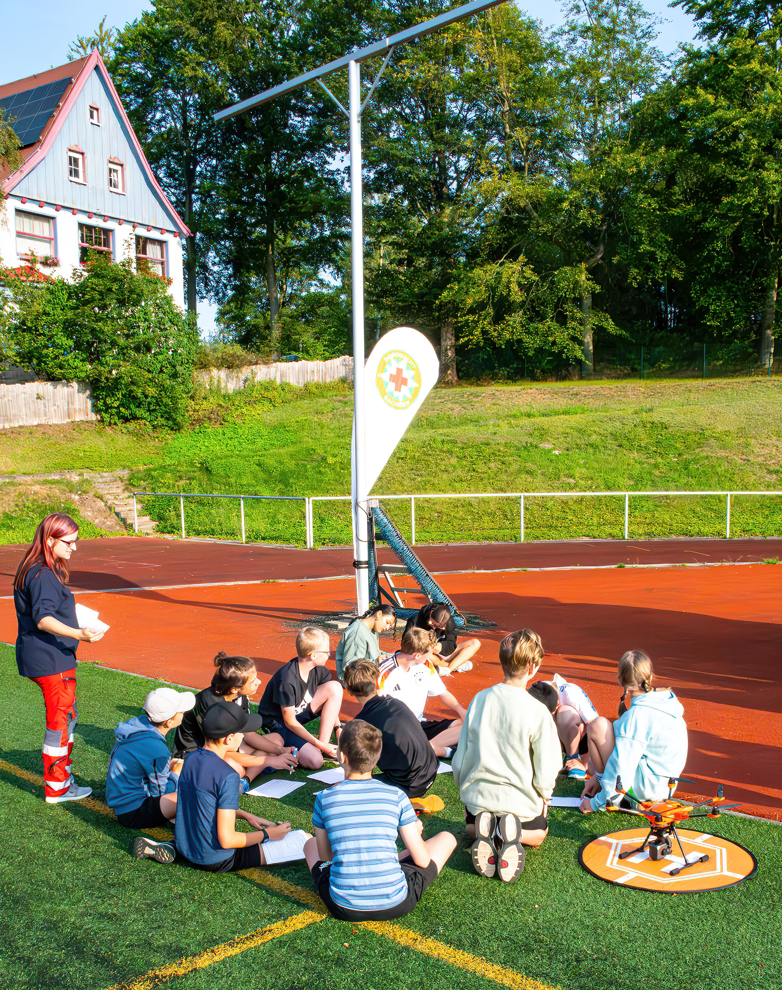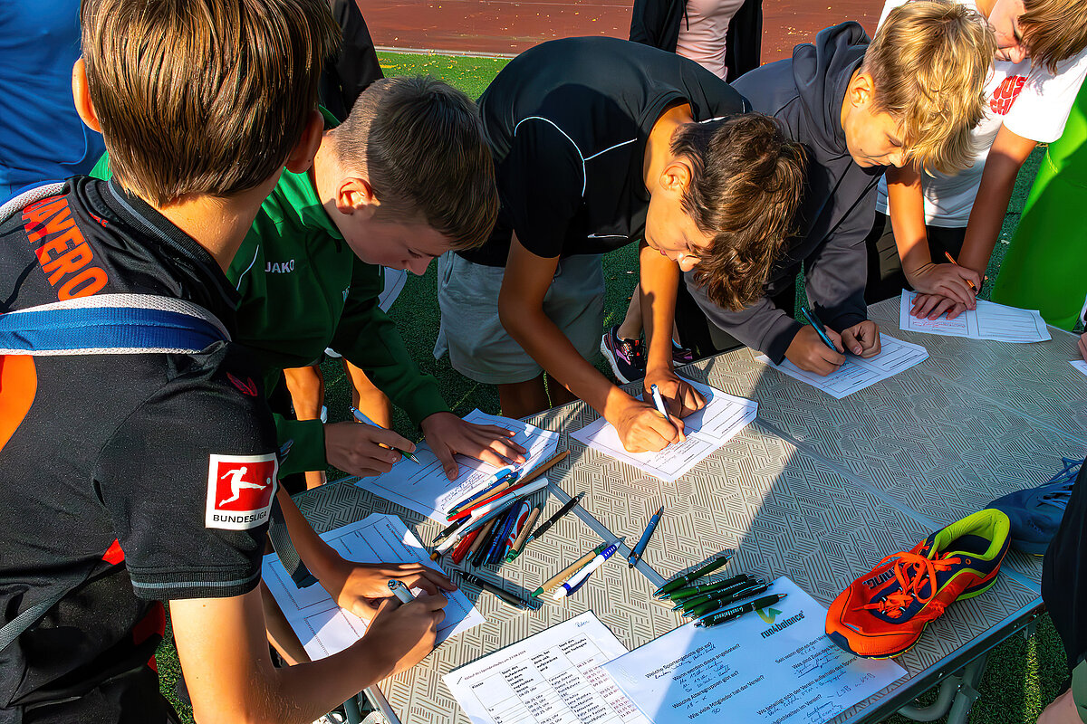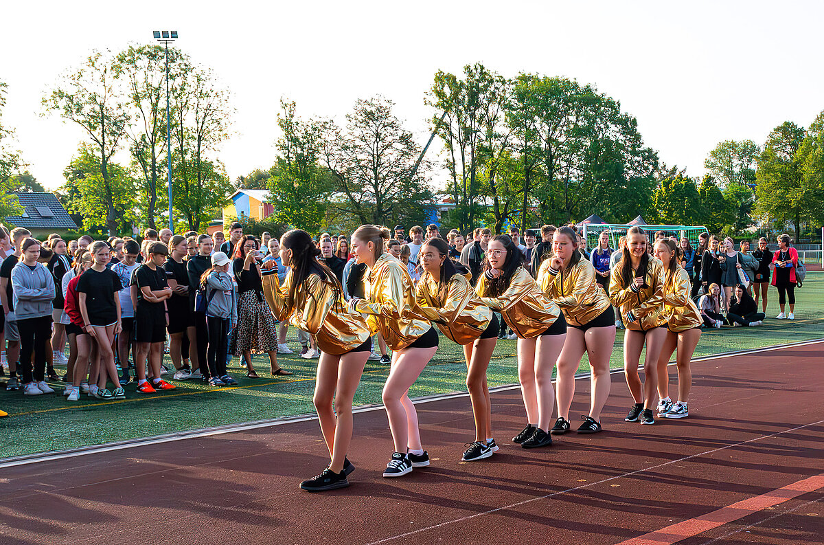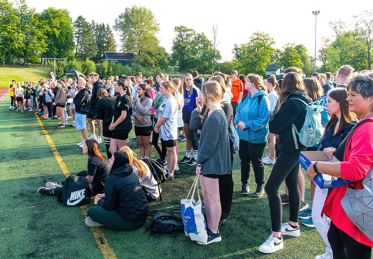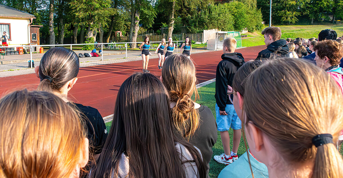 Am 23. August war es nun soweit – die Schüler und Schülerinnen der Klassen 5-10 erwarteten ganz gespannt bei strahlendem Sonnenschein auf der Bretschneider Sportstätte die Bekanntgabe der Spendensumme, die bis dahin erfolgreich geheim gehalten werden konnte!