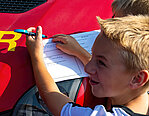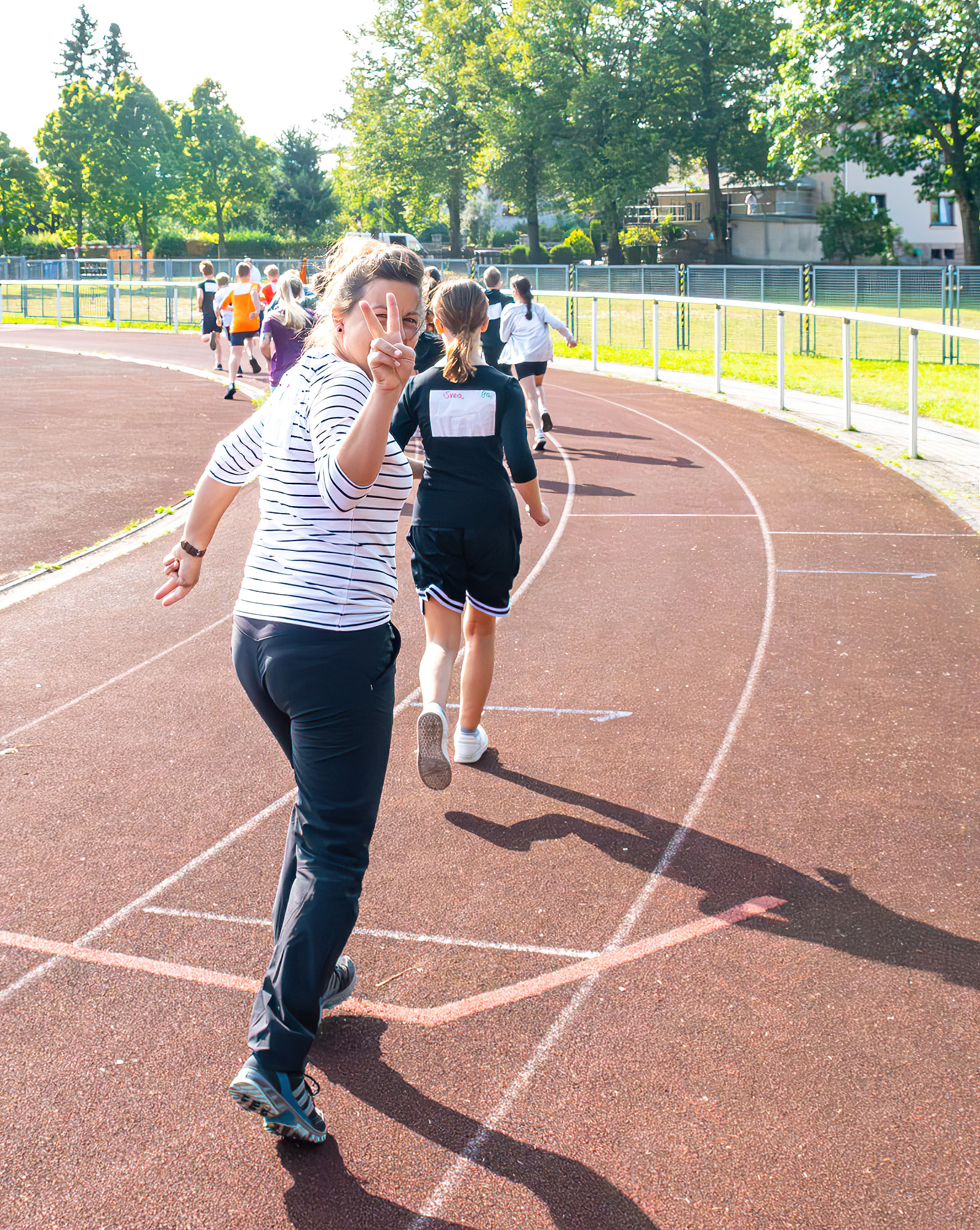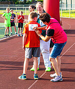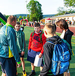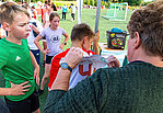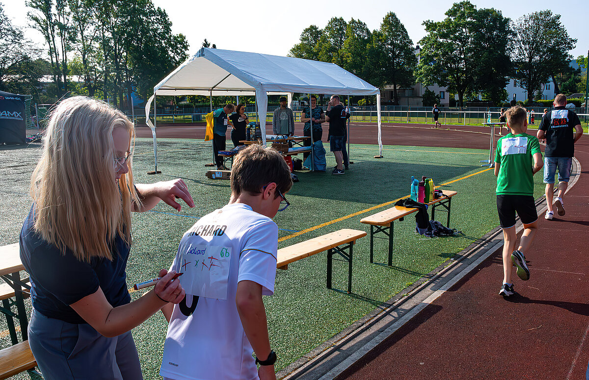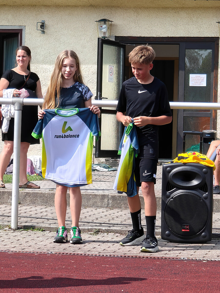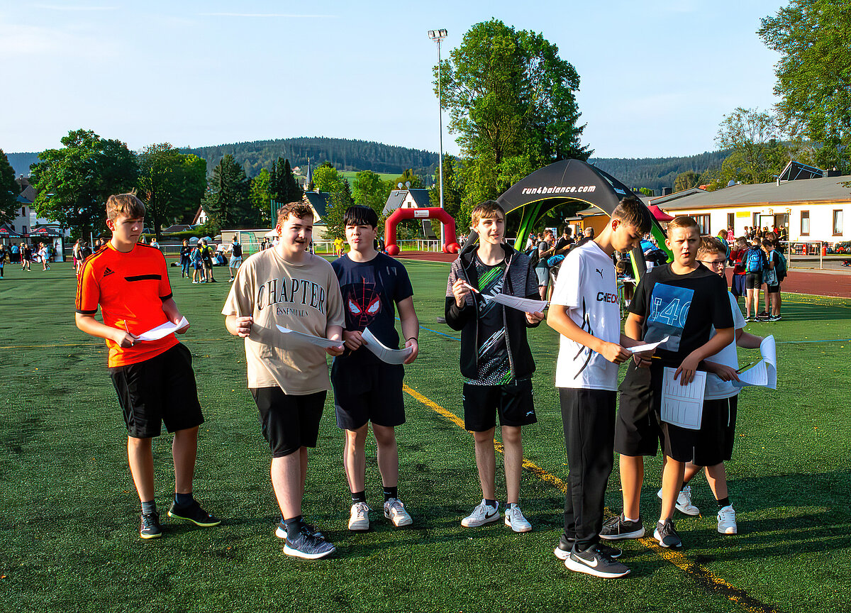 Vor den Ausflügen stand allerdings erst noch das Laufen auf dem Programm – nach der Erwärmung bei den Vereinen gingen die Klassen motiviert in ihre 20minütigen Läufe. Jeder hat nach seinen sportlichen Möglichkeiten den Beitrag für seine Klasse geleistet – es liefen sogar Eltern mit und auch Lehrer begaben sich auf die Strecken! Für die beiden besten Läufer Yvi Deichgräber (Klasse 6b, 11 Runden) und Anakin Opterweidt (Klasse 9b, 14 Runden) gab es als Auszeichnung Laufshirts vom Verein Run4Balance – vielen Dank dafür. Selbst die Schüler und Schülerinnen der Klassen 7a und 7b, die sich auf Rüstzeit befanden, liefen ihre Runden in Pockau und übermittelten Fotos und Videos von ihrem Beitrag zum Spendenlauf!