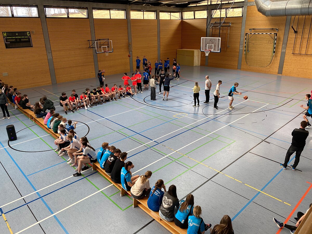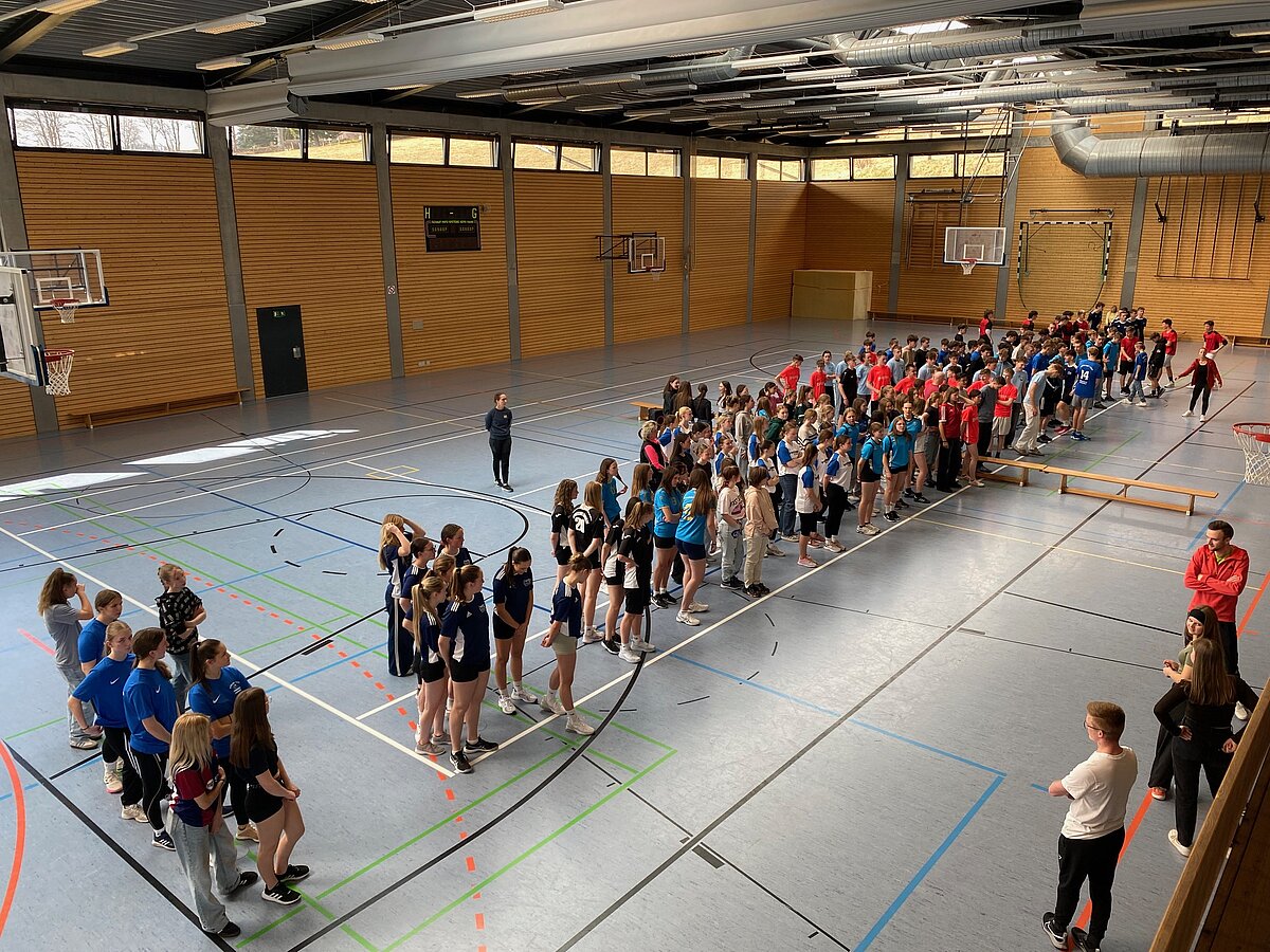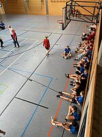 Unsere 5 Mannschaften zu je 4 Mädchen bzw. Jungs traten in Disziplinen wie Dreierhopp, Sit-ups, Klimmziehen, Seilspringen und Medizinballstoßen gegen 9 weitere Schulen aus der Umgebung an.