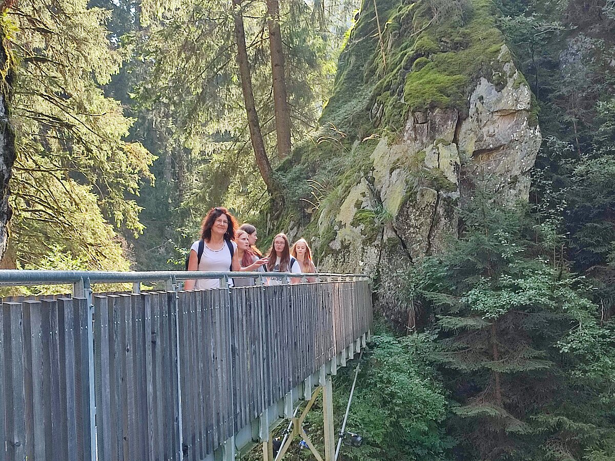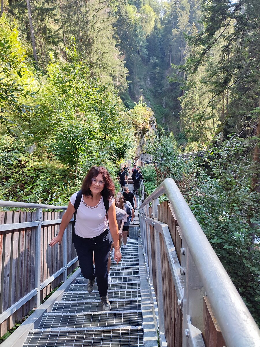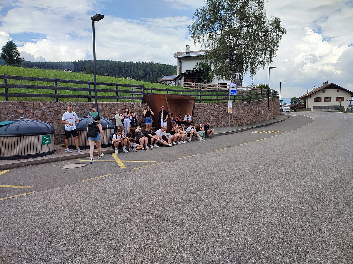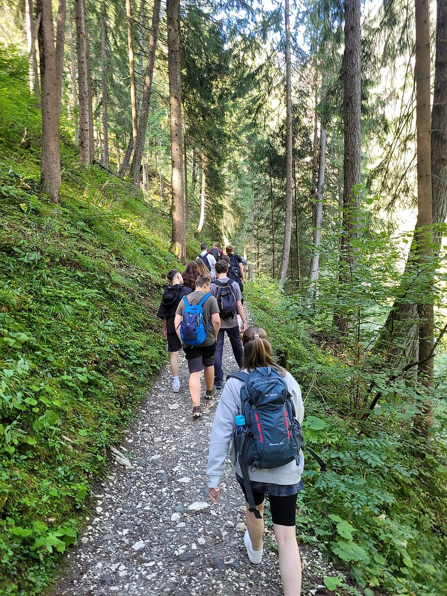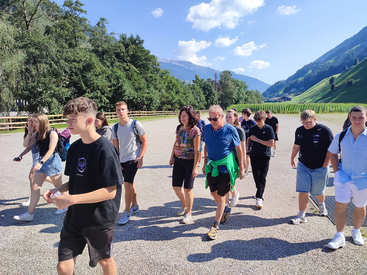 Am Dienstag-Morgen standen wir um 7:00 Uhr auf, um nach dem reichhaltigen Frühstück die Fahrt zur „Gilfenklamm“ anzutreten. Angekommen erwartete uns ein dreißigminütiger Fußmarsch bis zur Klamm. Durch die enge Schlucht ging es immer weiter hinauf, während man türkis-blaues Wasser und beeindruckende Wasserfälle bestaunen konnte. Erschöpft oben angekommen, legten wir eine kurze Pause ein, bevor wir der kleinen Kapelle auf dem Berg einen Besuch abstatteten. Nachdem wir den Abstieg geschafft hatten, ging es für uns weiter mit dem Bus nach Brixen. Dort angelangt, durften wir in Gruppen die Stadt erkunden. Echtes, italienisches „Gelato“ (Eis) versüßte uns den heißen Sommertag. Am Nachmittag freuten sich alle auf das kühlende Nass. Mit unseren Lehrern endete der Abend auf dem Balkon.