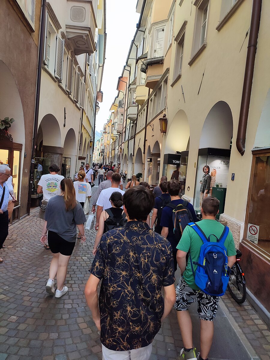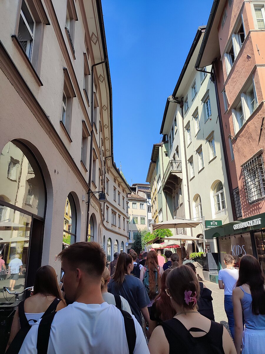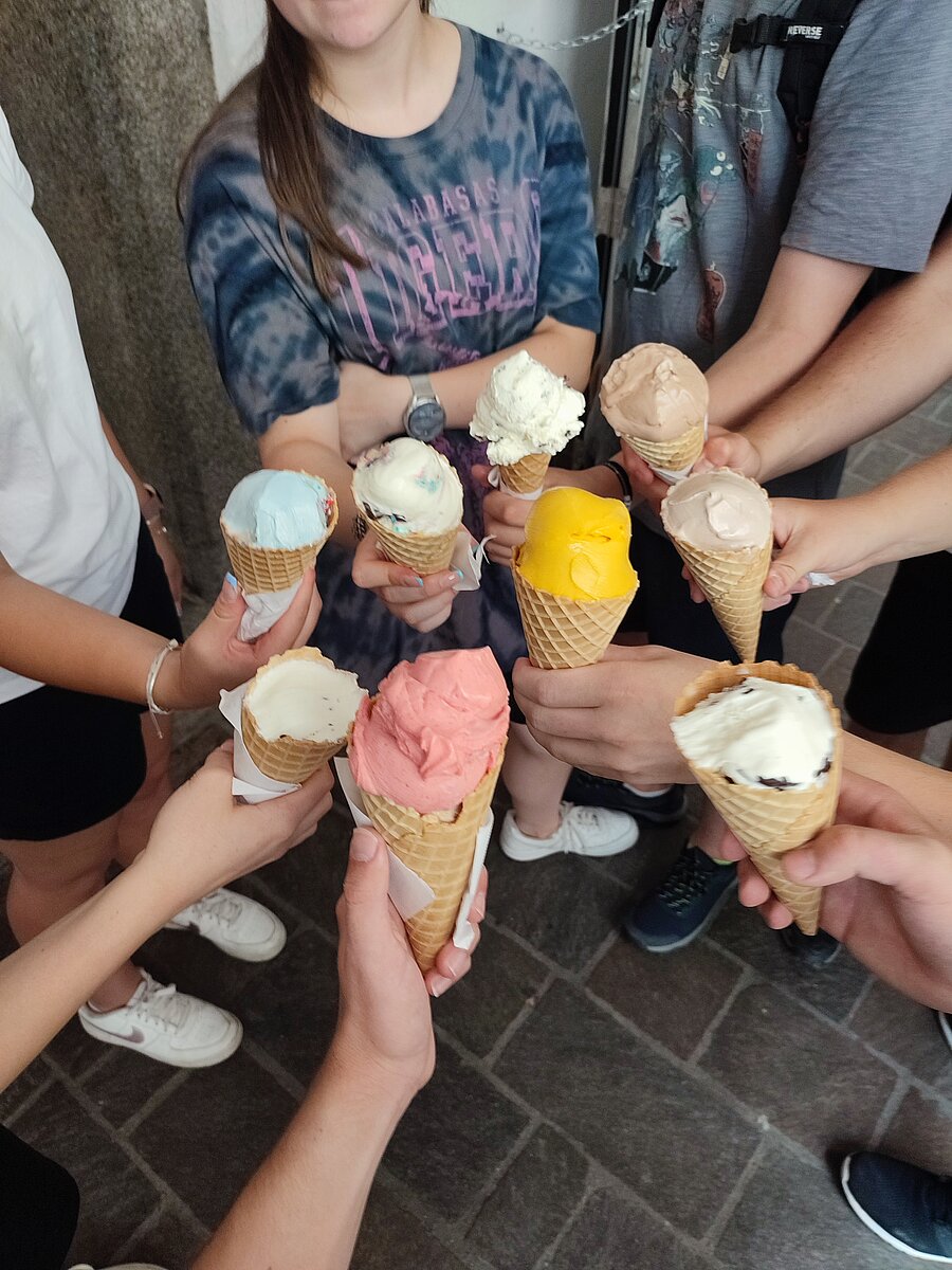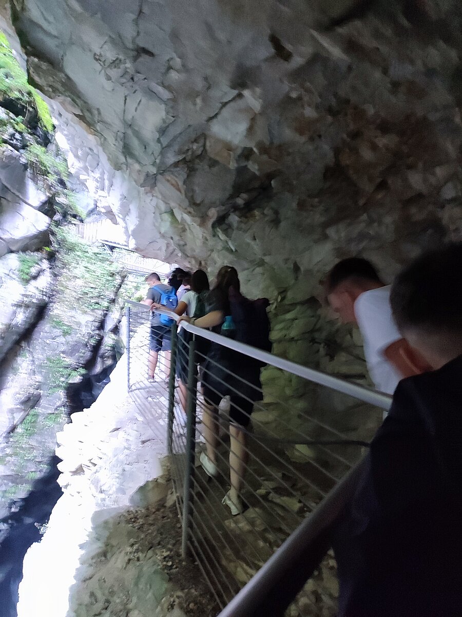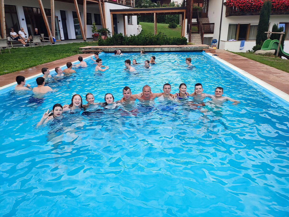 Am Dienstag-Morgen standen wir um 7:00 Uhr auf, um nach dem reichhaltigen Frühstück die Fahrt zur „Gilfenklamm“ anzutreten. Angekommen erwartete uns ein dreißigminütiger Fußmarsch bis zur Klamm. Durch die enge Schlucht ging es immer weiter hinauf, während man türkis-blaues Wasser und beeindruckende Wasserfälle bestaunen konnte. Erschöpft oben angekommen, legten wir eine kurze Pause ein, bevor wir der kleinen Kapelle auf dem Berg einen Besuch abstatteten. Nachdem wir den Abstieg geschafft hatten, ging es für uns weiter mit dem Bus nach Brixen. Dort angelangt, durften wir in Gruppen die Stadt erkunden. Echtes, italienisches „Gelato“ (Eis) versüßte uns den heißen Sommertag. Am Nachmittag freuten sich alle auf das kühlende Nass. Mit unseren Lehrern endete der Abend auf dem Balkon.