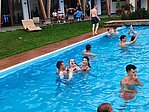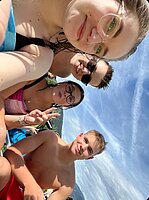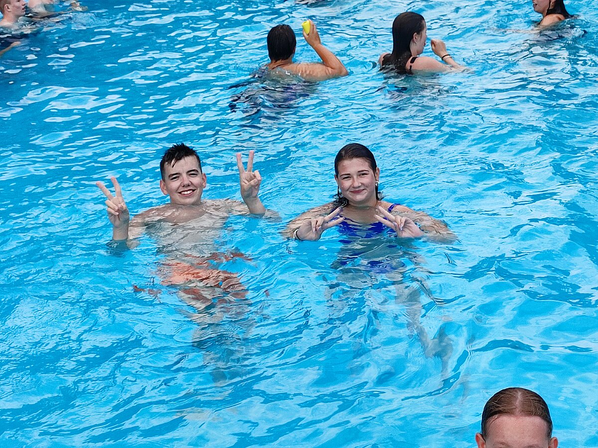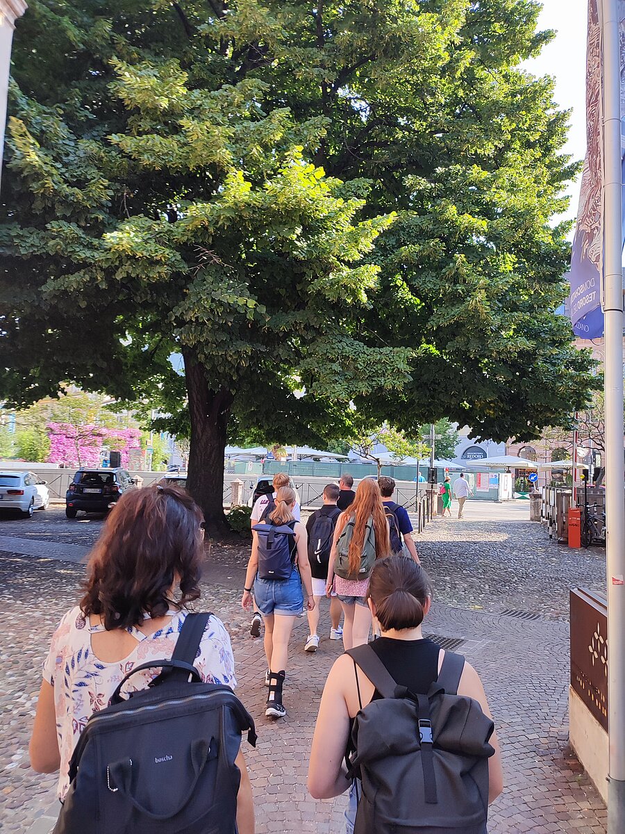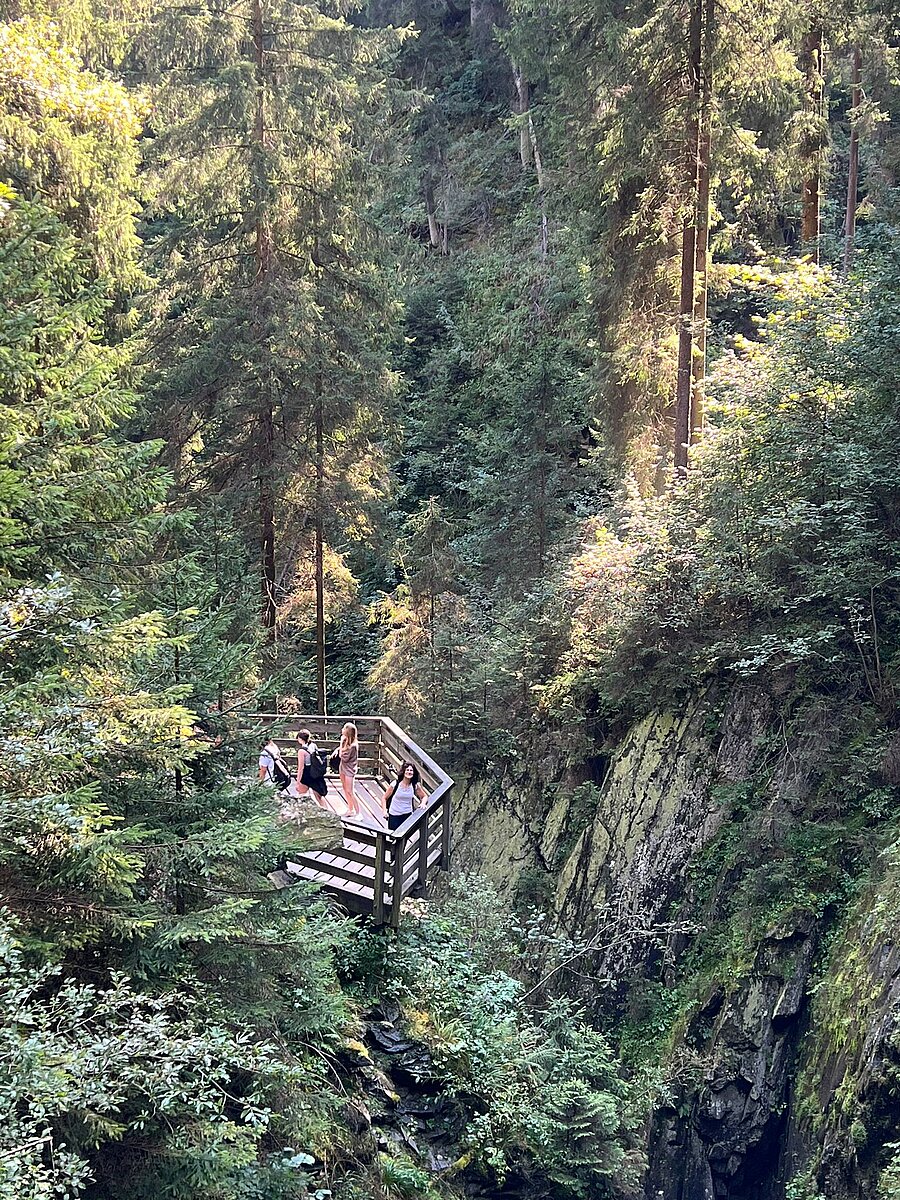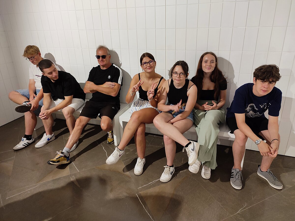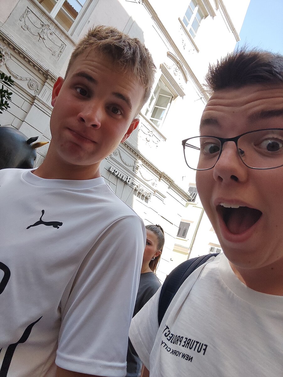 Am Dienstag-Morgen standen wir um 7:00 Uhr auf, um nach dem reichhaltigen Frühstück die Fahrt zur „Gilfenklamm“ anzutreten. Angekommen erwartete uns ein dreißigminütiger Fußmarsch bis zur Klamm. Durch die enge Schlucht ging es immer weiter hinauf, während man türkis-blaues Wasser und beeindruckende Wasserfälle bestaunen konnte. Erschöpft oben angekommen, legten wir eine kurze Pause ein, bevor wir der kleinen Kapelle auf dem Berg einen Besuch abstatteten. Nachdem wir den Abstieg geschafft hatten, ging es für uns weiter mit dem Bus nach Brixen. Dort angelangt, durften wir in Gruppen die Stadt erkunden. Echtes, italienisches „Gelato“ (Eis) versüßte uns den heißen Sommertag. Am Nachmittag freuten sich alle auf das kühlende Nass. Mit unseren Lehrern endete der Abend auf dem Balkon.