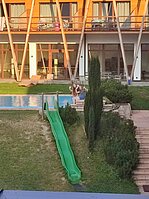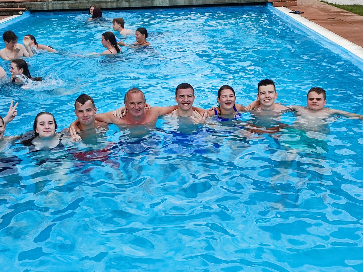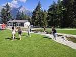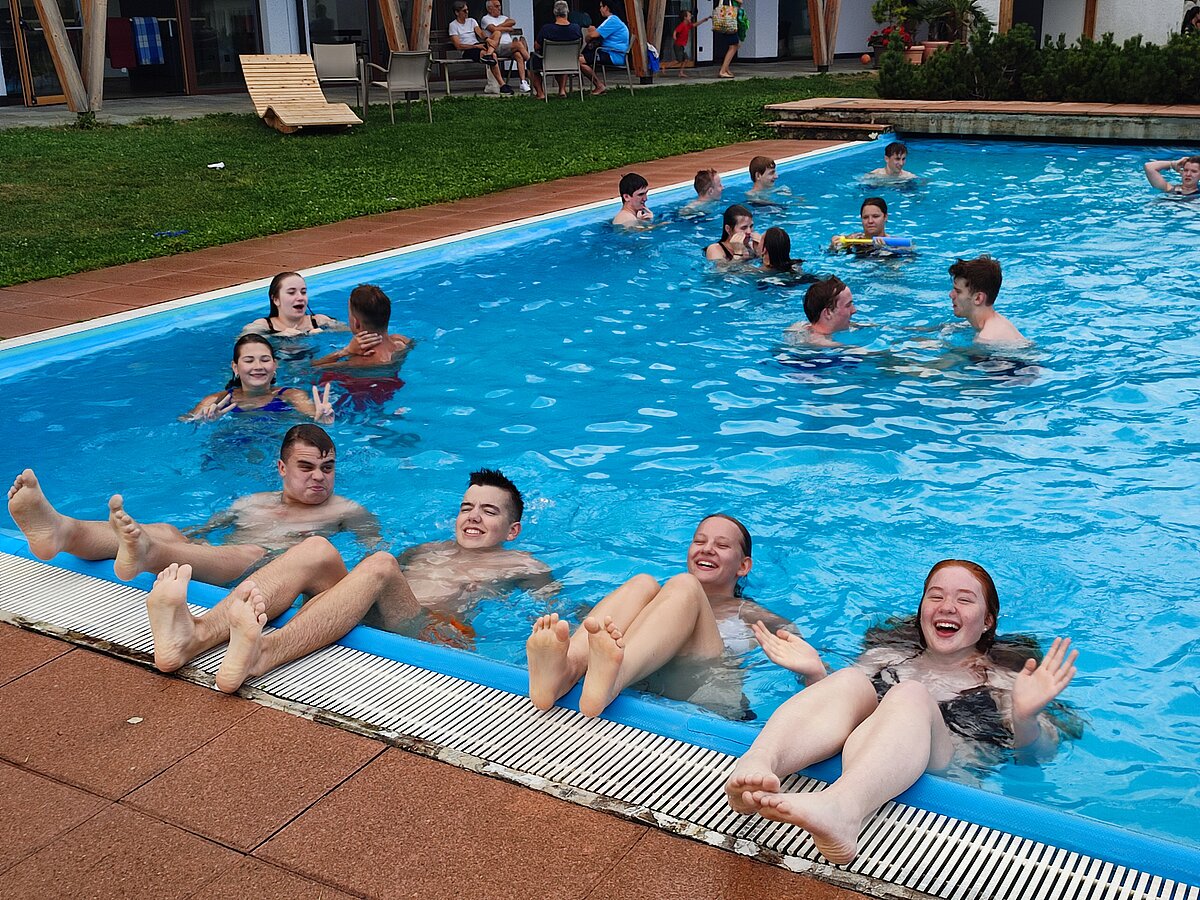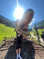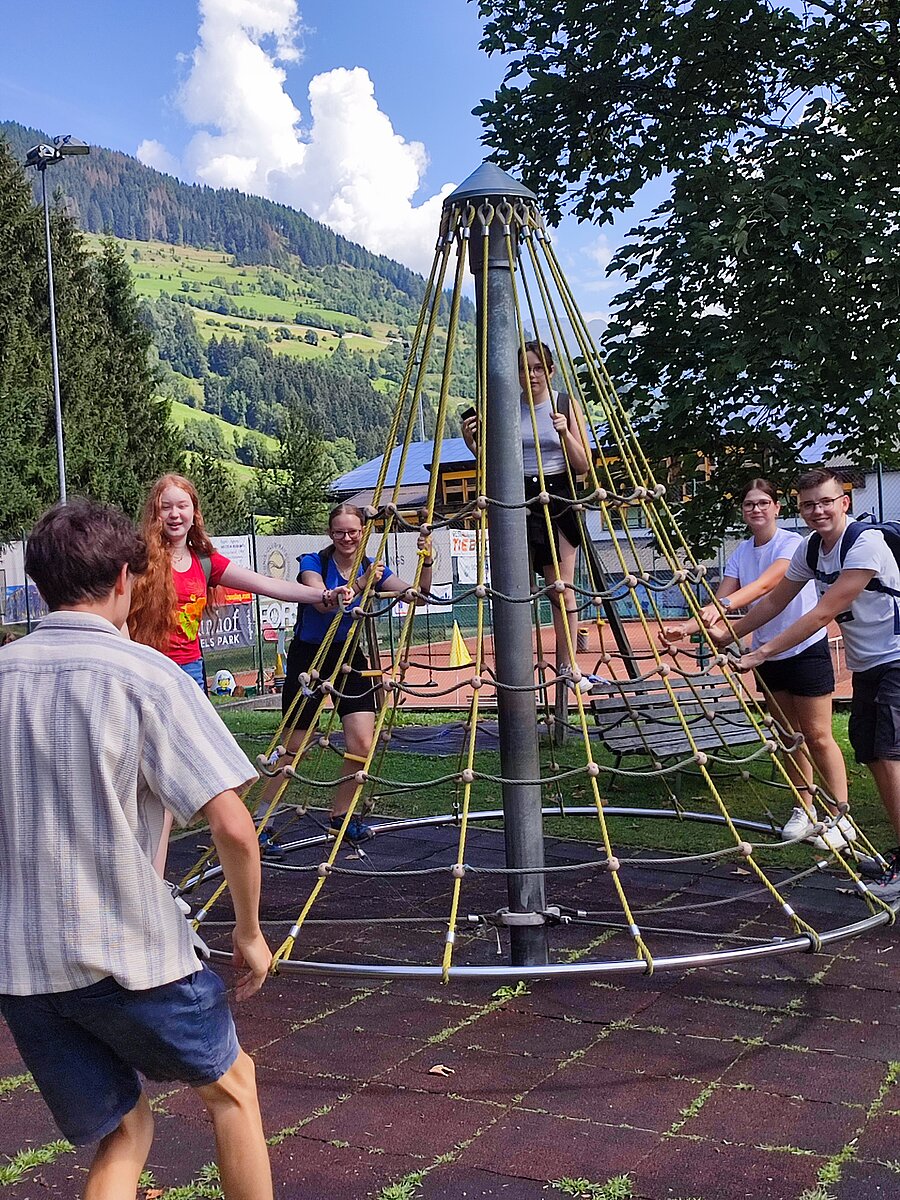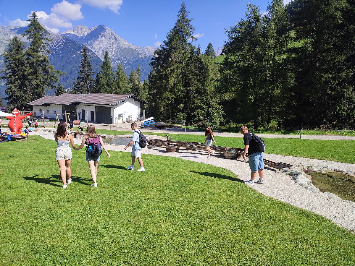 Auf dem Hochplateau erwartete uns ein Dinosaurier-Park, ein Abenteuerspielplatz und auch ein Wasserspielplatz, der besonders den Jungs sehr gefallen hat. Ein paar Wagemutige flogen mit der Zipline zur Alm. Nach einem üppigen Mittagessen in der traditionellen Almhütte, freuten wir uns auf die „Klausbergflitzer.“ Mit der 1800m langen Bobbahn düsten wir zu zweit, oder allein in Richtung Tal. Ein riesiger Spaß, für Schüler und Lehrer. Ein letztes Mal konnten wir am Nachmittag den kühlen Pool nutzen, bevor wir am Abend als Klassenverband den Tag ausklingen ließen.