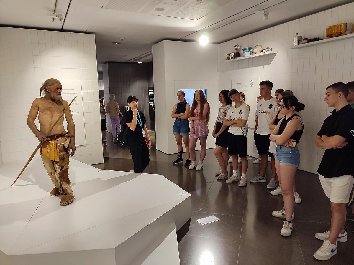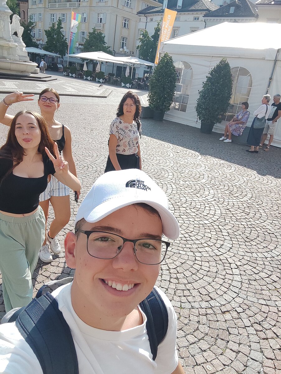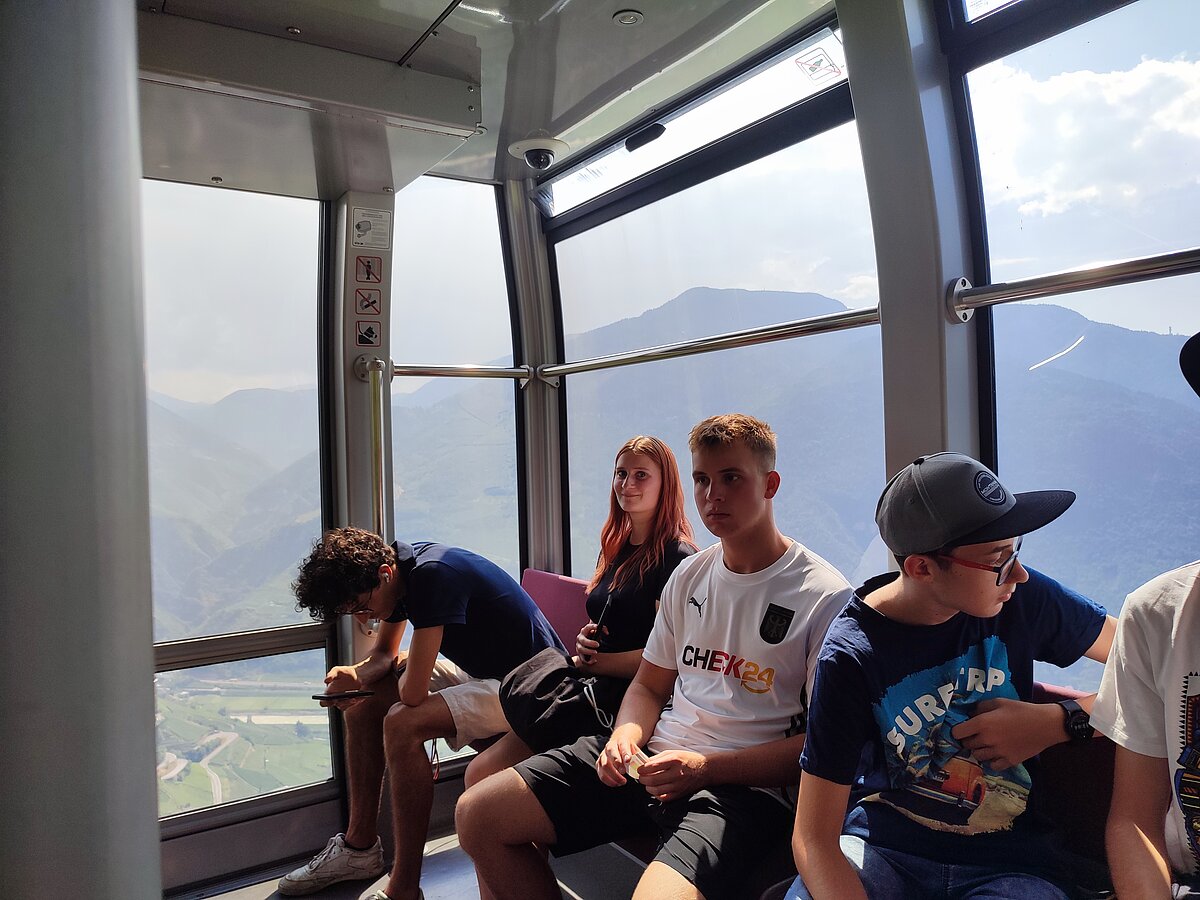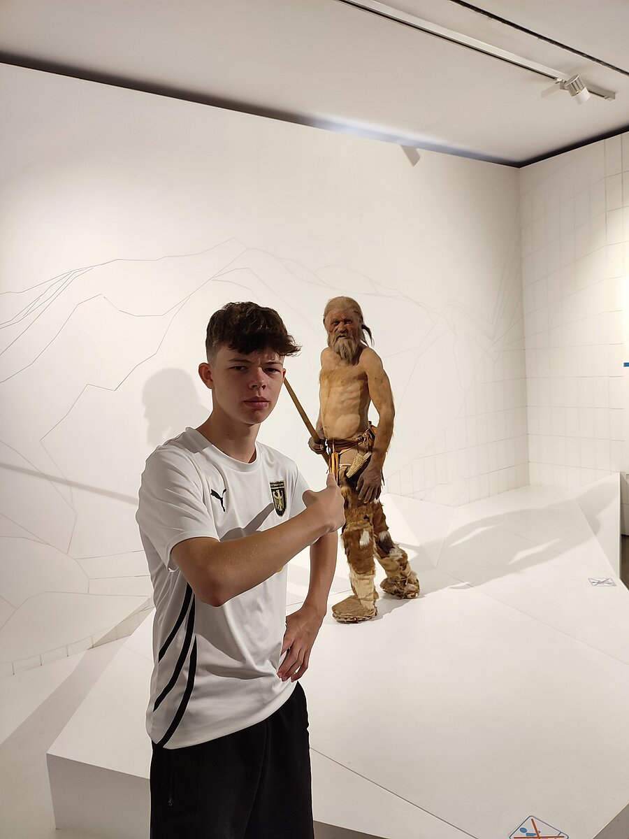 Ein anstrengender Tag erwartete uns am Mittwoch. Ab in die Landeshauptstadt Bozen! Auf direktem Weg zum Südtiroler Archäologie-Museum ging es, um die bekannteste Mumie Europas zu besichtigen - den Ötzi. Interessiert hörten wir der Leiterin unserer Museumstour zu, um möglichst viel über den „Mann aus dem Eis“ zu erfahren. Der Höhepunkt der Führung war natürlich die weltweit bekannte „Feuchtmumie“ selbst, die man gut durch das Fenster sehen konnte. Pizza, Spaghetti oder andere italienische Köstlichkeiten stärkten uns nach dem Museumsbesuch, für unsere nächste Tour nach Oberbozen. Mit der Rittner Seilbahn ging es auf den Berg und von dort aus weiter mit der Schmalspurbahn nach Klobenstein. In der Nähe befinden sich die Erdpyramiden, die für die 10b ein weiteres Highlight waren. Herr Goldhahn erklärte uns wie die Pyramiden entstanden und lehrte uns die Namen der Berge, die bei diesem sonnigen Wetter eindrucksvoll in den Himmel ragten. Am späten Nachmittag konnte sich keiner vor dem hauseigenen Pool retten. Als Klasse gingen wir am Abend, mit unseren Lehrern zum Dorffest in Natz. Bei Blasmusik und guter Laune ließ sich die Südtiroler Kultur bewundern. Mit Vorfreude auf den nächsten Tag endete nun auch der dritte Tag unserer Reise.
