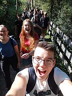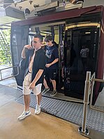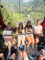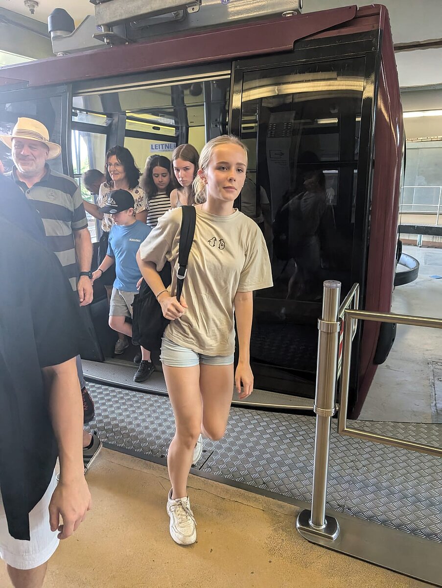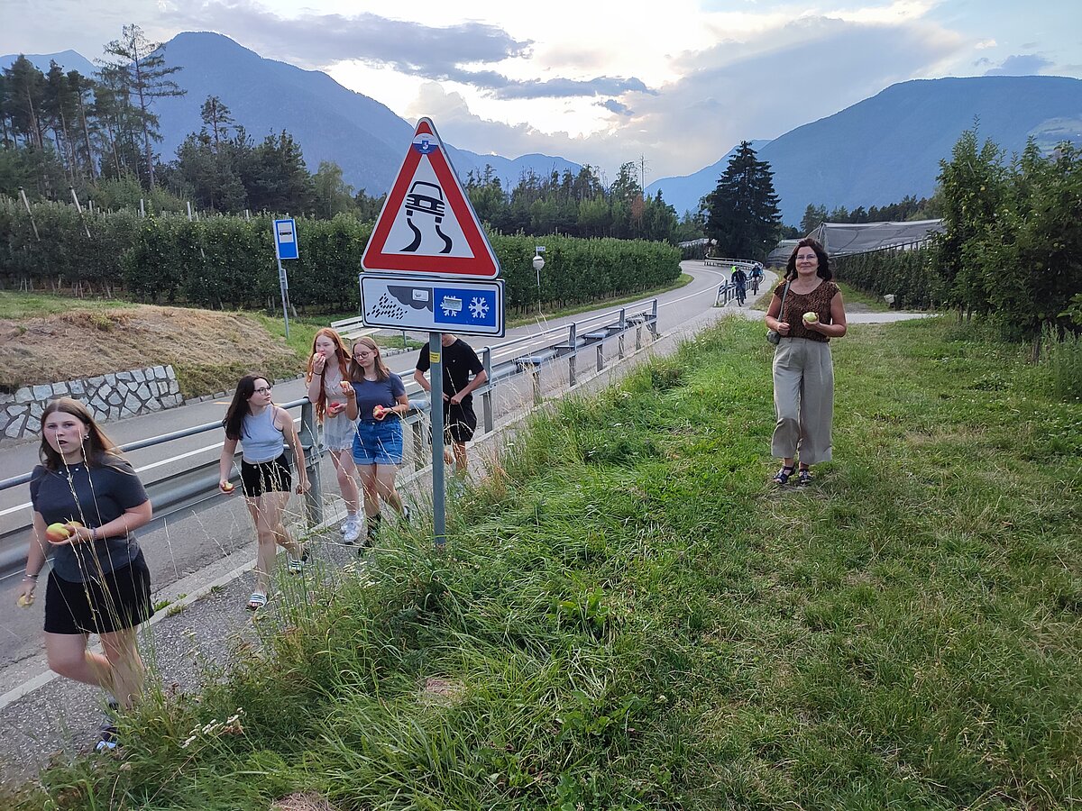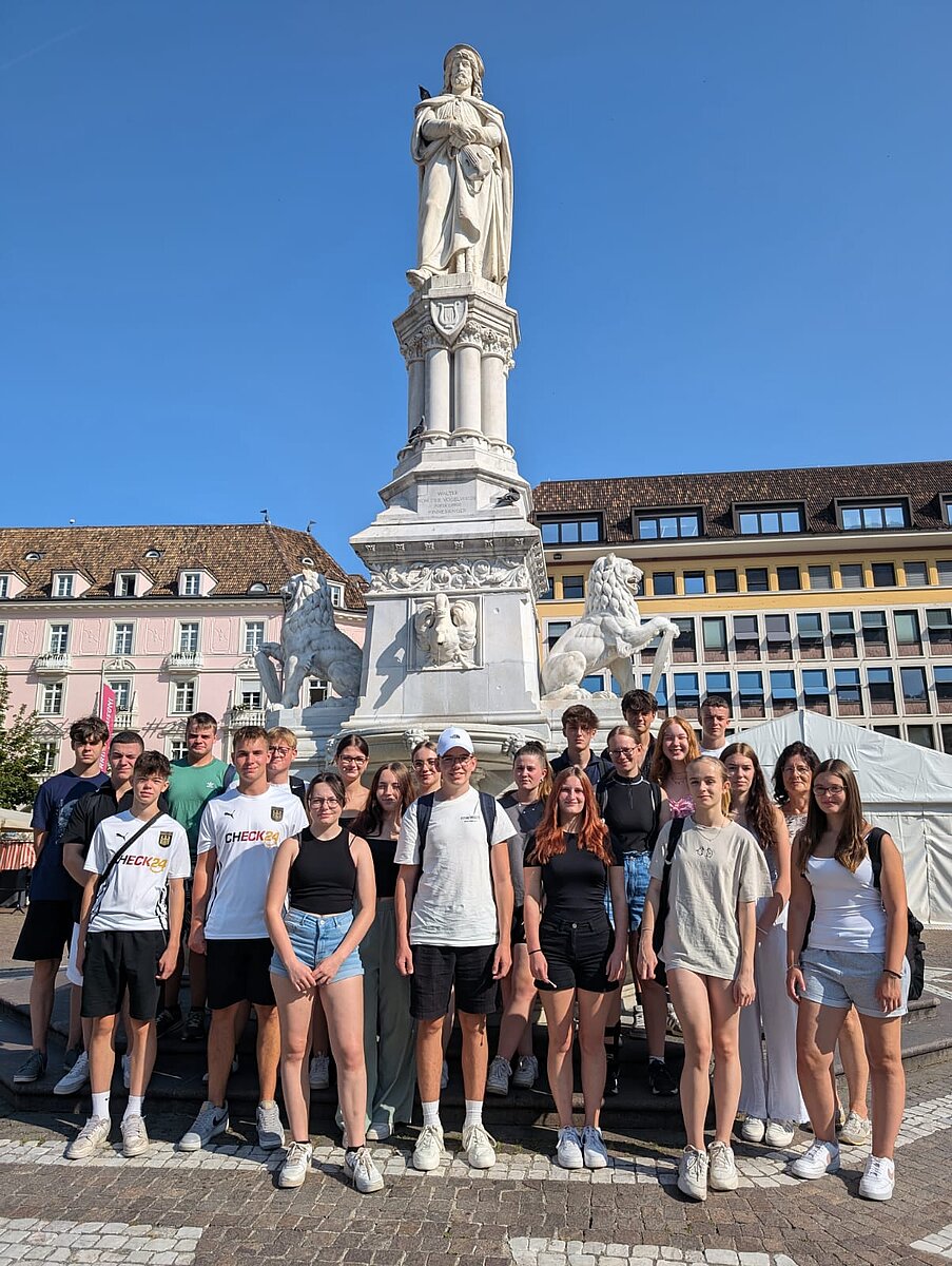 Ein anstrengender Tag erwartete uns am Mittwoch. Ab in die Landeshauptstadt Bozen! Auf direktem Weg zum Südtiroler Archäologie-Museum ging es, um die bekannteste Mumie Europas zu besichtigen - den Ötzi. Interessiert hörten wir der Leiterin unserer Museumstour zu, um möglichst viel über den „Mann aus dem Eis“ zu erfahren. Der Höhepunkt der Führung war natürlich die weltweit bekannte „Feuchtmumie“ selbst, die man gut durch das Fenster sehen konnte. Pizza, Spaghetti oder andere italienische Köstlichkeiten stärkten uns nach dem Museumsbesuch, für unsere nächste Tour nach Oberbozen. Mit der Rittner Seilbahn ging es auf den Berg und von dort aus weiter mit der Schmalspurbahn nach Klobenstein. In der Nähe befinden sich die Erdpyramiden, die für die 10b ein weiteres Highlight waren. Herr Goldhahn erklärte uns wie die Pyramiden entstanden und lehrte uns die Namen der Berge, die bei diesem sonnigen Wetter eindrucksvoll in den Himmel ragten. Am späten Nachmittag konnte sich keiner vor dem hauseigenen Pool retten. Als Klasse gingen wir am Abend, mit unseren Lehrern zum Dorffest in Natz. Bei Blasmusik und guter Laune ließ sich die Südtiroler Kultur bewundern. Mit Vorfreude auf den nächsten Tag endete nun auch der dritte Tag unserer Reise.