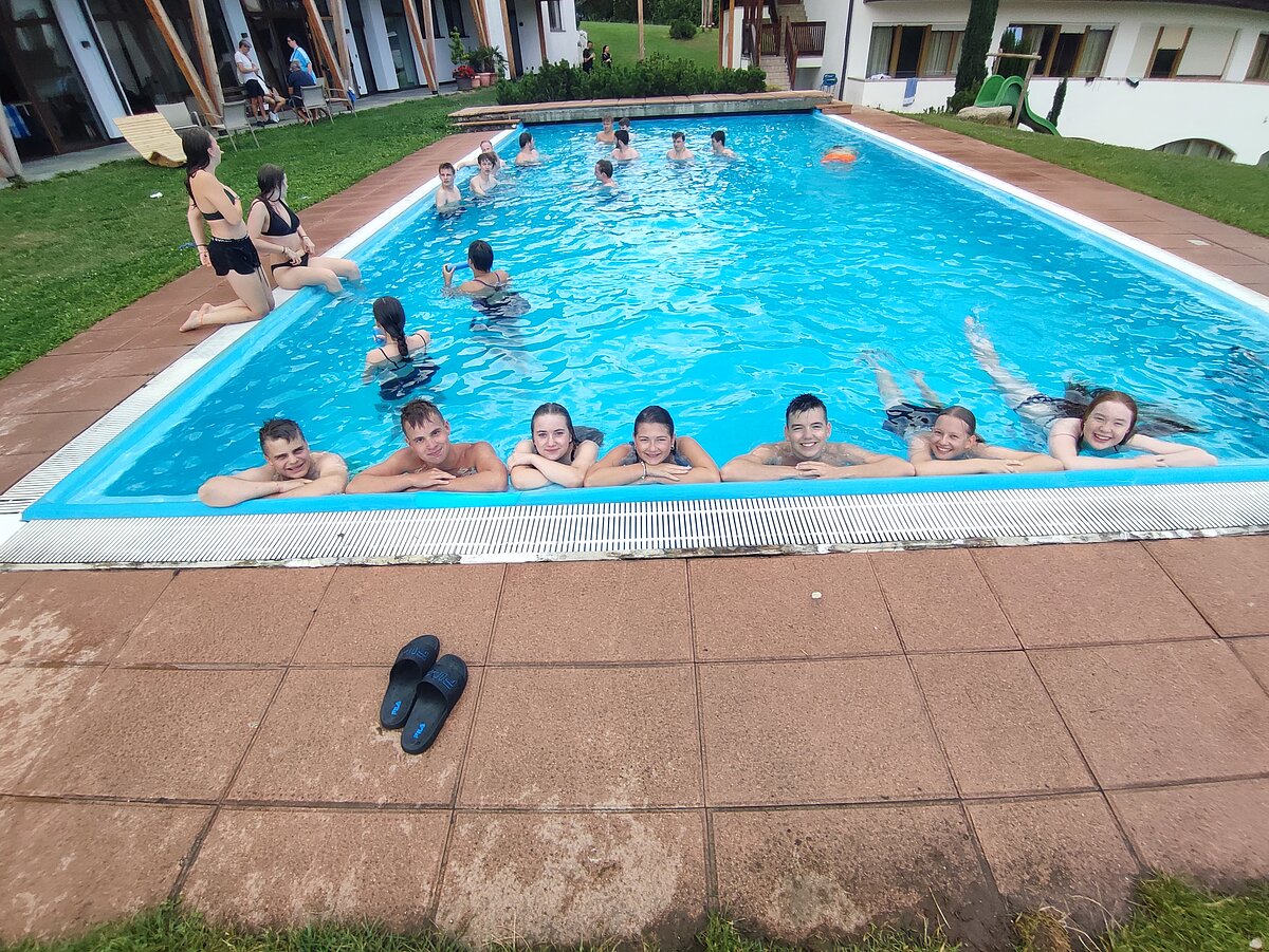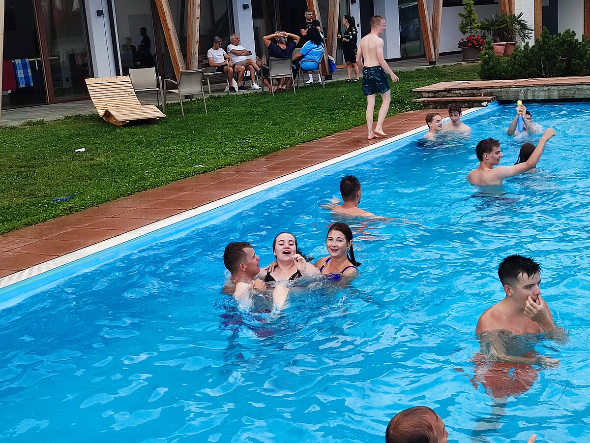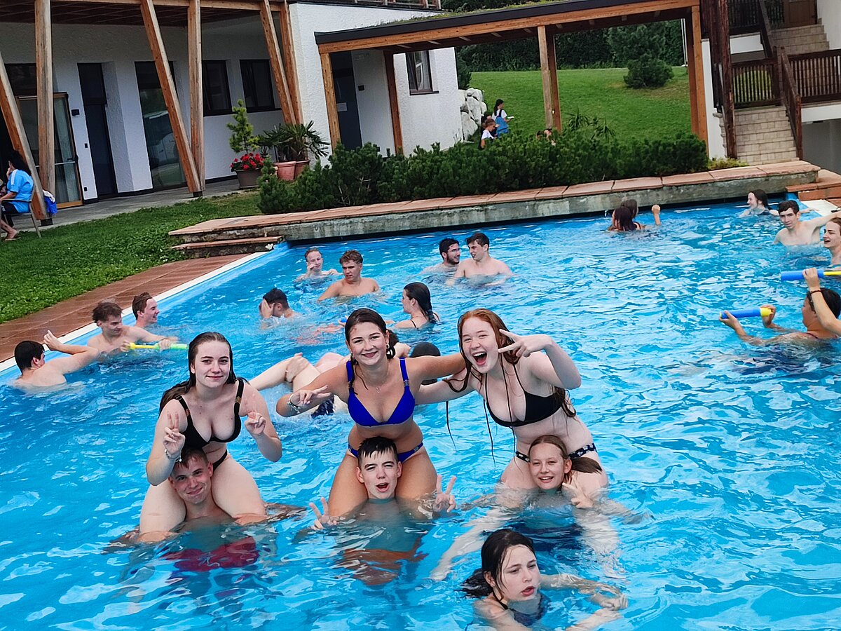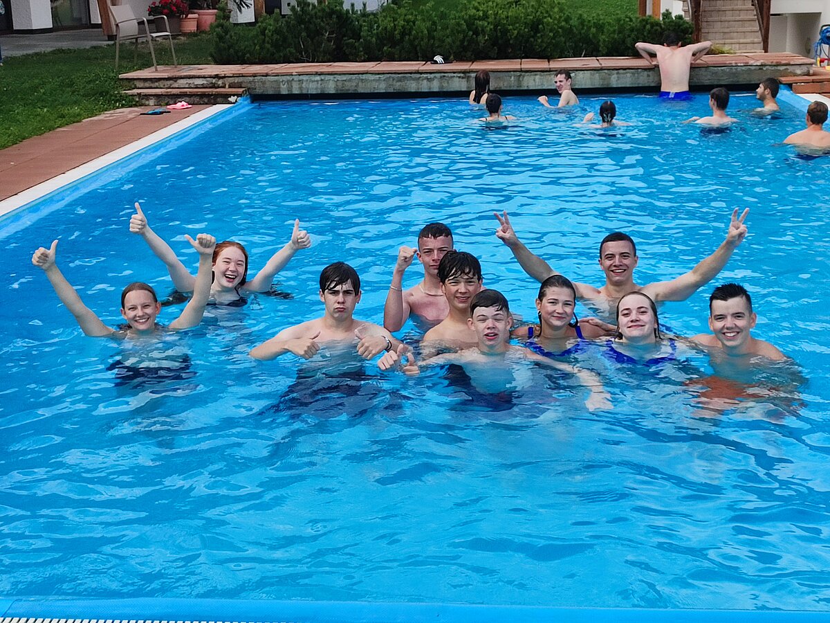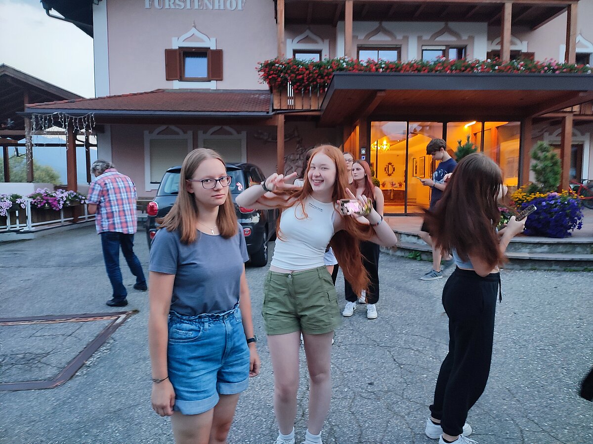 Nach einer achtstündigen Fahrt kamen wir in unserer Unterkunft, dem Fürstenhof im kleinen Örtchen Natz an. Alle bezogen ihre Zimmer und packten ihre Koffer aus, bevor sie in den Pool sprangen. Natürlich wurde die Gegend erkundet, bevor wir den Tag gemütlich als Klasse ausklingen ließen.