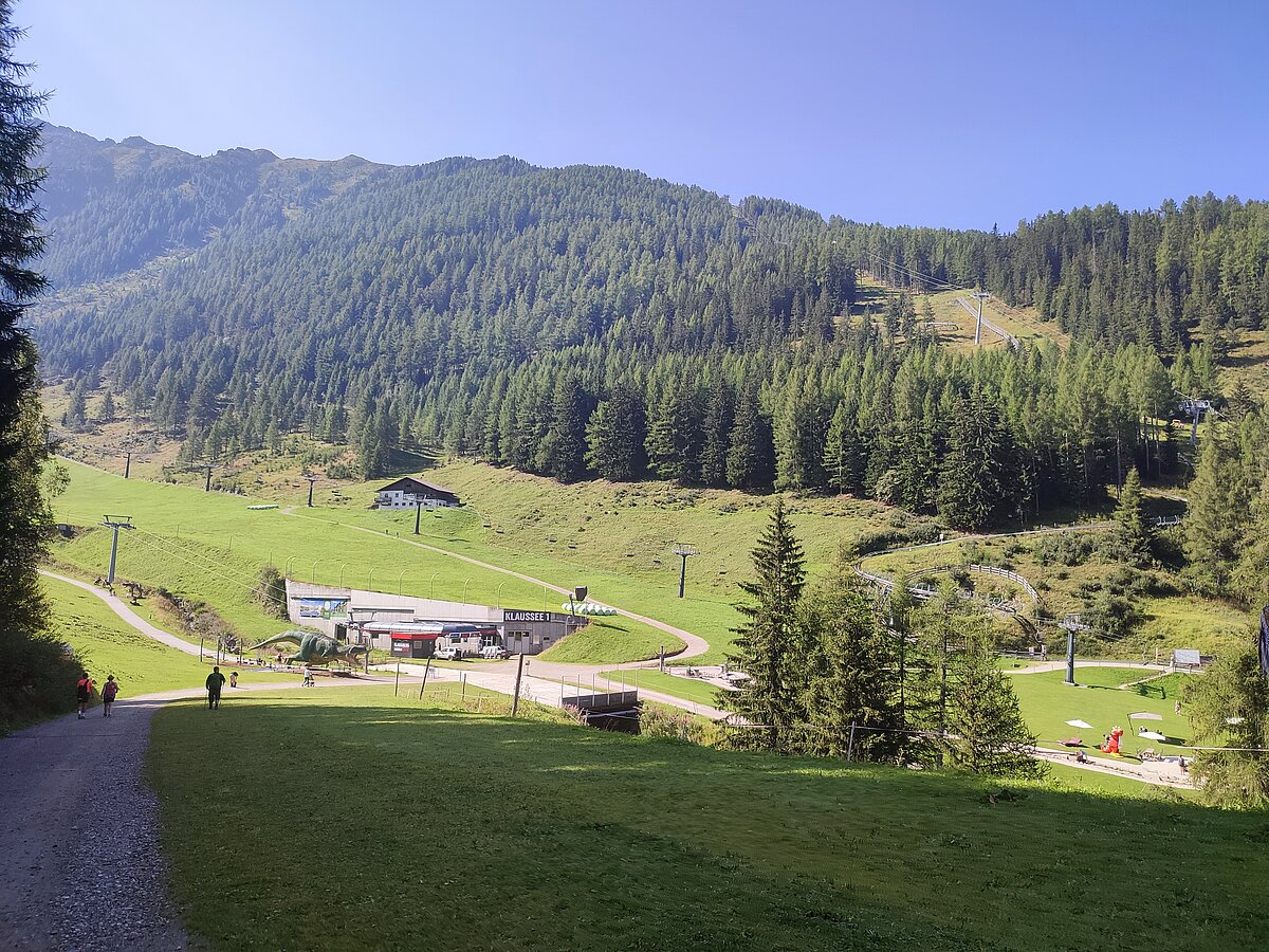 Nach einer kurzen Nacht brachen wir auf zum Klausberg. Dort angekommen fuhren wir mit der Seilbahn auf den Berg. Auf 1600 Metern Höhe erhielt man einen atemberaubenden Blick auf die Zillertaler Alpen.