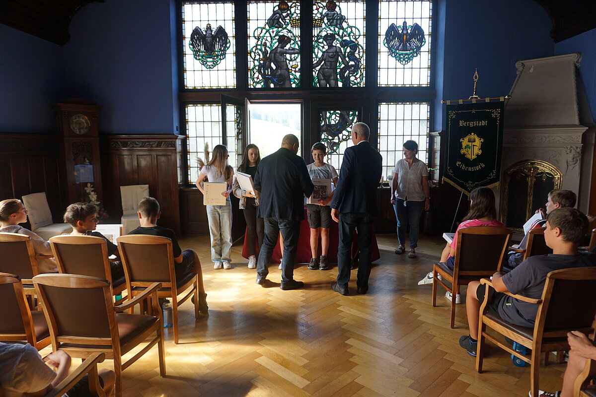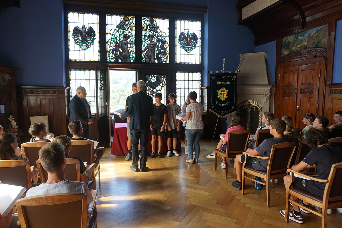 Eibenstock - Entsprechend einer langjährigen Tradition fand am 30.08.2024 erneut die feierliche Übergabe der Berufswahlpässe an die Schülerinnen und Schüler der 7. Klassen statt. Diese Zeremonie, die seit vielen Jahren in Eibenstock fest verankert ist, markiert einen wichtigen Meilenstein auf dem Weg der Jugendlichen in ihre berufliche Zukunft. Um 10:00 Uhr versammelten sich die Schüler im Ratssaal des Rathauses.
