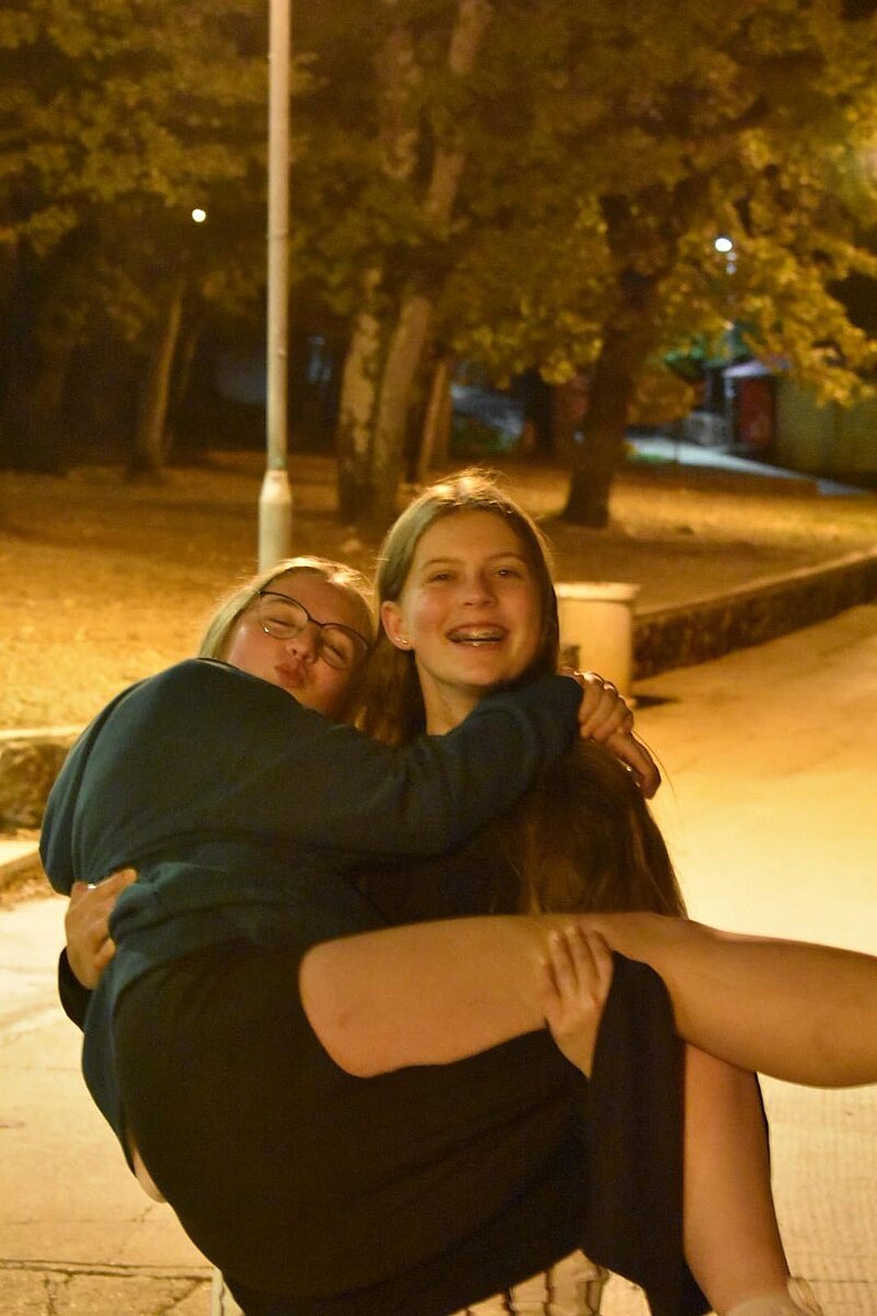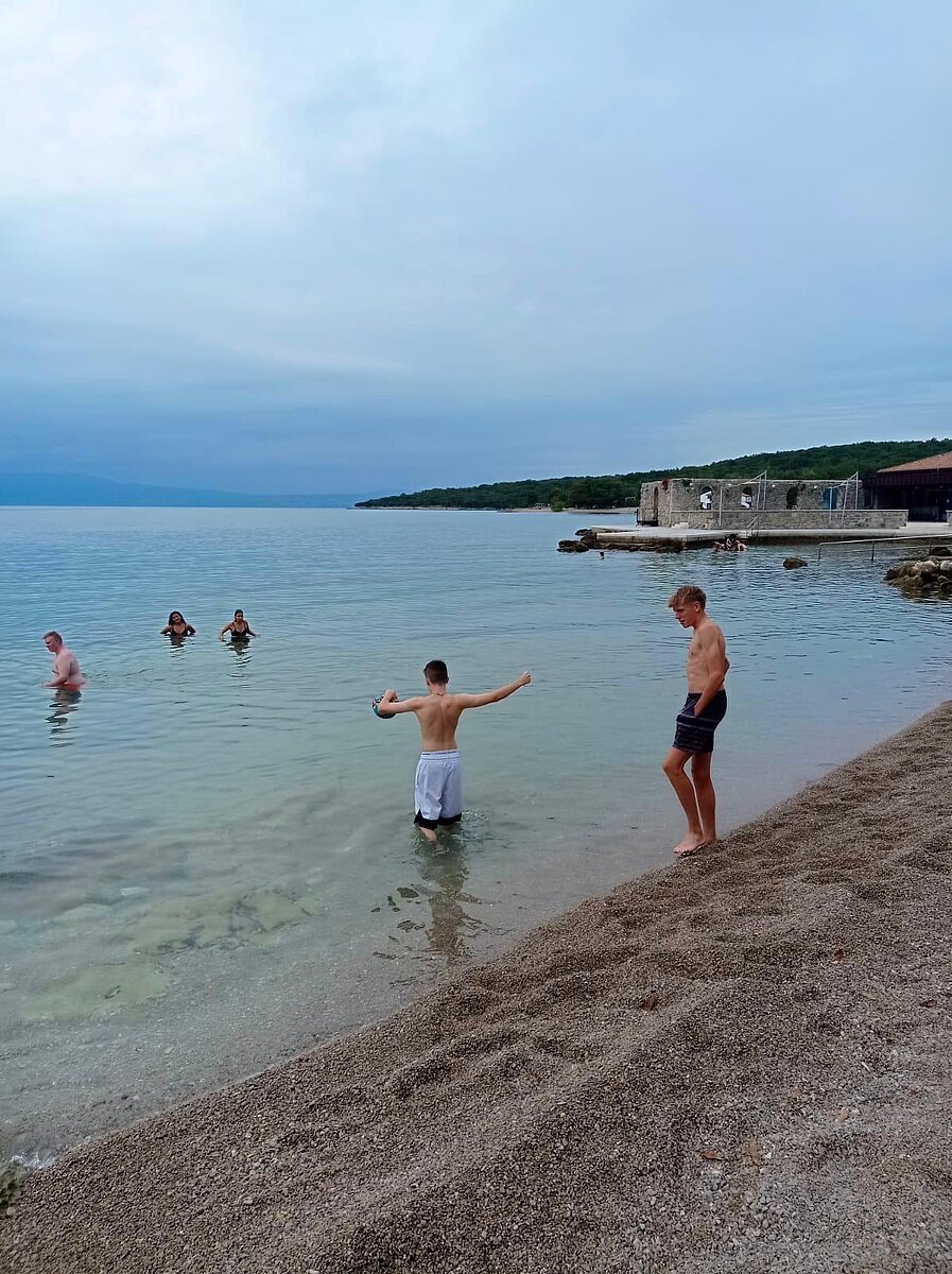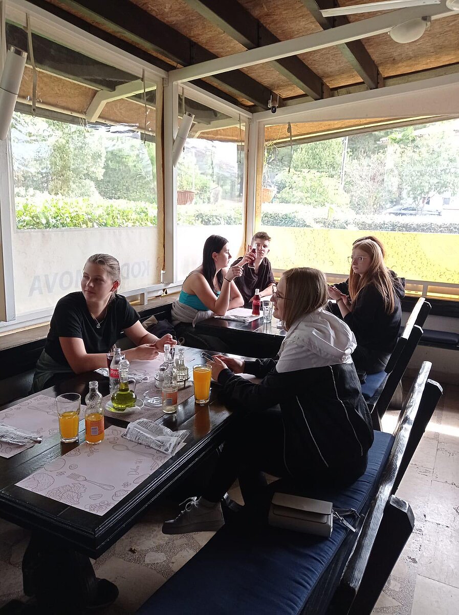 Krk - Erlebnisreiche Insel KRK -Aufgeregt und gespannt trafen wir uns Montagmorgen um 4.00 Uhr mit unseren Lehrern Frau Grimm und Herrn Goldhahn sowie unserer Klassenelternsprecherin Frau Mildner vor der Schule, um zu unserer Klassenfahrt zu starten. Über München erreichten wir die Bergwelt der Alpen und nach 13 Stunden Fahrt die blaue Adria. Dort bezogen wir unsere Zimmer im Hotel „Veya", bekamen einen Welcomedrink und gingen zum Abendessen.
