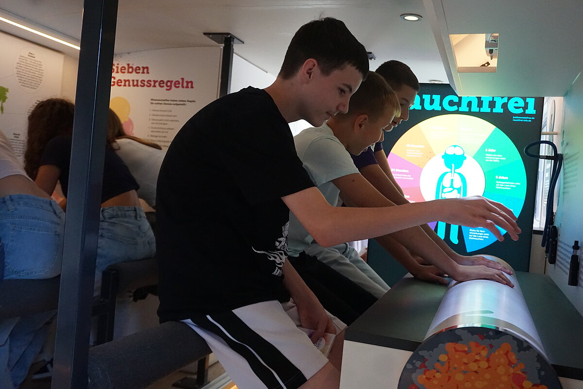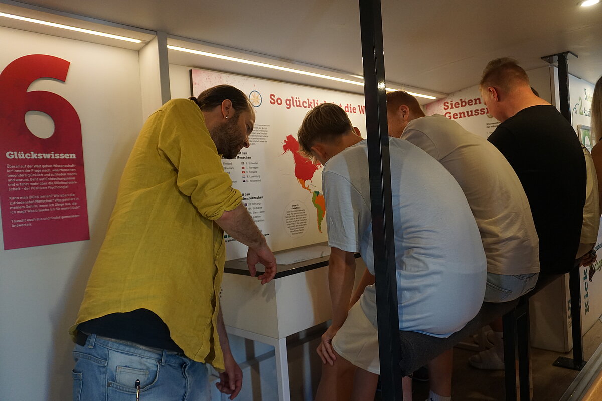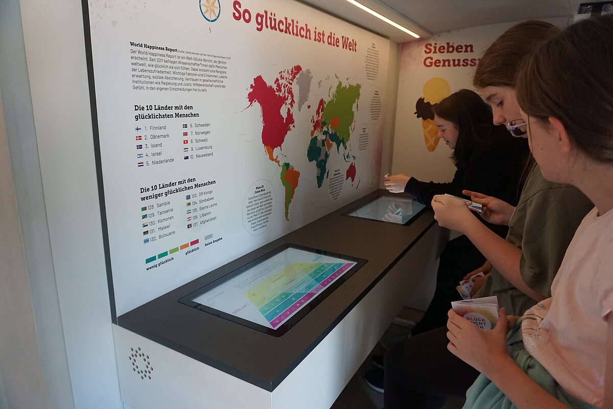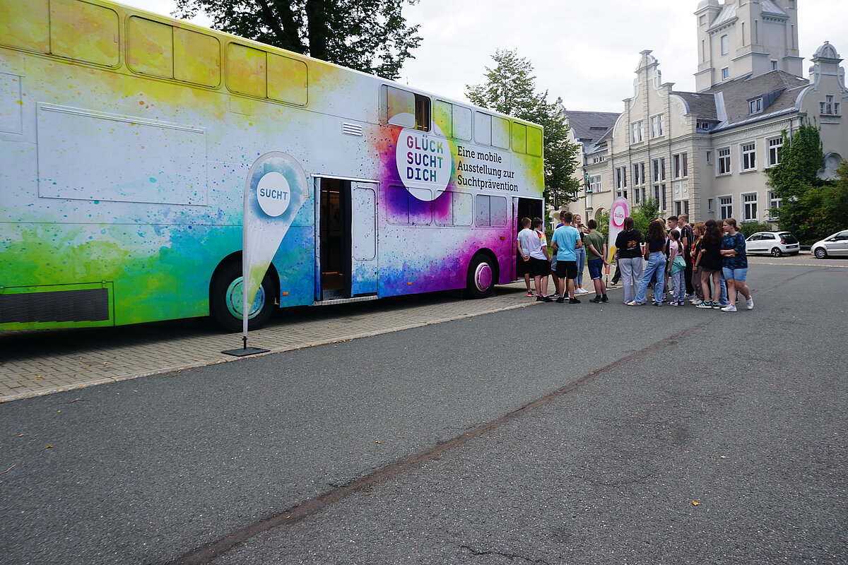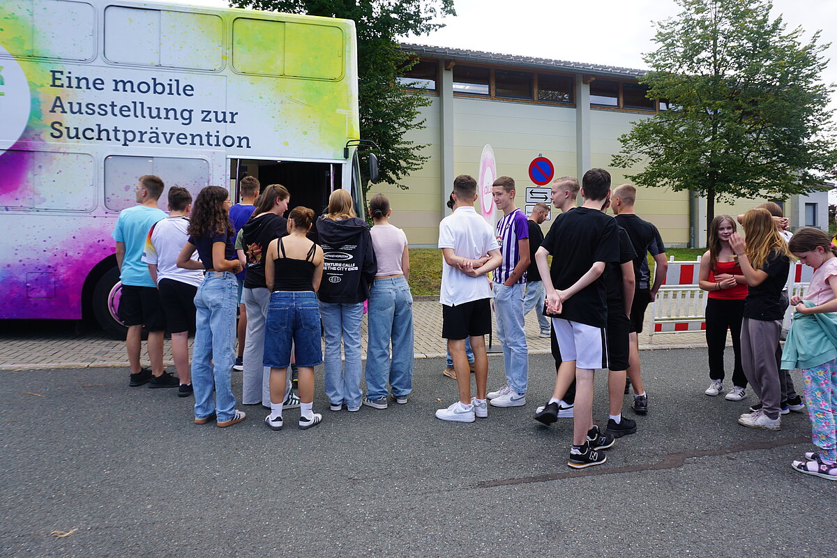 Eibenstock - Im Rahmen der Schulsozialarbeit und des Präventionskonzeptes der "Glück auf!" - Oberschule Eibenstock, haben die Klassenstufen 8, 9 und 10 in der zweiten Schulwoche an dem Projekt "GLÜCK SUCHT DICH“ teilgenommen. Der Ausstellungsbus, der als mobiles Lern- und Erlebniszentrum fungiert, bietet den Schülerinnen und Schülern die Möglichkeit, sich mit Themen wie Selbstwertgefühl, Stressbewältigung und positiven Lebensperspektiven auseinanderzusetzen. Die Jugendlichen werden angeregt, die eigenen Sichtweisen auf Glück, Identität, Konsumrisiken und Rauschmittel zu reflektieren.