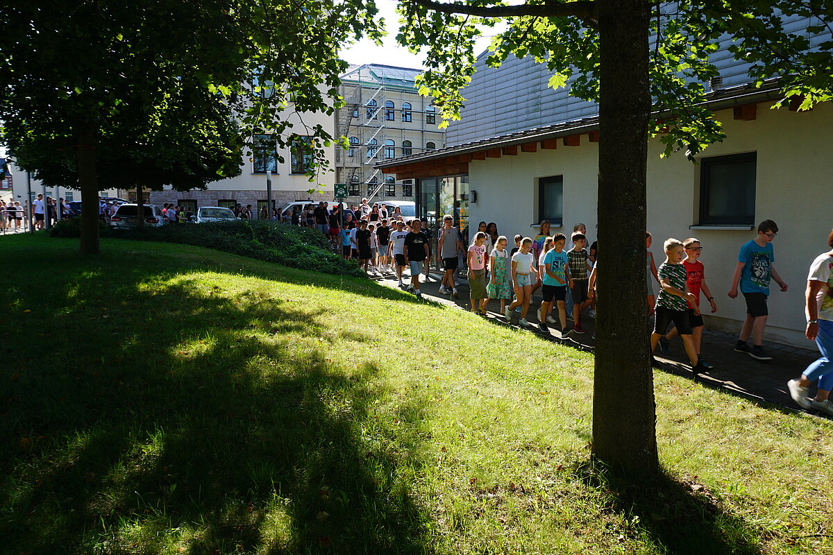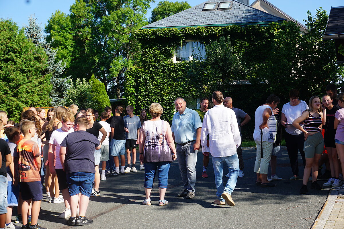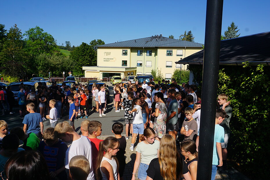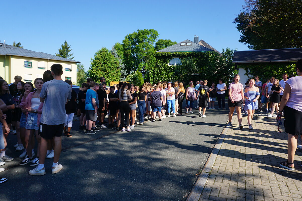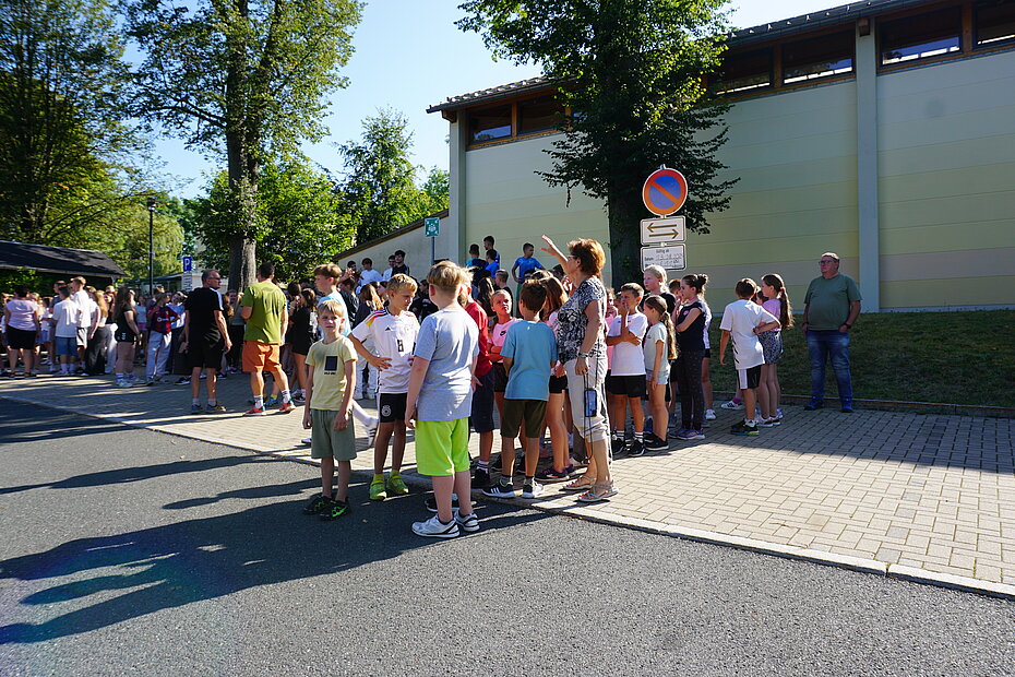 Ziel dieser Alarmproben ist es, das richtige Verhalten für einen eventuellen Ernstfall zu üben. Innerhalb von 5 Minuten und 30 Sekunden war das gesamte Schulgebäude vollständig geräumt. Die Klassen verließen geordnet ihre Klassenräume, schlossen Fenster und Türen und begaben sich zügig zu den Notausgängen. Trotz der Eile verlief alles ruhig und ohne Hektik. Wie in den vergangenen Jahren eine erfolgreiche Übung. Auf dem festgelegten Sammelplatz hinter der Auersberghalle angekommen, überprüften die Klassensprecherinnen und Klassensprecher die Vollzähligkeit ihrer Klasse und meldeten diese der Schulsekretärin.