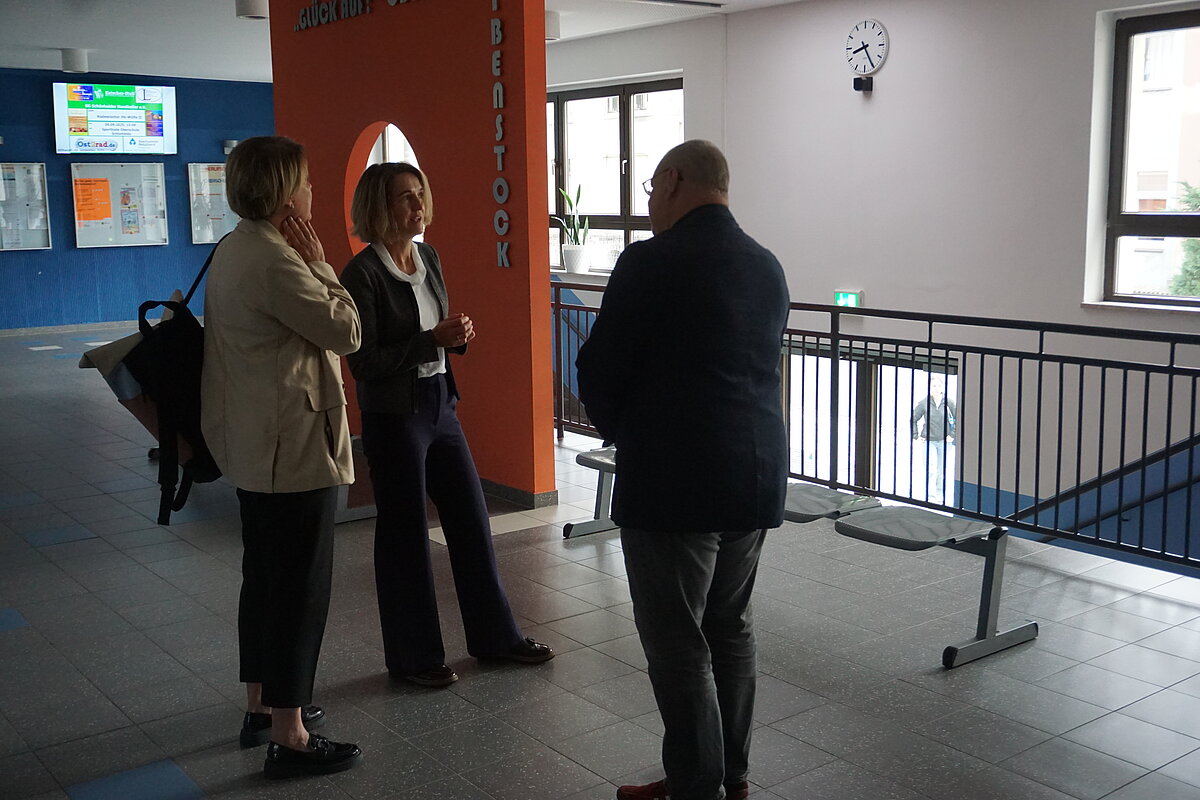 Auch bei der heutigen Rezertifizierung hatten wir wieder eine Teamleistung von ganz besonderer Qualität. Pünktlich 8:30 Uhr wurden die Auditoren um Frau Dr. Finke von unserem Schülerrat und der Schulleitung begrüßt. Es folgten die Vorstellung des Arbeitsstandes und ein Rundgang durch unser Schulgebäude mit der Besichtigung der Bereiche, welche besonders für die Berufsorientierung von Bedeutung sind. Gesprächsrunden mit der Schulleitung, einzelnen Lehrkräften und Vertreter der Unterstützungssysteme sowie ausgewählten Schülerinnen und Schüler schlossen sich an. Nach einer kurzen Mittagspause trafen in der Aula die Vertreter unserer Partner sowie unser Bürgermeister für eine weitere Gesprächsrunde ein. Im Anschluss hat die Jury weitere Dokumente gesichtet und sich zur Beratung zurückgezogen.