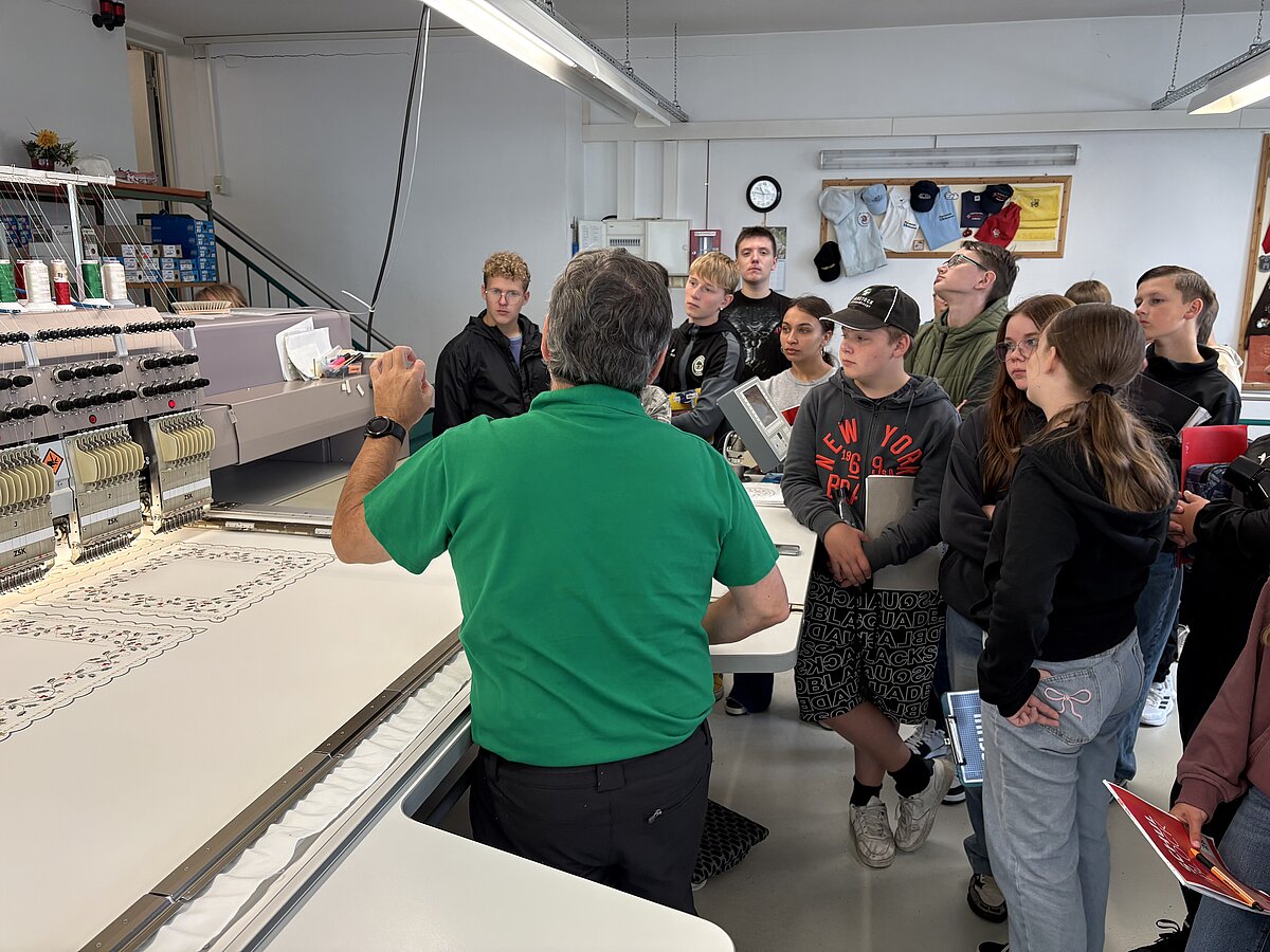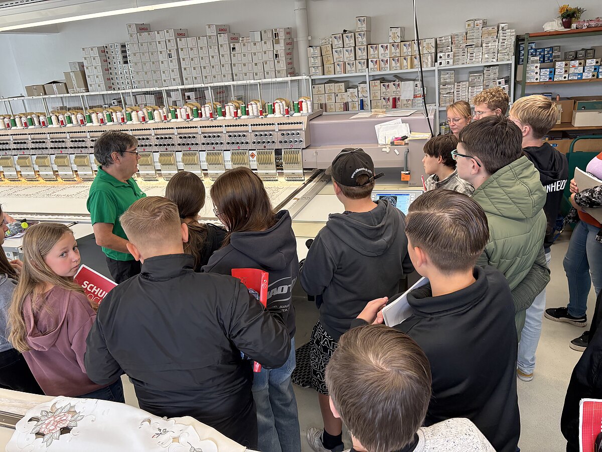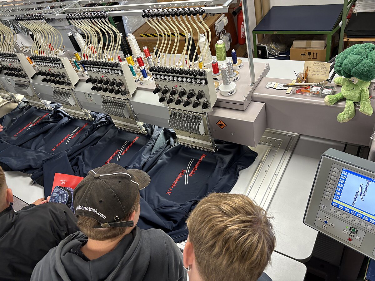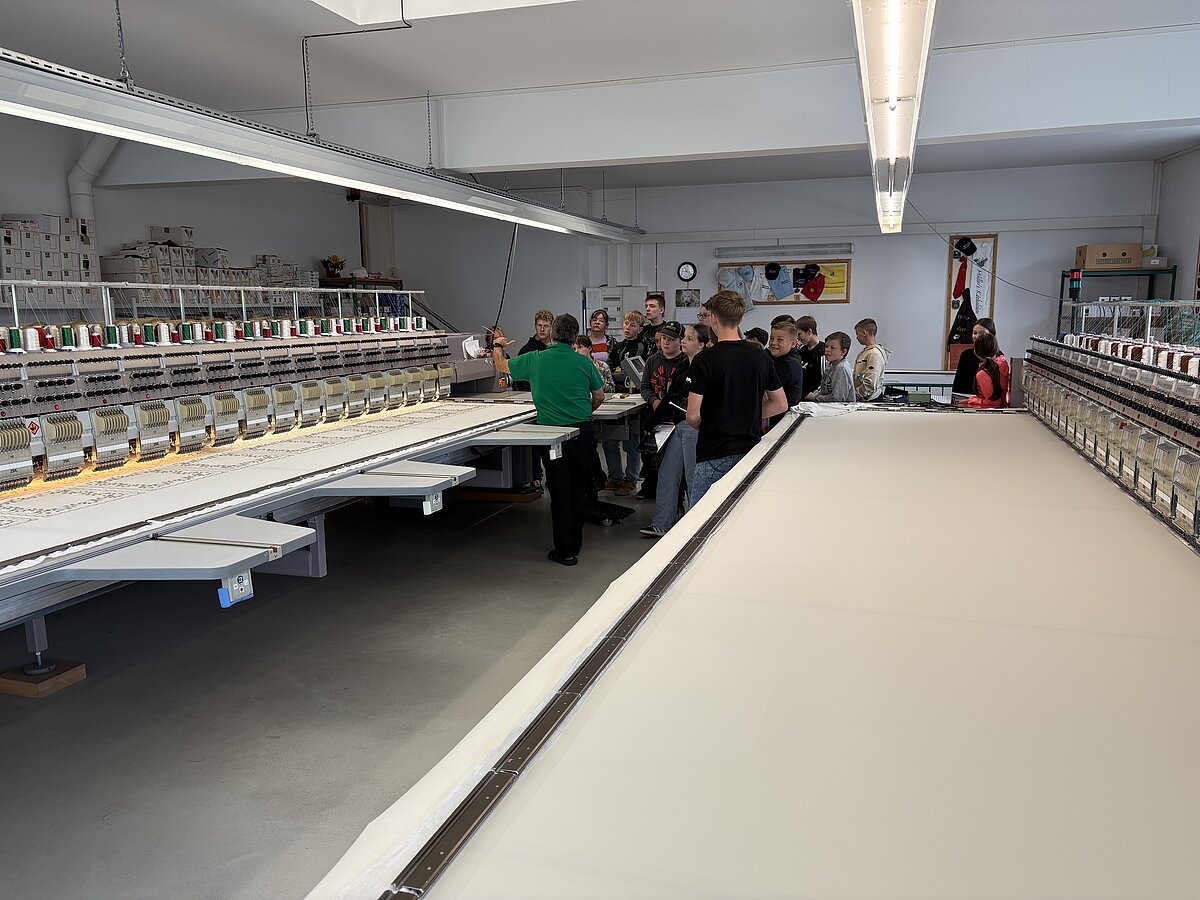 Auch in diesem Jahr ging es dann zur Firma Funke Stickerei GmbH, wo wir wieder die rechnergesteuerten Stickmaschinen bestaunen und bei der Arbeit beobachten durften.