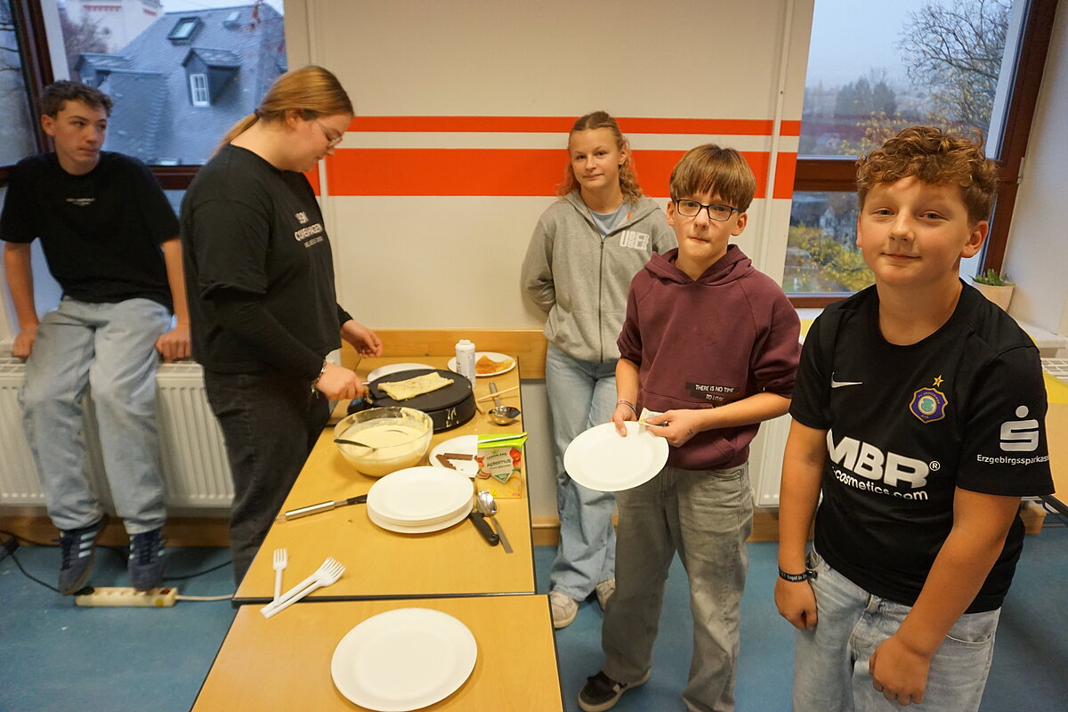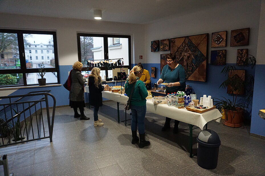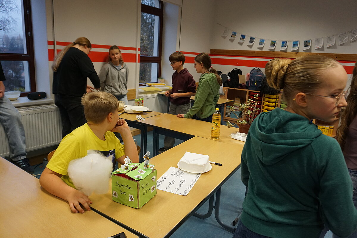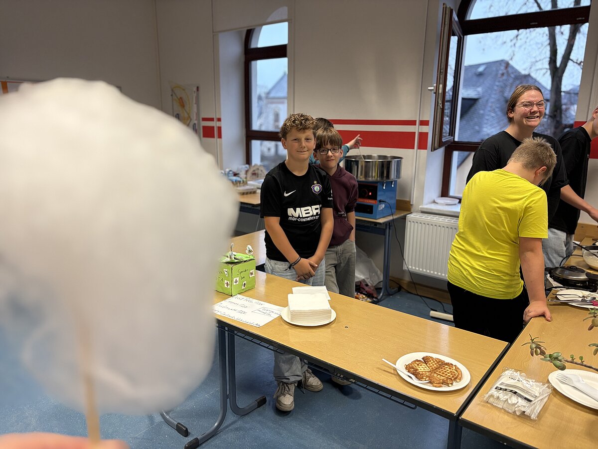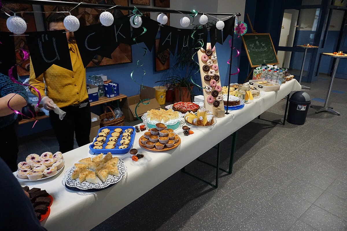 Viele Schülerinnen und Schüler unserer Schule hatten wieder mit ihren Lehrkräften für ein buntes Treiben im gesamten Schulhaus organisiert. Die Schülerfirma sorgte zusätzlich zu unserem Kuchenbasar für das leibliche Wohl. Trotz winterlichem Wetter haben die Schüler der Firma auf dem Schulhof Roster aufgelegt. Neben den Bratwürsten wurden auch warme Wiener mit Brötchen angeboten. Die Backwaren für den Basar wurden vom Team der “Glück auf!” - Oberschule gebacken. Die hierbei erzielten Spenden werden für Preise/Geschenke zu unserem Schul- und Hoffest am 29.04.2026 für das Glücksraddrehen verwendet. Egal ob Kuchenbasar oder Schülerfirma: es hat allen alles geschmeckt.