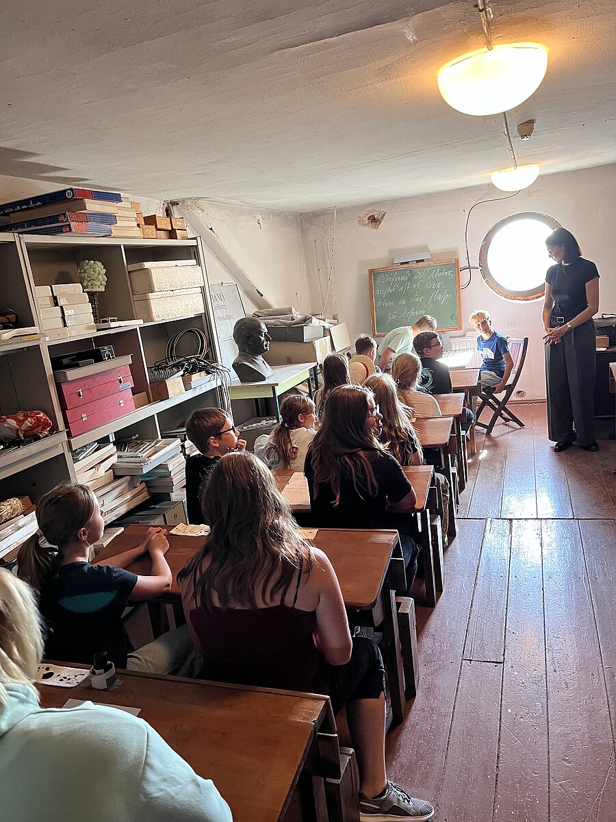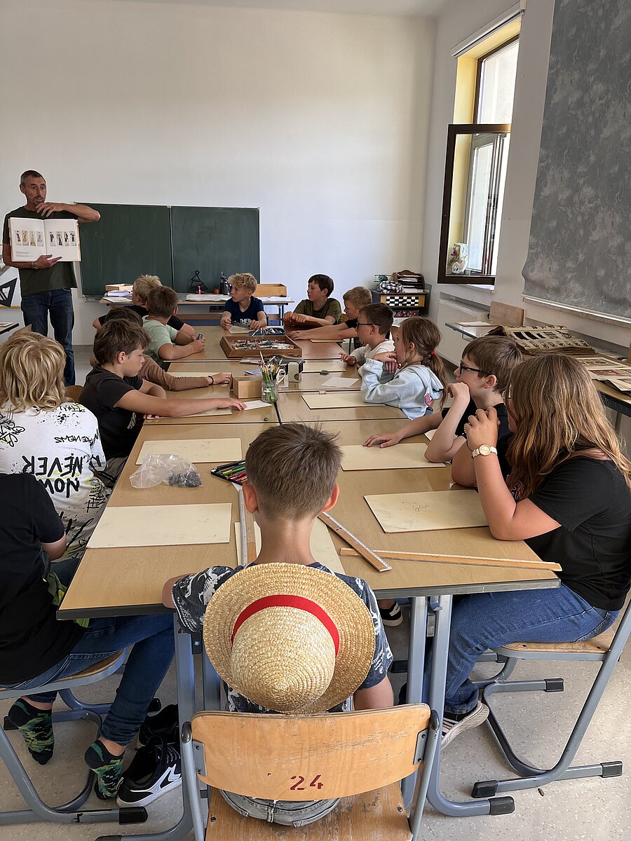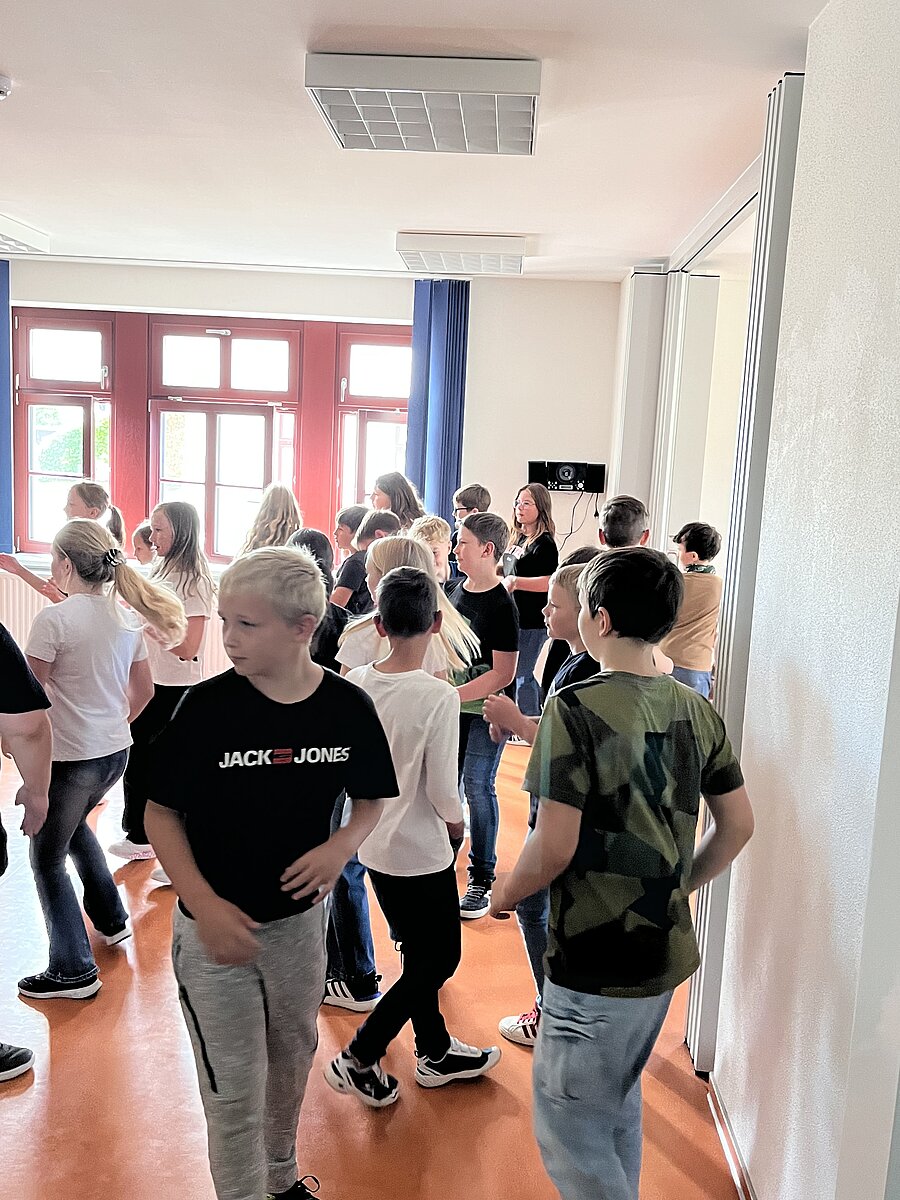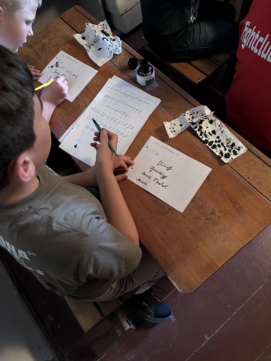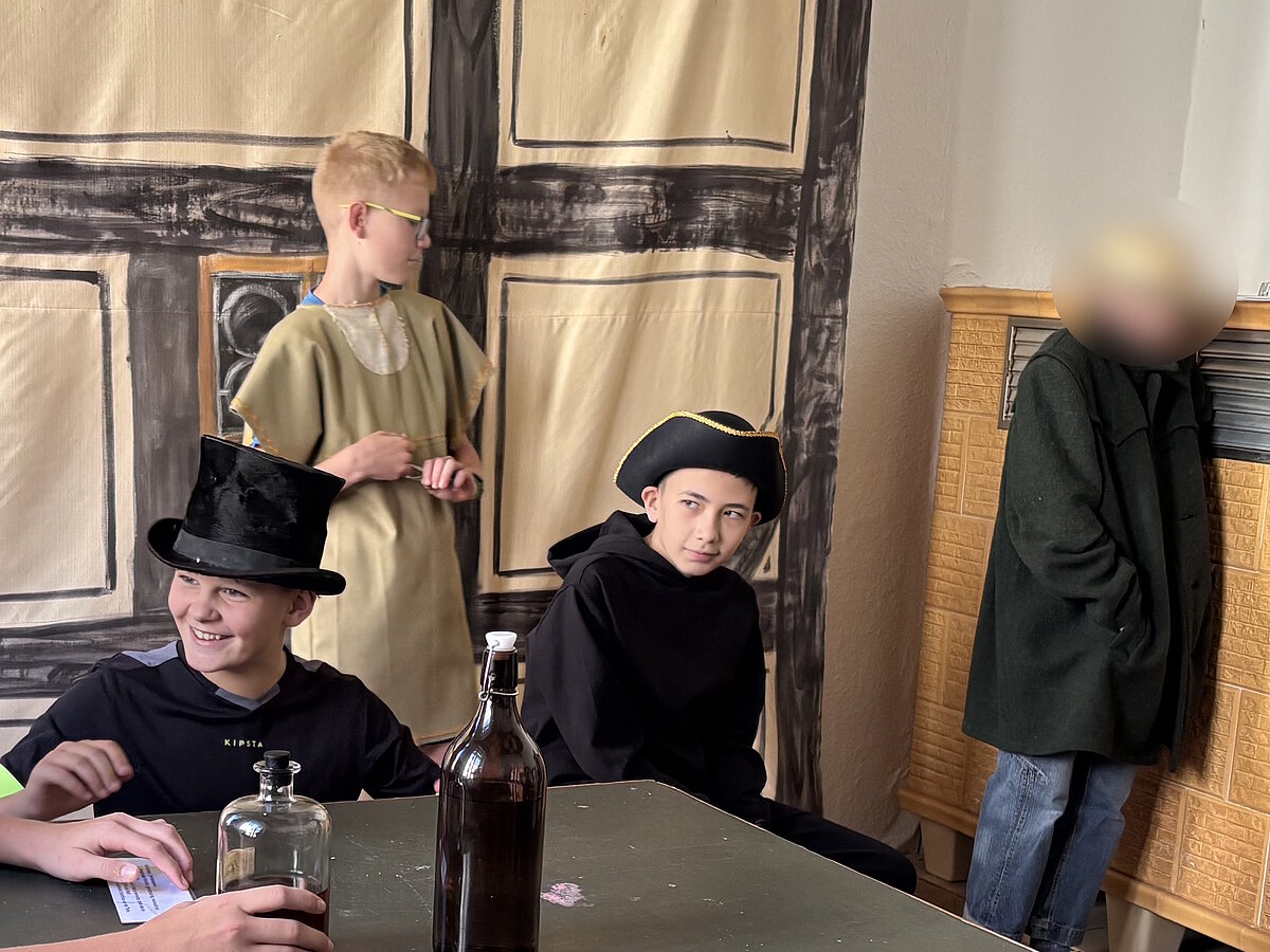 Am Donnerstag und Freitag war dann die Clara-Angermann-Grundschule unserer Einladung gefolgt. Mit viel Elan und Spontanität machten sich die Schüler der Klassen 9 daran, den Grundschülern einige Stationen nahe zu bringen. Bestimmt lief nicht alles gleich perfekt aber Schule heißt ja voneinander lernen. Und am Ende hat sicher jeder etwas gelernt, über die Vergangenheit, über die Gegenwart, und über sich selbst. Noch einmal vielen Dank an alle, die einen Beitrag geleistet haben und hier nicht namentlich genannt wurden, ohne Euch wäre es nicht so schön geworden.