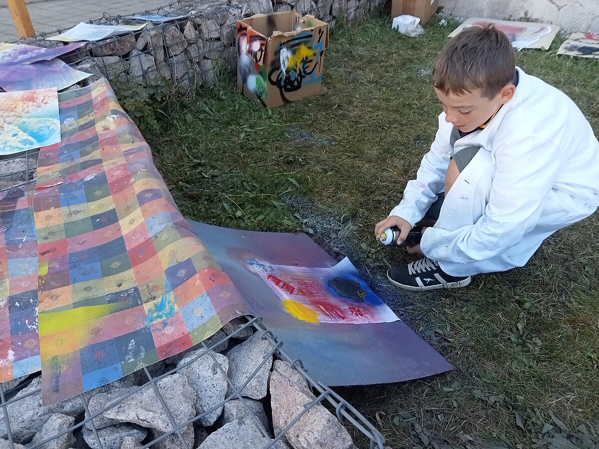 Stickereien mussten zuerst entworfen werden, der Beginn war die künstlerische Gestaltung. In dem verfallenen roten Gebäude Ecke Schulstraße/Vodelstraße war deshalb früher die Kunst- und Gewerbeschule untergebracht. Wir haben uns auch am Musterzeichnen und Modeentwürfen versucht. Und wer wollte, konnte aus alten Gardinenresten, Tischdecken und Spitzenresten mit der Spraydose ganz eigenartige Bilder hervorzaubern. Bei Herrn Goldhahn war dann noch einmal Geschicklichkeit und Fitness gefragt. Mit Klippelsackweitwurf und Tannebaamstaffellauf wurden die alten Zeiten auf eine andere Art gefeiert.