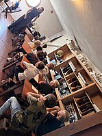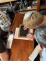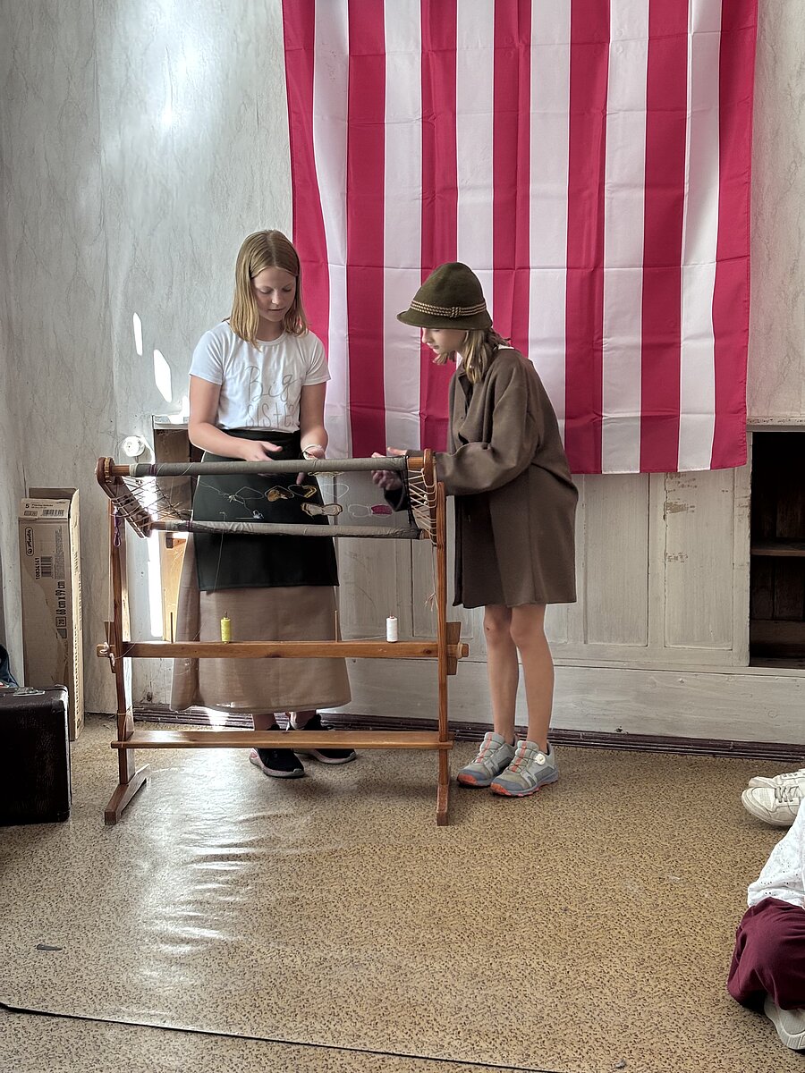 Damit das Ganze möglichst anschaulich wird, waren einige Stationen an authentischen Orten untergebracht. So durften wir zum Beispiel im Museum ausprobieren, wie das mit dem Tambourieren so funktioniert, per Hand oder mit Maschine. Danke an das Museumspersonal, auch für die ausgeliehenen Utensilien. Bei Frau Mädler im Schürzenladen sahen wir, wie aus vielen Teilen ein Kleidungsstück entsteht. Unsere Alltagsklamotten entstehen aber oft am anderen Ende der Welt und weil wir gern billig kaufen, verdienen die Menschen natürlich auch nur einen Bruchteil von unseren Löhnen. Deshalb setzen wir uns in Eibenstock für einen fairen Handel ein. Danke Frau Mädler für die interessanten Einblicke.